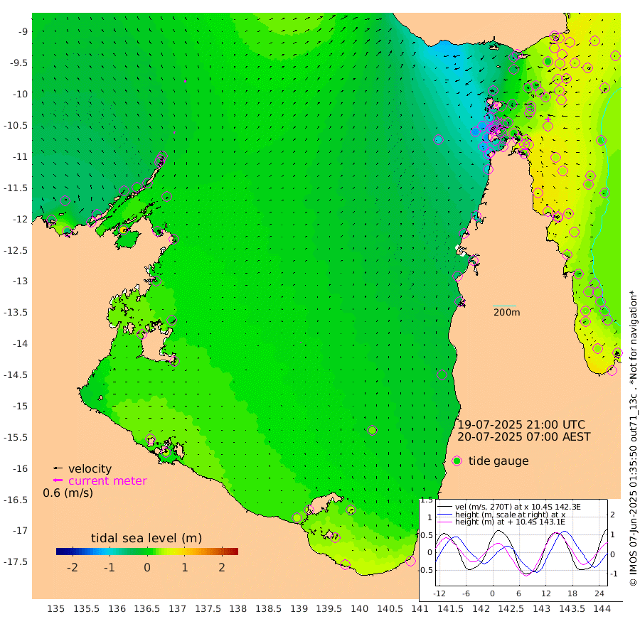 14cm/s 7T +3cm/s rms + 7cm/s -42T. ARA-GOC87 57m 4cm/s 10T +3cm/s rms + 2cm/s -2T. ARA-GOC87 60m 16cm/s 7T +2cm/s rms + 3cm/s 61T. ARA-GOC87 47m 46cm Daru 49cm Bobo Island 35cm Meer Island Barge 48cm Bramble Cay 54cm Unnamed Cay 40cm Pearce Cay 52cm Stephens Island 60cm Merrie England Shoals 53cm Mutacomal Reef 51cm Darnley Island Barge 41cm East Cay 49cm Yorke Island Barge 42cm Rennel Island 39cm Aureed Island 26cm Dungeness Reef 5cm Zagai Island 12cm Yam Island -53cm Dauan Island -34cm Saibai Island -40cm Phipi Reef 0cm Warrior Reef - West -55cm Mabuiag Island Barge 49cm Half Way Island 27cm Coconut Island 44cm Dugong Islet 14cm Poll Island 29cm Kirkcaldie Reef -21cm Suarji Island 21cm Sue Islet -100cm Hawkesbury Island -28cm Alert Patches -15cm Twin Island -109cm Badu Island -23cm St Pauls (Moa Island) -77cm Kubin (Moa Island) -44cm Ince Point -59cm Thursday Island -57cm Nardana Patches -83cm Turtle Head -85cm Round Island -112cm Goods Island -128cm Booby Island -121cm White Rocks Area -95cm Carpentaria -15cm Papou Point -130cm Bampfield Head -103cm Crab Island -116cm Red Wallis Island -89cm Packe Island 43cm Harrington Reef -93cm Herald Camp 3cm Sharp Point -58cm Red Island Point -43cm Possession Island 3cm Alpha Rock 9cm Frederick Point 39cm Wyborn Reef Light 33cm Tetley Island 20cm Triangle Reef 36cm Turtle Head Island 30cm Maclennan Cay 16cm Raine Island 44cm Mcsweeny Reef 44cm Collette Reef 29cm Shadwell Reef 53cm Hannibal Island 44cm Round Point -90cm Vrilya Point 46cm Cape Grenville 39cm Hicks Island 38cm Sir Charles Hardy Island 15cm Harvey Island 43cm Kay Reef 28cm Rocky Island 17cm Chapman Island 23cm Ham Reef 27cm Jubilee Reef 25cm Night Island 22cm Unnamed Reef No. 3 29cm Morris Island 15cm 1st 3 Mile Opening 25cm Creech Reef 26cm Fife Island 33cm Eden Reef 34cm Stanley Island 45cm Normanby River -51cm Yabooma Island -57cm Hutchison River -50cm Elcho Island -42cm North West Crocodile Island -9cm Cape Wessel -29cm Stevens Island 15cm Guluwuru Island -28cm Hopeful Bay -24cm Auster Point -8cm Two Island Bay -15cm Cadell Strait 103cm Mallison Island 0cm Melville Bay (Gove Harbour) -3cm Truant Island 1cm Cape Arnhem 11cm Cape Grey 13cm Hawk Island 23cm Milner Bay (Groote Eylandt) 26cm Cape Beatrice 42cm West Island 40cm Centre Island 44cm Mornington Island 41cm West Wellesley Islands 42cm Bountiful Island 42cm Albert River Mouth 44cm Sweers Island 45cm Karumba 23cm Nassau River Offshore -1cm Christmas Creek -41cm Archer River -54cm Boyd Point -66cm Weipa (Humbug Point) -60cm Pennefather River -80cm Cullen Point