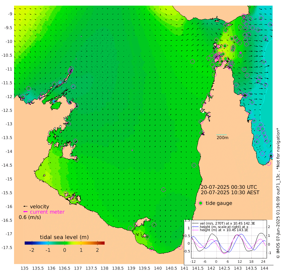 6cm/s -72T +3cm/s rms + 7cm/s -42T. ARA-GOC87 57m 17cm/s 12T +3cm/s rms + 2cm/s -2T. ARA-GOC87 60m 4cm/s -117T +2cm/s rms + 3cm/s 61T. ARA-GOC87 47m -32cm Daru -39cm Bobo Island -71cm Meer Island Barge -60cm Bramble Cay -45cm Unnamed Cay -45cm Pearce Cay -55cm Stephens Island -40cm Merrie England Shoals -20cm Mutacomal Reef -62cm Darnley Island Barge -72cm East Cay -47cm Yorke Island Barge -38cm Rennel Island -42cm Aureed Island -26cm Dungeness Reef -8cm Zagai Island 3cm Yam Island -9cm Dauan Island -3cm Saibai Island -11cm Phipi Reef -12cm Warrior Reef - West 19cm Mabuiag Island Barge -29cm Half Way Island -21cm Coconut Island -24cm Dugong Islet -4cm Poll Island -5cm Kirkcaldie Reef 0cm Suarji Island -6cm Sue Islet 13cm Hawkesbury Island 9cm Alert Patches 12cm Twin Island 9cm Badu Island 17cm St Pauls (Moa Island) 6cm Kubin (Moa Island) 15cm Ince Point 17cm Thursday Island 15cm Nardana Patches 1cm Turtle Head -1cm Round Island -3cm Goods Island 3cm Booby Island 11cm White Rocks Area 9cm Carpentaria 15cm Papou Point -24cm Bampfield Head 10cm Crab Island 13cm Red Wallis Island 7cm Packe Island -18cm Harrington Reef -10cm Herald Camp 15cm Sharp Point 16cm Red Island Point 3cm Possession Island 13cm Alpha Rock -1cm Frederick Point -20cm Wyborn Reef Light -13cm Tetley Island -55cm Triangle Reef -25cm Turtle Head Island -65cm Maclennan Cay -72cm Raine Island -46cm Mcsweeny Reef -51cm Collette Reef -64cm Shadwell Reef -56cm Hannibal Island -60cm Round Point 22cm Vrilya Point -59cm Cape Grenville -68cm Hicks Island -79cm Sir Charles Hardy Island -20cm Harvey Island -67cm Kay Reef -74cm Rocky Island -74cm Chapman Island -73cm Ham Reef -73cm Jubilee Reef -64cm Night Island -70cm Unnamed Reef No. 3 -76cm Morris Island -79cm 1st 3 Mile Opening -75cm Creech Reef -76cm Fife Island -92cm Eden Reef -75cm Stanley Island -77cm Normanby River -29cm Yabooma Island -56cm Hutchison River -37cm Elcho Island -22cm North West Crocodile Island -38cm Cape Wessel -27cm Stevens Island -77cm Guluwuru Island -34cm Hopeful Bay -36cm Auster Point -34cm Two Island Bay -57cm Cadell Strait -114cm Mallison Island -62cm Melville Bay (Gove Harbour) -66cm Truant Island -49cm Cape Arnhem -29cm Cape Grey -17cm Hawk Island 18cm Milner Bay (Groote Eylandt) 18cm Cape Beatrice 47cm West Island 48cm Centre Island 5cm Mornington Island 8cm West Wellesley Islands -7cm Bountiful Island 11cm Albert River Mouth 15cm Sweers Island 12cm Karumba -4cm Nassau River Offshore -22cm Christmas Creek -21cm Archer River -23cm Boyd Point -29cm Weipa (Humbug Point) 8cm Pennefather River 4cm Cullen Point