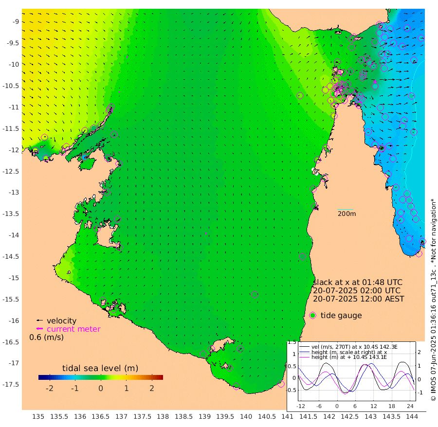 7cm/s 154T +3cm/s rms + 7cm/s -42T. ARA-GOC87 57m 17cm/s 5T +3cm/s rms + 2cm/s -2T. ARA-GOC87 60m 11cm/s 144T +2cm/s rms + 3cm/s 61T. ARA-GOC87 47m -87cm Daru -92cm Bobo Island -98cm Meer Island Barge -102cm Bramble Cay -102cm Unnamed Cay -91cm Pearce Cay -105cm Stephens Island -102cm Merrie England Shoals -85cm Mutacomal Reef -108cm Darnley Island Barge -103cm East Cay -97cm Yorke Island Barge -91cm Rennel Island -90cm Aureed Island -74cm Dungeness Reef -42cm Zagai Island -38cm Yam Island -5cm Dauan Island -8cm Saibai Island -20cm Phipi Reef -43cm Warrior Reef - West 17cm Mabuiag Island Barge -86cm Half Way Island -71cm Coconut Island -83cm Dugong Islet -49cm Poll Island -59cm Kirkcaldie Reef -34cm Suarji Island -53cm Sue Islet 35cm Hawkesbury Island -22cm Alert Patches -23cm Twin Island 38cm Badu Island -13cm St Pauls (Moa Island) 16cm Kubin (Moa Island) -2cm Ince Point 10cm Thursday Island 7cm Nardana Patches 11cm Turtle Head 11cm Round Island 26cm Goods Island 41cm Booby Island 43cm White Rocks Area 29cm Carpentaria -12cm Papou Point 9cm Bampfield Head 43cm Crab Island 45cm Red Wallis Island 21cm Packe Island -81cm Harrington Reef 8cm Herald Camp -1cm Sharp Point 18cm Red Island Point -13cm Possession Island -29cm Alpha Rock -47cm Frederick Point -78cm Wyborn Reef Light -68cm Tetley Island -77cm Triangle Reef -80cm Turtle Head Island -92cm Maclennan Cay -83cm Raine Island -95cm Mcsweeny Reef -97cm Collette Reef -91cm Shadwell Reef -108cm Hannibal Island -101cm Round Point 47cm Vrilya Point -102cm Cape Grenville -100cm Hicks Island -112cm Sir Charles Hardy Island -32cm Harvey Island -102cm Kay Reef -95cm Rocky Island -87cm Chapman Island -89cm Ham Reef -91cm Jubilee Reef -83cm Night Island -87cm Unnamed Reef No. 3 -98cm Morris Island -93cm 1st 3 Mile Opening -95cm Creech Reef -92cm Fife Island -112cm Eden Reef -101cm Stanley Island -107cm Normanby River 52cm Yabooma Island 36cm Hutchison River 45cm Elcho Island 54cm North West Crocodile Island 6cm Cape Wessel 39cm Stevens Island -45cm Guluwuru Island 28cm Hopeful Bay 17cm Auster Point 17cm Two Island Bay 18cm Cadell Strait -120cm Mallison Island -26cm Melville Bay (Gove Harbour) -26cm Truant Island -25cm Cape Arnhem -20cm Cape Grey -14cm Hawk Island 9cm Milner Bay (Groote Eylandt) 4cm Cape Beatrice 13cm West Island 13cm Centre Island -23cm Mornington Island -22cm West Wellesley Islands -30cm Bountiful Island -1cm Albert River Mouth 3cm Sweers Island -4cm Karumba -22cm Nassau River Offshore -31cm Christmas Creek -10cm Archer River -9cm Boyd Point -7cm Weipa (Humbug Point) 24cm Pennefather River 27cm Cullen Point