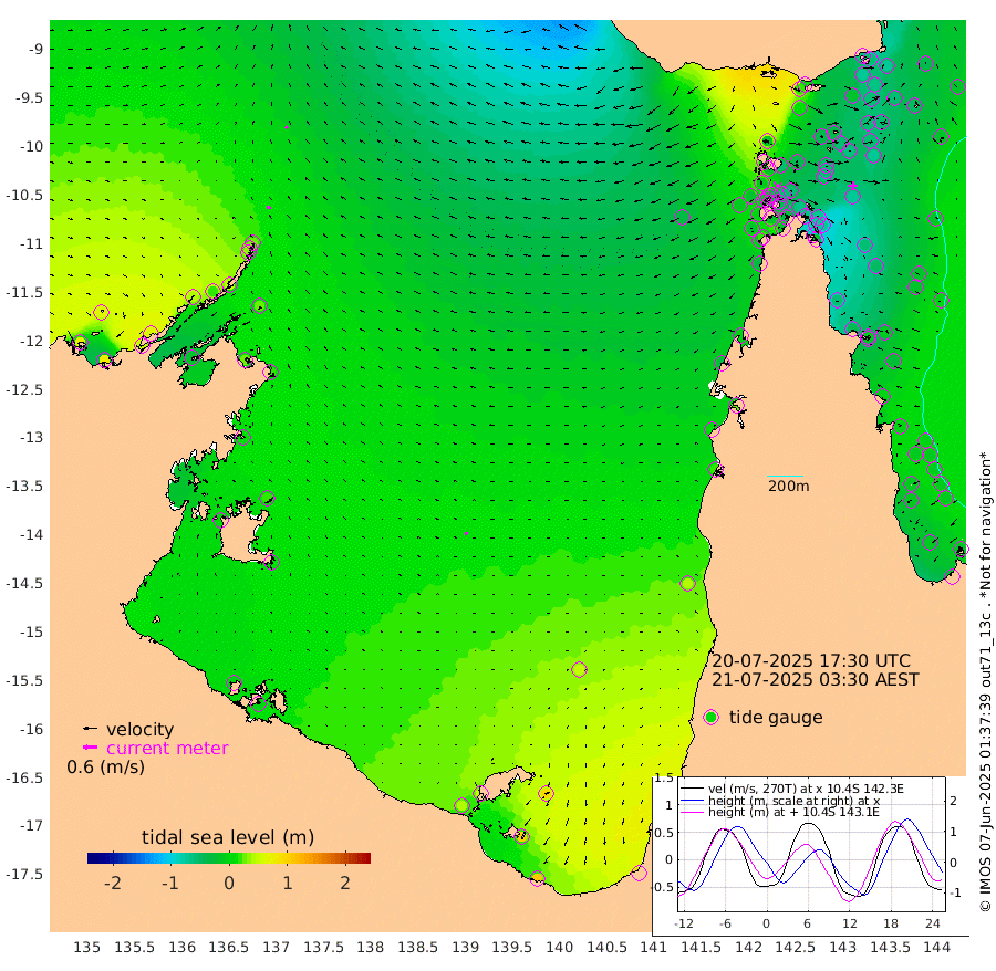 17cm/s -67T +3cm/s rms + 7cm/s -42T. ARA-GOC87 57m 13cm/s -101T +3cm/s rms + 2cm/s -2T. ARA-GOC87 60m 13cm/s -55T +2cm/s rms + 3cm/s 61T. ARA-GOC87 47m -60cm Daru -60cm Bobo Island -21cm Meer Island Barge -41cm Bramble Cay -61cm Unnamed Cay -60cm Pearce Cay -53cm Stephens Island -71cm Merrie England Shoals -74cm Mutacomal Reef -45cm Darnley Island Barge -20cm East Cay -54cm Yorke Island Barge -59cm Rennel Island -54cm Aureed Island -55cm Dungeness Reef -37cm Zagai Island -39cm Yam Island 19cm Dauan Island 12cm Saibai Island 10cm Phipi Reef -22cm Warrior Reef - West -14cm Mabuiag Island Barge -70cm Half Way Island -66cm Coconut Island -69cm Dugong Islet -60cm Poll Island -65cm Kirkcaldie Reef -44cm Suarji Island -56cm Sue Islet -11cm Hawkesbury Island -58cm Alert Patches -60cm Twin Island -7cm Badu Island -53cm St Pauls (Moa Island) -17cm Kubin (Moa Island) -43cm Ince Point -40cm Thursday Island -38cm Nardana Patches -19cm Turtle Head -5cm Round Island -8cm Goods Island -11cm Booby Island -16cm White Rocks Area -37cm Carpentaria -47cm Papou Point -1cm Bampfield Head -13cm Crab Island -16cm Red Wallis Island -18cm Packe Island -82cm Harrington Reef 15cm Herald Camp -18cm Sharp Point -21cm Red Island Point -35cm Possession Island -61cm Alpha Rock -67cm Frederick Point -74cm Wyborn Reef Light -73cm Tetley Island -21cm Triangle Reef -87cm Turtle Head Island -20cm Maclennan Cay -4cm Raine Island -56cm Mcsweeny Reef -48cm Collette Reef -22cm Shadwell Reef -55cm Hannibal Island -43cm Round Point -35cm Vrilya Point -39cm Cape Grenville -24cm Hicks Island -12cm Sir Charles Hardy Island -10cm Harvey Island -28cm Kay Reef -7cm Rocky Island -2cm Chapman Island -3cm Ham Reef -10cm Jubilee Reef -14cm Night Island -8cm Unnamed Reef No. 3 -12cm Morris Island -8cm 1st 3 Mile Opening -12cm Creech Reef -8cm Fife Island -9cm Eden Reef -17cm Stanley Island -19cm Normanby River 69cm Yabooma Island 77cm Hutchison River 67cm Elcho Island 66cm North West Crocodile Island 25cm Cape Wessel 40cm Stevens Island 22cm Guluwuru Island 51cm Hopeful Bay 31cm Auster Point 33cm Two Island Bay 52cm Cadell Strait -17cm Mallison Island 27cm Melville Bay (Gove Harbour) 23cm Truant Island 17cm Cape Arnhem 15cm Cape Grey 17cm Hawk Island 8cm Milner Bay (Groote Eylandt) 11cm Cape Beatrice -1cm West Island -3cm Centre Island 50cm Mornington Island 45cm West Wellesley Islands 94cm Bountiful Island 106cm Albert River Mouth 99cm Sweers Island 107cm Karumba 50cm Nassau River Offshore 40cm Christmas Creek 18cm Archer River 9cm Boyd Point 26cm Weipa (Humbug Point) -30cm Pennefather River -5cm Cullen Point
