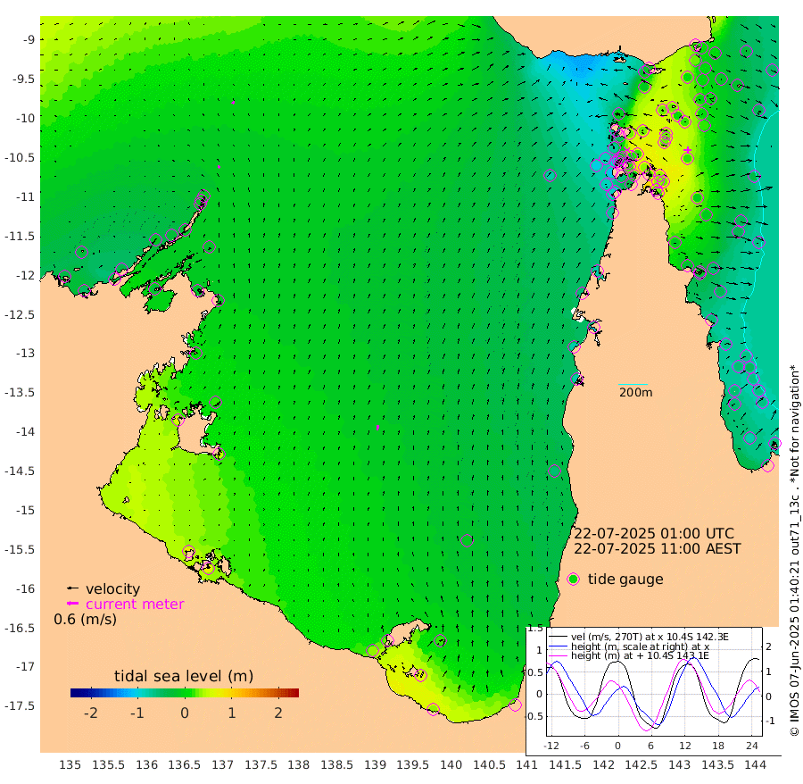 13cm/s 23T +3cm/s rms + 7cm/s -42T. ARA-GOC87 57m 27cm/s 10T +3cm/s rms + 2cm/s -2T. ARA-GOC87 60m 15cm/s 37T +2cm/s rms + 3cm/s 61T. ARA-GOC87 47m 18cm Daru 14cm Bobo Island -45cm Meer Island Barge -24cm Bramble Cay 3cm Unnamed Cay 1cm Pearce Cay -9cm Stephens Island 6cm Merrie England Shoals 27cm Mutacomal Reef -17cm Darnley Island Barge -45cm East Cay 3cm Yorke Island Barge 6cm Rennel Island 6cm Aureed Island 13cm Dungeness Reef 24cm Zagai Island 26cm Yam Island -20cm Dauan Island -8cm Saibai Island -15cm Phipi Reef 12cm Warrior Reef - West -3cm Mabuiag Island Barge 15cm Half Way Island 19cm Coconut Island 21cm Dugong Islet 28cm Poll Island 26cm Kirkcaldie Reef 23cm Suarji Island 28cm Sue Islet -74cm Hawkesbury Island 13cm Alert Patches 22cm Twin Island -70cm Badu Island 27cm St Pauls (Moa Island) -48cm Kubin (Moa Island) -2cm Ince Point -16cm Thursday Island -13cm Nardana Patches -53cm Turtle Head -58cm Round Island -92cm Goods Island -104cm Booby Island -87cm White Rocks Area -77cm Carpentaria 21cm Papou Point -110cm Bampfield Head -85cm Crab Island -89cm Red Wallis Island -67cm Packe Island 32cm Harrington Reef -90cm Herald Camp 21cm Sharp Point -37cm Red Island Point -8cm Possession Island 32cm Alpha Rock 26cm Frederick Point 28cm Wyborn Reef Light 32cm Tetley Island -36cm Triangle Reef 25cm Turtle Head Island -43cm Maclennan Cay -64cm Raine Island -2cm Mcsweeny Reef -12cm Collette Reef -42cm Shadwell Reef -11cm Hannibal Island -25cm Round Point -71cm Vrilya Point -28cm Cape Grenville -39cm Hicks Island -56cm Sir Charles Hardy Island -9cm Harvey Island -45cm Kay Reef -58cm Rocky Island -67cm Chapman Island -64cm Ham Reef -59cm Jubilee Reef -49cm Night Island -63cm Unnamed Reef No. 3 -60cm Morris Island -67cm 1st 3 Mile Opening -62cm Creech Reef -56cm Fife Island -76cm Eden Reef -58cm Stanley Island -53cm Normanby River -32cm Yabooma Island -52cm Hutchison River -37cm Elcho Island -26cm North West Crocodile Island -9cm Cape Wessel -10cm Stevens Island -28cm Guluwuru Island -22cm Hopeful Bay -12cm Auster Point -8cm Two Island Bay -30cm Cadell Strait -26cm Mallison Island -20cm Melville Bay (Gove Harbour) -21cm Truant Island -13cm Cape Arnhem 9cm Cape Grey 18cm Hawk Island 54cm Milner Bay (Groote Eylandt) 46cm Cape Beatrice 78cm West Island 77cm Centre Island 30cm Mornington Island 33cm West Wellesley Islands 21cm Bountiful Island 37cm Albert River Mouth 63cm Sweers Island 33cm Karumba -14cm Nassau River Offshore -53cm Christmas Creek -77cm Archer River -80cm Boyd Point -98cm Weipa (Humbug Point) -56cm Pennefather River -78cm Cullen Point