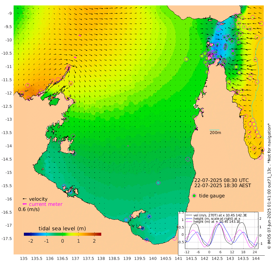 41cm/s 118T +3cm/s rms + 7cm/s -42T. ARA-GOC87 57m 13cm/s 152T +3cm/s rms + 2cm/s -2T. ARA-GOC87 60m 37cm/s 115T +2cm/s rms + 3cm/s 61T. ARA-GOC87 47m -5cm Daru 17cm Bobo Island 79cm Meer Island Barge 67cm Bramble Cay 31cm Unnamed Cay 38cm Pearce Cay 49cm Stephens Island 40cm Merrie England Shoals -3cm Mutacomal Reef 54cm Darnley Island Barge 80cm East Cay 25cm Yorke Island Barge 15cm Rennel Island 16cm Aureed Island -15cm Dungeness Reef -61cm Zagai Island -67cm Yam Island -93cm Dauan Island -87cm Saibai Island -94cm Phipi Reef -72cm Warrior Reef - West -71cm Mabuiag Island Barge 18cm Half Way Island -10cm Coconut Island -2cm Dugong Islet -40cm Poll Island -34cm Kirkcaldie Reef -77cm Suarji Island -42cm Sue Islet 9cm Hawkesbury Island -55cm Alert Patches -54cm Twin Island -8cm Badu Island -74cm St Pauls (Moa Island) -15cm Kubin (Moa Island) -50cm Ince Point -40cm Thursday Island -45cm Nardana Patches -19cm Turtle Head -15cm Round Island 20cm Goods Island 35cm Booby Island 24cm White Rocks Area 43cm Carpentaria -52cm Papou Point 35cm Bampfield Head 28cm Crab Island 24cm Red Wallis Island -1cm Packe Island -8cm Harrington Reef -3cm Herald Camp -39cm Sharp Point -15cm Red Island Point -40cm Possession Island -53cm Alpha Rock -35cm Frederick Point -5cm Wyborn Reef Light -17cm Tetley Island 55cm Triangle Reef 18cm Turtle Head Island 68cm Maclennan Cay 86cm Raine Island 34cm Mcsweeny Reef 42cm Collette Reef 65cm Shadwell Reef 53cm Hannibal Island 69cm Round Point 37cm Vrilya Point 66cm Cape Grenville 70cm Hicks Island 75cm Sir Charles Hardy Island 19cm Harvey Island 84cm Kay Reef 83cm Rocky Island 90cm Chapman Island 88cm Ham Reef 86cm Jubilee Reef 73cm Night Island 89cm Unnamed Reef No. 3 91cm Morris Island 88cm 1st 3 Mile Opening 89cm Creech Reef 84cm Fife Island 117cm Eden Reef 93cm Stanley Island 100cm Normanby River 121cm Yabooma Island 155cm Hutchison River 129cm Elcho Island 112cm North West Crocodile Island 108cm Cape Wessel 119cm Stevens Island 122cm Guluwuru Island 112cm Hopeful Bay 109cm Auster Point 113cm Two Island Bay 153cm Cadell Strait 165cm Mallison Island 97cm Melville Bay (Gove Harbour) 108cm Truant Island 64cm Cape Arnhem 21cm Cape Grey -5cm Hawk Island -50cm Milner Bay (Groote Eylandt) -58cm Cape Beatrice -110cm West Island -109cm Centre Island -115cm Mornington Island -117cm West Wellesley Islands -137cm Bountiful Island -154cm Albert River Mouth -164cm Sweers Island -159cm Karumba -80cm Nassau River Offshore -39cm Christmas Creek 12cm Archer River 22cm Boyd Point 23cm Weipa (Humbug Point) 31cm Pennefather River 23cm Cullen Point