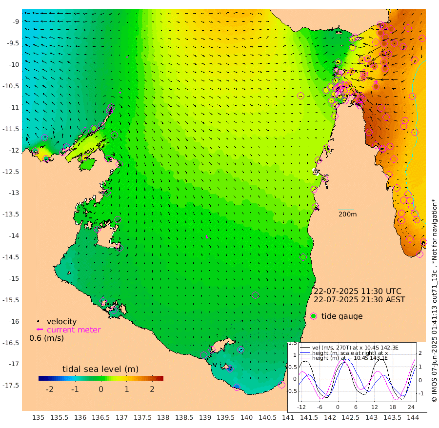 16cm/s 131T +3cm/s rms + 7cm/s -42T. ARA-GOC87 57m 32cm/s 163T +3cm/s rms + 2cm/s -2T. ARA-GOC87 60m 8cm/s 168T +2cm/s rms + 3cm/s 61T. ARA-GOC87 47m 180cm Daru 181cm Bobo Island 134cm Meer Island Barge 163cm Bramble Cay 187cm Unnamed Cay 189cm Pearce Cay 183cm Stephens Island 192cm Merrie England Shoals 190cm Mutacomal Reef 172cm Darnley Island Barge 143cm East Cay 175cm Yorke Island Barge 184cm Rennel Island 177cm Aureed Island 172cm Dungeness Reef 123cm Zagai Island 127cm Yam Island 63cm Dauan Island 56cm Saibai Island 79cm Phipi Reef 122cm Warrior Reef - West 64cm Mabuiag Island Barge 186cm Half Way Island 176cm Coconut Island 189cm Dugong Islet 156cm Poll Island 166cm Kirkcaldie Reef 137cm Suarji Island 147cm Sue Islet 81cm Hawkesbury Island 142cm Alert Patches 143cm Twin Island 70cm Badu Island 129cm St Pauls (Moa Island) 91cm Kubin (Moa Island) 115cm Ince Point 106cm Thursday Island 106cm Nardana Patches 99cm Turtle Head 76cm Round Island 83cm Goods Island 70cm Booby Island 77cm White Rocks Area 64cm Carpentaria 115cm Papou Point 82cm Bampfield Head 51cm Crab Island 72cm Red Wallis Island 94cm Packe Island 201cm Harrington Reef 69cm Herald Camp 28cm Sharp Point 81cm Red Island Point 109cm Possession Island 134cm Alpha Rock 164cm Frederick Point 185cm Wyborn Reef Light 178cm Tetley Island 123cm Triangle Reef 204cm Turtle Head Island 134cm Maclennan Cay 105cm Raine Island 177cm Mcsweeny Reef 166cm Collette Reef 129cm Shadwell Reef 182cm Hannibal Island 169cm Round Point 53cm Vrilya Point 157cm Cape Grenville 144cm Hicks Island 148cm Sir Charles Hardy Island 48cm Harvey Island 144cm Kay Reef 119cm Rocky Island 112cm Chapman Island 108cm Ham Reef 118cm Jubilee Reef 113cm Night Island 114cm Unnamed Reef No. 3 127cm Morris Island 120cm 1st 3 Mile Opening 124cm Creech Reef 121cm Fife Island 138cm Eden Reef 132cm Stanley Island 142cm Normanby River -67cm Yabooma Island -54cm Hutchison River -69cm Elcho Island -75cm North West Crocodile Island -13cm Cape Wessel -47cm Stevens Island 28cm Guluwuru Island -53cm Hopeful Bay -25cm Auster Point -30cm Two Island Bay -27cm Cadell Strait 89cm Mallison Island 7cm Melville Bay (Gove Harbour) 14cm Truant Island 9cm Cape Arnhem -9cm Cape Grey -22cm Hawk Island -57cm Milner Bay (Groote Eylandt) -50cm Cape Beatrice -66cm West Island -66cm Centre Island -61cm Mornington Island -52cm West Wellesley Islands -93cm Bountiful Island -146cm Albert River Mouth -164cm Sweers Island -139cm Karumba -22cm Nassau River Offshore 21cm Christmas Creek 37cm Archer River 49cm Boyd Point 41cm Weipa (Humbug Point) 48cm Pennefather River 41cm Cullen Point