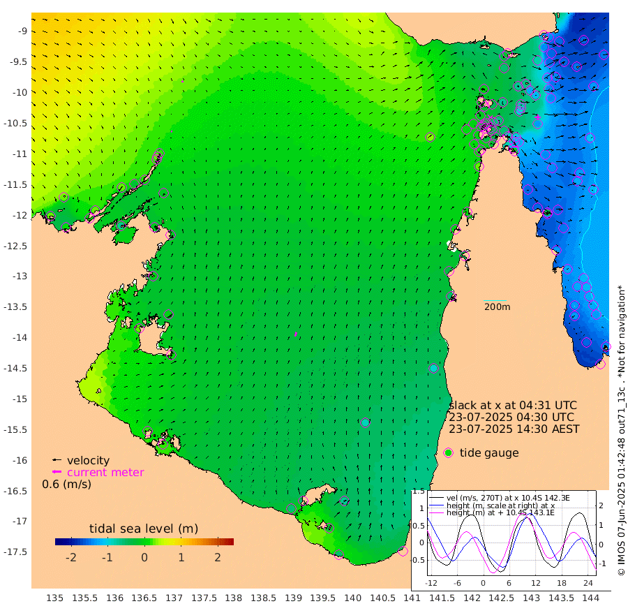 7cm/s 97T +3cm/s rms + 7cm/s -42T. ARA-GOC87 57m 30cm/s 16T +3cm/s rms + 2cm/s -2T. ARA-GOC87 60m 12cm/s 112T +2cm/s rms + 3cm/s 61T. ARA-GOC87 47m -133cm Daru -139cm Bobo Island -131cm Meer Island Barge -150cm Bramble Cay -151cm Unnamed Cay -151cm Pearce Cay -154cm Stephens Island -156cm Merrie England Shoals -140cm Mutacomal Reef -147cm Darnley Island Barge -145cm East Cay -136cm Yorke Island Barge -142cm Rennel Island -137cm Aureed Island -124cm Dungeness Reef -67cm Zagai Island -72cm Yam Island -28cm Dauan Island -17cm Saibai Island -59cm Phipi Reef -79cm Warrior Reef - West 1cm Mabuiag Island Barge -137cm Half Way Island -117cm Coconut Island -134cm Dugong Islet -92cm Poll Island -104cm Kirkcaldie Reef -70cm Suarji Island -81cm Sue Islet -8cm Hawkesbury Island -60cm Alert Patches -62cm Twin Island -2cm Badu Island -45cm St Pauls (Moa Island) -23cm Kubin (Moa Island) -37cm Ince Point -26cm Thursday Island -28cm Nardana Patches -34cm Turtle Head -15cm Round Island -20cm Goods Island 5cm Booby Island -5cm White Rocks Area 32cm Carpentaria -40cm Papou Point -1cm Bampfield Head 11cm Crab Island 0cm Red Wallis Island -32cm Packe Island -133cm Harrington Reef -21cm Herald Camp -6cm Sharp Point -25cm Red Island Point -39cm Possession Island -58cm Alpha Rock -89cm Frederick Point -121cm Wyborn Reef Light -109cm Tetley Island -112cm Triangle Reef -124cm Turtle Head Island -128cm Maclennan Cay -115cm Raine Island -140cm Mcsweeny Reef -140cm Collette Reef -124cm Shadwell Reef -156cm Hannibal Island -154cm Round Point 23cm Vrilya Point -146cm Cape Grenville -141cm Hicks Island -150cm Sir Charles Hardy Island -45cm Harvey Island -144cm Kay Reef -129cm Rocky Island -126cm Chapman Island -119cm Ham Reef -123cm Jubilee Reef -118cm Night Island -123cm Unnamed Reef No. 3 -135cm Morris Island -123cm 1st 3 Mile Opening -129cm Creech Reef -130cm Fife Island -155cm Eden Reef -139cm Stanley Island -152cm Normanby River 26cm Yabooma Island 8cm Hutchison River 26cm Elcho Island 29cm North West Crocodile Island 17cm Cape Wessel 27cm Stevens Island -26cm Guluwuru Island 19cm Hopeful Bay 21cm Auster Point 24cm Two Island Bay 2cm Cadell Strait -73cm Mallison Island -12cm Melville Bay (Gove Harbour) -8cm Truant Island -9cm Cape Arnhem -2cm Cape Grey -5cm Hawk Island 25cm Milner Bay (Groote Eylandt) 8cm Cape Beatrice 21cm West Island 21cm Centre Island -56cm Mornington Island -58cm West Wellesley Islands -71cm Bountiful Island -54cm Albert River Mouth -29cm Sweers Island -59cm Karumba -83cm Nassau River Offshore -90cm Christmas Creek -56cm Archer River -36cm Boyd Point -46cm Weipa (Humbug Point) -2cm Pennefather River 5cm Cullen Point