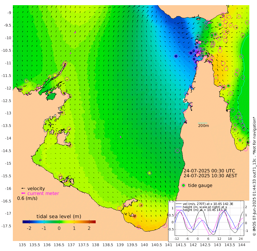 24cm/s 43T +3cm/s rms + 7cm/s -42T. ARA-GOC87 57m 25cm/s -12T +3cm/s rms + 2cm/s -2T. ARA-GOC87 60m 32cm/s 44T +2cm/s rms + 3cm/s 61T. ARA-GOC87 47m 66cm Daru 76cm Bobo Island 31cm Meer Island Barge 56cm Bramble Cay 69cm Unnamed Cay 71cm Pearce Cay 66cm Stephens Island 74cm Merrie England Shoals 72cm Mutacomal Reef 58cm Darnley Island Barge 37cm East Cay 62cm Yorke Island Barge 61cm Rennel Island 67cm Aureed Island 48cm Dungeness Reef 19cm Zagai Island 12cm Yam Island -64cm Dauan Island -57cm Saibai Island -36cm Phipi Reef 9cm Warrior Reef - West -76cm Mabuiag Island Barge 66cm Half Way Island 52cm Coconut Island 60cm Dugong Islet 35cm Poll Island 33cm Kirkcaldie Reef 8cm Suarji Island 26cm Sue Islet -177cm Hawkesbury Island -23cm Alert Patches -9cm Twin Island -162cm Badu Island -16cm St Pauls (Moa Island) -122cm Kubin (Moa Island) -57cm Ince Point -83cm Thursday Island -77cm Nardana Patches -120cm Turtle Head -135cm Round Island -175cm Goods Island -210cm Booby Island -183cm White Rocks Area -189cm Carpentaria -19cm Papou Point -207cm Bampfield Head -181cm Crab Island -192cm Red Wallis Island -142cm Packe Island 70cm Harrington Reef -181cm Herald Camp 3cm Sharp Point -106cm Red Island Point -54cm Possession Island 7cm Alpha Rock 23cm Frederick Point 64cm Wyborn Reef Light 55cm Tetley Island 19cm Triangle Reef 60cm Turtle Head Island 23cm Maclennan Cay 3cm Raine Island 60cm Mcsweeny Reef 54cm Collette Reef 24cm Shadwell Reef 66cm Hannibal Island 55cm Round Point -175cm Vrilya Point 45cm Cape Grenville 37cm Hicks Island 22cm Sir Charles Hardy Island 14cm Harvey Island 33cm Kay Reef 17cm Rocky Island 7cm Chapman Island 4cm Ham Reef 12cm Jubilee Reef 19cm Night Island 6cm Unnamed Reef No. 3 19cm Morris Island 4cm 1st 3 Mile Opening 12cm Creech Reef 25cm Fife Island 22cm Eden Reef 21cm Stanley Island 38cm Normanby River 27cm Yabooma Island 36cm Hutchison River 31cm Elcho Island 32cm North West Crocodile Island 46cm Cape Wessel 54cm Stevens Island 57cm Guluwuru Island 43cm Hopeful Bay 44cm Auster Point 46cm Two Island Bay 59cm Cadell Strait 97cm Mallison Island 55cm Melville Bay (Gove Harbour) 53cm Truant Island 43cm Cape Arnhem 53cm Cape Grey 63cm Hawk Island 81cm Milner Bay (Groote Eylandt) 75cm Cape Beatrice 88cm West Island 87cm Centre Island 94cm Mornington Island 96cm West Wellesley Islands 109cm Bountiful Island 141cm Albert River Mouth 173cm Sweers Island 128cm Karumba 36cm Nassau River Offshore -26cm Christmas Creek -89cm Archer River -113cm Boyd Point -125cm Weipa (Humbug Point) -116cm Pennefather River -160cm Cullen Point