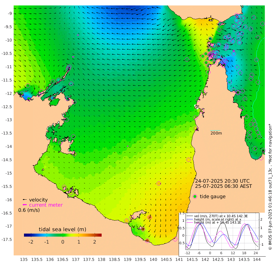 32cm/s -82T +3cm/s rms + 7cm/s -42T. ARA-GOC87 57m 18cm/s -95T +3cm/s rms + 2cm/s -2T. ARA-GOC87 60m 27cm/s -87T +2cm/s rms + 3cm/s 61T. ARA-GOC87 47m -100cm Daru -102cm Bobo Island -34cm Meer Island Barge -53cm Bramble Cay -85cm Unnamed Cay -94cm Pearce Cay -80cm Stephens Island -81cm Merrie England Shoals -100cm Mutacomal Reef -72cm Darnley Island Barge -34cm East Cay -90cm Yorke Island Barge -92cm Rennel Island -95cm Aureed Island -93cm Dungeness Reef -95cm Zagai Island -90cm Yam Island -46cm Dauan Island -52cm Saibai Island -30cm Phipi Reef -83cm Warrior Reef - West -58cm Mabuiag Island Barge -97cm Half Way Island -104cm Coconut Island -105cm Dugong Islet -104cm Poll Island -97cm Kirkcaldie Reef -98cm Suarji Island -103cm Sue Islet -19cm Hawkesbury Island -92cm Alert Patches -101cm Twin Island -16cm Badu Island -104cm St Pauls (Moa Island) -40cm Kubin (Moa Island) -75cm Ince Point -63cm Thursday Island -65cm Nardana Patches -32cm Turtle Head -24cm Round Island -3cm Goods Island 6cm Booby Island -3cm White Rocks Area -24cm Carpentaria -91cm Papou Point -16cm Bampfield Head 13cm Crab Island -1cm Red Wallis Island -19cm Packe Island -122cm Harrington Reef 3cm Herald Camp -28cm Sharp Point -25cm Red Island Point -69cm Possession Island -102cm Alpha Rock -110cm Frederick Point -116cm Wyborn Reef Light -118cm Tetley Island -39cm Triangle Reef -131cm Turtle Head Island -34cm Maclennan Cay -5cm Raine Island -84cm Mcsweeny Reef -67cm Collette Reef -30cm Shadwell Reef -71cm Hannibal Island -57cm Round Point 3cm Vrilya Point -45cm Cape Grenville -39cm Hicks Island -32cm Sir Charles Hardy Island -15cm Harvey Island -27cm Kay Reef -13cm Rocky Island -4cm Chapman Island -8cm Ham Reef -15cm Jubilee Reef -17cm Night Island -8cm Unnamed Reef No. 3 -15cm Morris Island -12cm 1st 3 Mile Opening -15cm Creech Reef -22cm Fife Island -7cm Eden Reef -15cm Stanley Island -22cm Normanby River 1cm Yabooma Island -3cm Hutchison River 7cm Elcho Island 13cm North West Crocodile Island -60cm Cape Wessel -28cm Stevens Island -69cm Guluwuru Island -7cm Hopeful Bay -46cm Auster Point -49cm Two Island Bay -43cm Cadell Strait -113cm Mallison Island -54cm Melville Bay (Gove Harbour) -70cm Truant Island -45cm Cape Arnhem -22cm Cape Grey -1cm Hawk Island 17cm Milner Bay (Groote Eylandt) 32cm Cape Beatrice 45cm West Island 50cm Centre Island 114cm Mornington Island 106cm West Wellesley Islands 156cm Bountiful Island 199cm Albert River Mouth 183cm Sweers Island 199cm Karumba 118cm Nassau River Offshore 93cm Christmas Creek 63cm Archer River 29cm Boyd Point 56cm Weipa (Humbug Point) 14cm Pennefather River 18cm Cullen Point