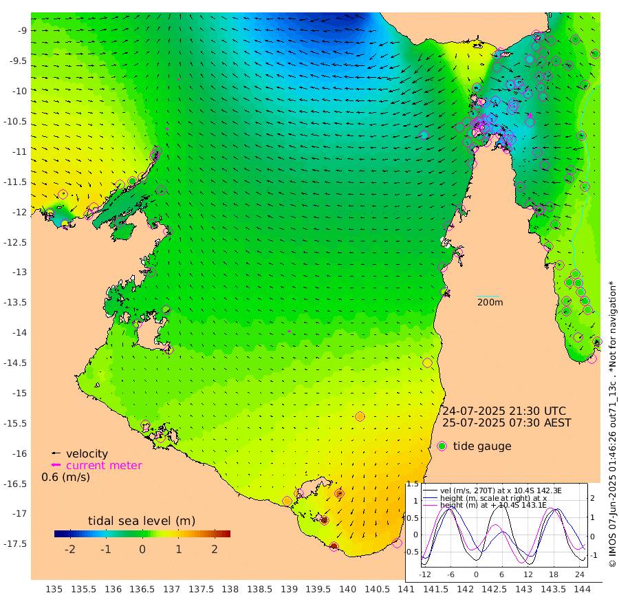 17cm/s -70T +3cm/s rms + 7cm/s -42T. ARA-GOC87 57m 20cm/s -76T +3cm/s rms + 2cm/s -2T. ARA-GOC87 60m 11cm/s -54T +2cm/s rms + 3cm/s 61T. ARA-GOC87 47m -69cm Daru -62cm Bobo Island 1cm Meer Island Barge -9cm Bramble Cay -43cm Unnamed Cay -49cm Pearce Cay -36cm Stephens Island -35cm Merrie England Shoals -64cm Mutacomal Reef -32cm Darnley Island Barge 5cm East Cay -55cm Yorke Island Barge -57cm Rennel Island -58cm Aureed Island -71cm Dungeness Reef -97cm Zagai Island -95cm Yam Island -86cm Dauan Island -90cm Saibai Island -59cm Phipi Reef -90cm Warrior Reef - West -97cm Mabuiag Island Barge -61cm Half Way Island -79cm Coconut Island -76cm Dugong Islet -93cm Poll Island -87cm Kirkcaldie Reef -104cm Suarji Island -97cm Sue Islet -74cm Hawkesbury Island -107cm Alert Patches -110cm Twin Island -71cm Badu Island -121cm St Pauls (Moa Island) -82cm Kubin (Moa Island) -102cm Ince Point -97cm Thursday Island -98cm Nardana Patches -74cm Turtle Head -71cm Round Island -56cm Goods Island -60cm Booby Island -58cm White Rocks Area -86cm Carpentaria -104cm Papou Point -79cm Bampfield Head -46cm Crab Island -61cm Red Wallis Island -64cm Packe Island -89cm Harrington Reef -60cm Herald Camp -36cm Sharp Point -63cm Red Island Point -92cm Possession Island -104cm Alpha Rock -102cm Frederick Point -84cm Wyborn Reef Light -93cm Tetley Island -13cm Triangle Reef -96cm Turtle Head Island -4cm Maclennan Cay 21cm Raine Island -46cm Mcsweeny Reef -30cm Collette Reef -1cm Shadwell Reef -26cm Hannibal Island -11cm Round Point -55cm Vrilya Point -6cm Cape Grenville -2cm Hicks Island 1cm Sir Charles Hardy Island -3cm Harvey Island 11cm Kay Reef 18cm Rocky Island 26cm Chapman Island 19cm Ham Reef 14cm Jubilee Reef 12cm Night Island 20cm Unnamed Reef No. 3 19cm Morris Island 14cm 1st 3 Mile Opening 15cm Creech Reef 13cm Fife Island 35cm Eden Reef 20cm Stanley Island 22cm Normanby River 62cm Yabooma Island 71cm Hutchison River 69cm Elcho Island 70cm North West Crocodile Island -5cm Cape Wessel 39cm Stevens Island -11cm Guluwuru Island 53cm Hopeful Bay 11cm Auster Point 7cm Two Island Bay 32cm Cadell Strait -36cm Mallison Island -1cm Melville Bay (Gove Harbour) -15cm Truant Island -9cm Cape Arnhem 6cm Cape Grey 24cm Hawk Island 35cm Milner Bay (Groote Eylandt) 46cm Cape Beatrice 47cm West Island 52cm Centre Island 121cm Mornington Island 114cm West Wellesley Islands 167cm Bountiful Island 218cm Albert River Mouth 211cm Sweers Island 211cm Karumba 113cm Nassau River Offshore 75cm Christmas Creek 34cm Archer River -8cm Boyd Point 17cm Weipa (Humbug Point) -24cm Pennefather River -37cm Cullen Point