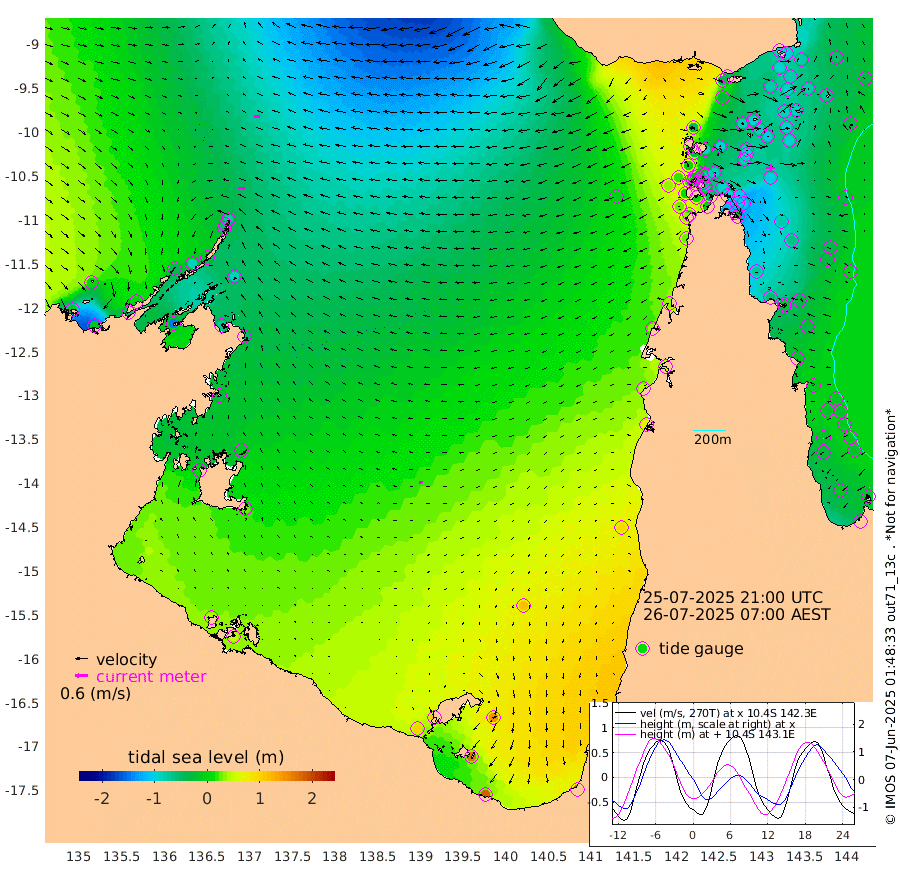32cm/s -87T +3cm/s rms + 7cm/s -42T. ARA-GOC87 57m 17cm/s -98T +3cm/s rms + 2cm/s -2T. ARA-GOC87 60m 28cm/s -94T +2cm/s rms + 3cm/s 61T. ARA-GOC87 47m -96cm Daru -100cm Bobo Island -36cm Meer Island Barge -53cm Bramble Cay -81cm Unnamed Cay -91cm Pearce Cay -78cm Stephens Island -75cm Merrie England Shoals -93cm Mutacomal Reef -72cm Darnley Island Barge -36cm East Cay -88cm Yorke Island Barge -88cm Rennel Island -94cm Aureed Island -87cm Dungeness Reef -92cm Zagai Island -83cm Yam Island -43cm Dauan Island -50cm Saibai Island -24cm Phipi Reef -80cm Warrior Reef - West -46cm Mabuiag Island Barge -90cm Half Way Island -98cm Coconut Island -98cm Dugong Islet -96cm Poll Island -87cm Kirkcaldie Reef -91cm Suarji Island -96cm Sue Islet 6cm Hawkesbury Island -78cm Alert Patches -88cm Twin Island 5cm Badu Island -91cm St Pauls (Moa Island) -23cm Kubin (Moa Island) -60cm Ince Point -45cm Thursday Island -48cm Nardana Patches -14cm Turtle Head -8cm Round Island 18cm Goods Island 30cm Booby Island 20cm White Rocks Area -4cm Carpentaria -79cm Papou Point 1cm Bampfield Head 36cm Crab Island 23cm Red Wallis Island 1cm Packe Island -114cm Harrington Reef 20cm Herald Camp -24cm Sharp Point -5cm Red Island Point -55cm Possession Island -92cm Alpha Rock -100cm Frederick Point -110cm Wyborn Reef Light -112cm Tetley Island -40cm Triangle Reef -121cm Turtle Head Island -36cm Maclennan Cay -7cm Raine Island -82cm Mcsweeny Reef -66cm Collette Reef -31cm Shadwell Reef -69cm Hannibal Island -56cm Round Point 29cm Vrilya Point -45cm Cape Grenville -40cm Hicks Island -36cm Sir Charles Hardy Island -15cm Harvey Island -28cm Kay Reef -16cm Rocky Island -8cm Chapman Island -12cm Ham Reef -18cm Jubilee Reef -19cm Night Island -11cm Unnamed Reef No. 3 -18cm Morris Island -15cm 1st 3 Mile Opening -17cm Creech Reef -27cm Fife Island -11cm Eden Reef -16cm Stanley Island -24cm Normanby River -8cm Yabooma Island -16cm Hutchison River -4cm Elcho Island 4cm North West Crocodile Island -75cm Cape Wessel -39cm Stevens Island -88cm Guluwuru Island -19cm Hopeful Bay -57cm Auster Point -61cm Two Island Bay -57cm Cadell Strait -144cm Mallison Island -70cm Melville Bay (Gove Harbour) -87cm Truant Island -59cm Cape Arnhem -31cm Cape Grey -11cm Hawk Island 10cm Milner Bay (Groote Eylandt) 27cm Cape Beatrice 43cm West Island 49cm Centre Island 106cm Mornington Island 99cm West Wellesley Islands 143cm Bountiful Island 184cm Albert River Mouth 167cm Sweers Island 187cm Karumba 116cm Nassau River Offshore 96cm Christmas Creek 73cm Archer River 39cm Boyd Point 65cm Weipa (Humbug Point) 34cm Pennefather River 35cm Cullen Point