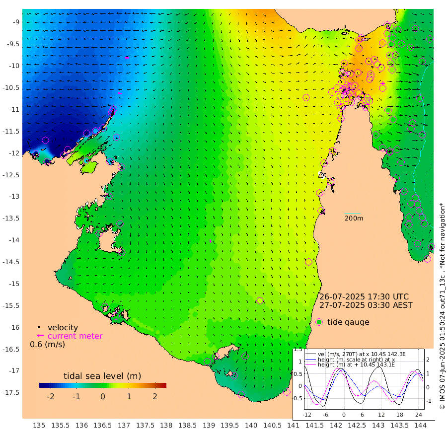 31cm/s -85T +3cm/s rms + 7cm/s -42T. ARA-GOC87 57m 30cm/s 170T +3cm/s rms + 2cm/s -2T. ARA-GOC87 60m 41cm/s -91T +2cm/s rms + 3cm/s 61T. ARA-GOC87 47m 51cm Daru 31cm Bobo Island -15cm Meer Island Barge -15cm Bramble Cay 13cm Unnamed Cay 15cm Pearce Cay 9cm Stephens Island 2cm Merrie England Shoals 36cm Mutacomal Reef 9cm Darnley Island Barge -16cm East Cay 31cm Yorke Island Barge 33cm Rennel Island 34cm Aureed Island 62cm Dungeness Reef 99cm Zagai Island 108cm Yam Island 146cm Dauan Island 138cm Saibai Island 134cm Phipi Reef 119cm Warrior Reef - West 116cm Mabuiag Island Barge 35cm Half Way Island 54cm Coconut Island 53cm Dugong Islet 78cm Poll Island 87cm Kirkcaldie Reef 102cm Suarji Island 87cm Sue Islet 99cm Hawkesbury Island 105cm Alert Patches 102cm Twin Island 99cm Badu Island 119cm St Pauls (Moa Island) 101cm Kubin (Moa Island) 109cm Ince Point 108cm Thursday Island 109cm Nardana Patches 102cm Turtle Head 91cm Round Island 85cm Goods Island 86cm Booby Island 71cm White Rocks Area 85cm Carpentaria 99cm Papou Point 77cm Bampfield Head 84cm Crab Island 89cm Red Wallis Island 98cm Packe Island 55cm Harrington Reef 114cm Herald Camp 46cm Sharp Point 97cm Red Island Point 93cm Possession Island 86cm Alpha Rock 83cm Frederick Point 40cm Wyborn Reef Light 52cm Tetley Island 1cm Triangle Reef 39cm Turtle Head Island -3cm Maclennan Cay -23cm Raine Island 17cm Mcsweeny Reef 8cm Collette Reef -8cm Shadwell Reef -1cm Hannibal Island -17cm Round Point 84cm Vrilya Point -11cm Cape Grenville -10cm Hicks Island -3cm Sir Charles Hardy Island 0cm Harvey Island -26cm Kay Reef -22cm Rocky Island -30cm Chapman Island -21cm Ham Reef -20cm Jubilee Reef -15cm Night Island -23cm Unnamed Reef No. 3 -26cm Morris Island -21cm 1st 3 Mile Opening -19cm Creech Reef -20cm Fife Island -44cm Eden Reef -27cm Stanley Island -37cm Normanby River -223cm Yabooma Island -253cm Hutchison River -229cm Elcho Island -214cm North West Crocodile Island -152cm Cape Wessel -214cm Stevens Island -123cm Guluwuru Island -200cm Hopeful Bay -171cm Auster Point -163cm Two Island Bay -199cm Cadell Strait -99cm Mallison Island -123cm Melville Bay (Gove Harbour) -127cm Truant Island -78cm Cape Arnhem -61cm Cape Grey -53cm Hawk Island -49cm Milner Bay (Groote Eylandt) -31cm Cape Beatrice 3cm West Island 2cm Centre Island 18cm Mornington Island 14cm West Wellesley Islands -6cm Bountiful Island -44cm Albert River Mouth -67cm Sweers Island -16cm Karumba 47cm Nassau River Offshore 72cm Christmas Creek 59cm Archer River 71cm Boyd Point 64cm Weipa (Humbug Point) 62cm Pennefather River 84cm Cullen Point