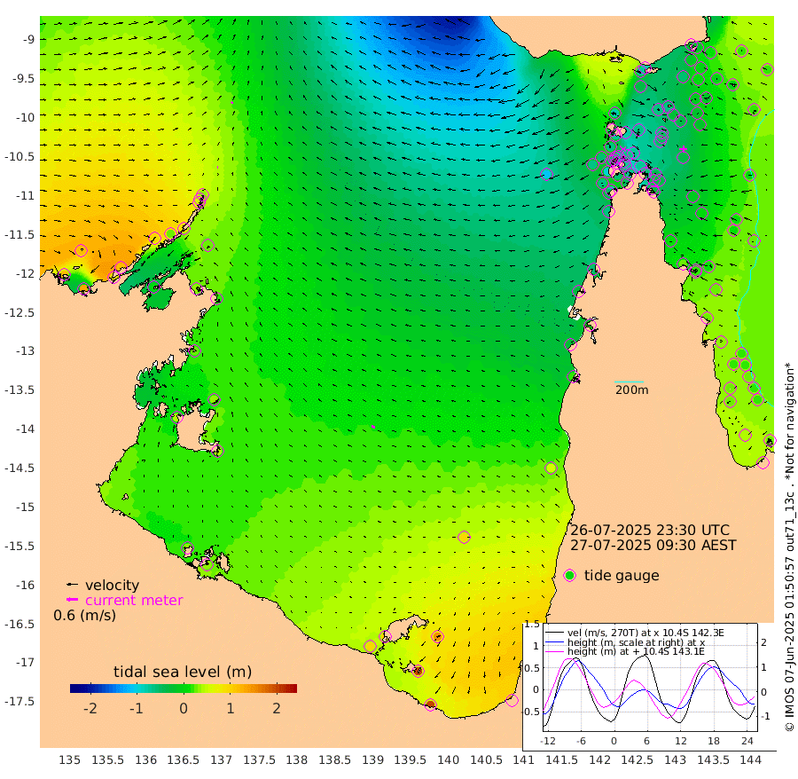 3cm/s 82T +3cm/s rms + 7cm/s -42T. ARA-GOC87 57m 19cm/s -64T +3cm/s rms + 2cm/s -2T. ARA-GOC87 60m 10cm/s 67T +2cm/s rms + 3cm/s 61T. ARA-GOC87 47m -23cm Daru -15cm Bobo Island 15cm Meer Island Barge 21cm Bramble Cay -3cm Unnamed Cay 0cm Pearce Cay 0cm Stephens Island 8cm Merrie England Shoals -15cm Mutacomal Reef -2cm Darnley Island Barge 22cm East Cay -18cm Yorke Island Barge -15cm Rennel Island -17cm Aureed Island -27cm Dungeness Reef -62cm Zagai Island -63cm Yam Island -69cm Dauan Island -77cm Saibai Island -36cm Phipi Reef -57cm Warrior Reef - West -77cm Mabuiag Island Barge -18cm Half Way Island -32cm Coconut Island -32cm Dugong Islet -48cm Poll Island -46cm Kirkcaldie Reef -65cm Suarji Island -59cm Sue Islet -65cm Hawkesbury Island -67cm Alert Patches -69cm Twin Island -54cm Badu Island -81cm St Pauls (Moa Island) -68cm Kubin (Moa Island) -72cm Ince Point -73cm Thursday Island -73cm Nardana Patches -58cm Turtle Head -66cm Round Island -51cm Goods Island -64cm Booby Island -53cm White Rocks Area -106cm Carpentaria -71cm Papou Point -90cm Bampfield Head -51cm Crab Island -62cm Red Wallis Island -55cm Packe Island -37cm Harrington Reef -77cm Herald Camp -27cm Sharp Point -46cm Red Island Point -68cm Possession Island -68cm Alpha Rock -56cm Frederick Point -32cm Wyborn Reef Light -41cm Tetley Island 4cm Triangle Reef -38cm Turtle Head Island 8cm Maclennan Cay 27cm Raine Island -8cm Mcsweeny Reef 3cm Collette Reef 14cm Shadwell Reef 9cm Hannibal Island 23cm Round Point -60cm Vrilya Point 16cm Cape Grenville 16cm Hicks Island 9cm Sir Charles Hardy Island 3cm Harvey Island 26cm Kay Reef 26cm Rocky Island 34cm Chapman Island 22cm Ham Reef 21cm Jubilee Reef 20cm Night Island 26cm Unnamed Reef No. 3 28cm Morris Island 20cm 1st 3 Mile Opening 22cm Creech Reef 25cm Fife Island 42cm Eden Reef 28cm Stanley Island 36cm Normanby River 114cm Yabooma Island 131cm Hutchison River 117cm Elcho Island 117cm North West Crocodile Island 34cm Cape Wessel 97cm Stevens Island 25cm Guluwuru Island 97cm Hopeful Bay 57cm Auster Point 48cm Two Island Bay 96cm Cadell Strait 3cm Mallison Island 36cm Melville Bay (Gove Harbour) 25cm Truant Island 15cm Cape Arnhem 23cm Cape Grey 35cm Hawk Island 38cm Milner Bay (Groote Eylandt) 45cm Cape Beatrice 33cm West Island 36cm Centre Island 100cm Mornington Island 97cm West Wellesley Islands 143cm Bountiful Island 196cm Albert River Mouth 198cm Sweers Island 188cm Karumba 95cm Nassau River Offshore 55cm Christmas Creek 21cm Archer River -23cm Boyd Point -2cm Weipa (Humbug Point) -25cm Pennefather River -54cm Cullen Point