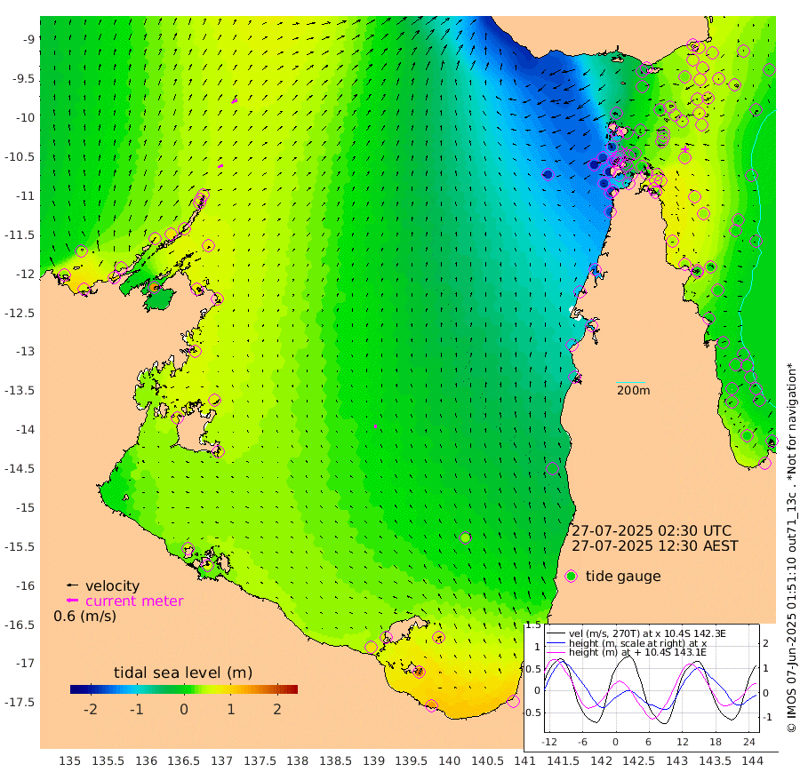 29cm/s 67T +3cm/s rms + 7cm/s -42T. ARA-GOC87 57m 19cm/s -14T +3cm/s rms + 2cm/s -2T. ARA-GOC87 60m 35cm/s 59T +2cm/s rms + 3cm/s 61T. ARA-GOC87 47m 53cm Daru 64cm Bobo Island 18cm Meer Island Barge 35cm Bramble Cay 42cm Unnamed Cay 58cm Pearce Cay 45cm Stephens Island 44cm Merrie England Shoals 47cm Mutacomal Reef 41cm Darnley Island Barge 20cm East Cay 46cm Yorke Island Barge 42cm Rennel Island 58cm Aureed Island 38cm Dungeness Reef 30cm Zagai Island 9cm Yam Island -24cm Dauan Island -23cm Saibai Island -7cm Phipi Reef 26cm Warrior Reef - West -55cm Mabuiag Island Barge 41cm Half Way Island 45cm Coconut Island 37cm Dugong Islet 30cm Poll Island 18cm Kirkcaldie Reef 16cm Suarji Island 21cm Sue Islet -176cm Hawkesbury Island -20cm Alert Patches -9cm Twin Island -135cm Badu Island -10cm St Pauls (Moa Island) -116cm Kubin (Moa Island) -51cm Ince Point -76cm Thursday Island -69cm Nardana Patches -106cm Turtle Head -135cm Round Island -160cm Goods Island -197cm Booby Island -174cm White Rocks Area -183cm Carpentaria -18cm Papou Point -202cm Bampfield Head -168cm Crab Island -181cm Red Wallis Island -135cm Packe Island 49cm Harrington Reef -190cm Herald Camp 3cm Sharp Point -101cm Red Island Point -56cm Possession Island -1cm Alpha Rock 17cm Frederick Point 47cm Wyborn Reef Light 41cm Tetley Island 13cm Triangle Reef 38cm Turtle Head Island 9cm Maclennan Cay -2cm Raine Island 44cm Mcsweeny Reef 37cm Collette Reef 13cm Shadwell Reef 44cm Hannibal Island 35cm Round Point -167cm Vrilya Point 21cm Cape Grenville 19cm Hicks Island 5cm Sir Charles Hardy Island 7cm Harvey Island 11cm Kay Reef 5cm Rocky Island 2cm Chapman Island -5cm Ham Reef 2cm Jubilee Reef 9cm Night Island -1cm Unnamed Reef No. 3 7cm Morris Island -4cm 1st 3 Mile Opening 2cm Creech Reef 22cm Fife Island 7cm Eden Reef 2cm Stanley Island 14cm Normanby River 32cm Yabooma Island 54cm Hutchison River 44cm Elcho Island 38cm North West Crocodile Island 61cm Cape Wessel 67cm Stevens Island 85cm Guluwuru Island 51cm Hopeful Bay 56cm Auster Point 49cm Two Island Bay 87cm Cadell Strait 149cm Mallison Island 81cm Melville Bay (Gove Harbour) 82cm Truant Island 67cm Cape Arnhem 66cm Cape Grey 67cm Hawk Island 75cm Milner Bay (Groote Eylandt) 68cm Cape Beatrice 67cm West Island 63cm Centre Island 88cm Mornington Island 89cm West Wellesley Islands 103cm Bountiful Island 141cm Albert River Mouth 172cm Sweers Island 123cm Karumba 37cm Nassau River Offshore -19cm Christmas Creek -76cm Archer River -100cm Boyd Point -110cm Weipa (Humbug Point) -105cm Pennefather River -154cm Cullen Point