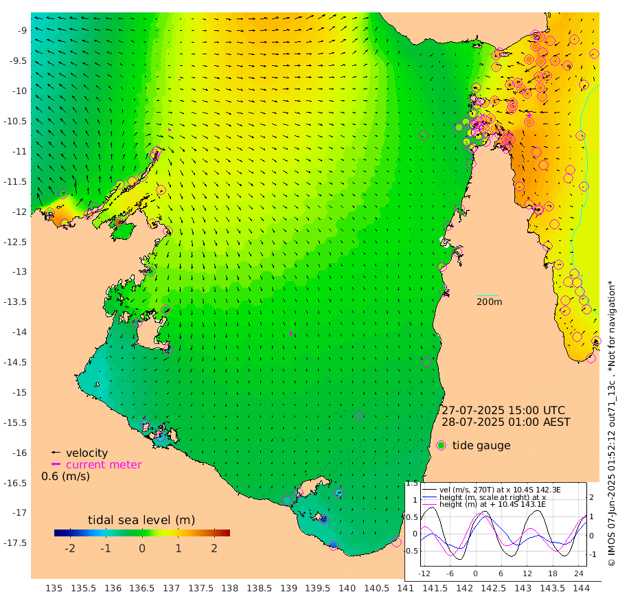 20cm/s 105T +3cm/s rms + 7cm/s -42T. ARA-GOC87 57m 30cm/s 167T +3cm/s rms + 2cm/s -2T. ARA-GOC87 60m 11cm/s 83T +2cm/s rms + 3cm/s 61T. ARA-GOC87 47m 148cm Daru 150cm Bobo Island 87cm Meer Island Barge 111cm Bramble Cay 132cm Unnamed Cay 146cm Pearce Cay 131cm Stephens Island 126cm Merrie England Shoals 144cm Mutacomal Reef 122cm Darnley Island Barge 98cm East Cay 135cm Yorke Island Barge 141cm Rennel Island 142cm Aureed Island 139cm Dungeness Reef 134cm Zagai Island 134cm Yam Island 120cm Dauan Island 114cm Saibai Island 107cm Phipi Reef 147cm Warrior Reef - West 87cm Mabuiag Island Barge 133cm Half Way Island 142cm Coconut Island 144cm Dugong Islet 138cm Poll Island 133cm Kirkcaldie Reef 128cm Suarji Island 132cm Sue Islet 71cm Hawkesbury Island 117cm Alert Patches 127cm Twin Island 65cm Badu Island 126cm St Pauls (Moa Island) 86cm Kubin (Moa Island) 103cm Ince Point 89cm Thursday Island 92cm Nardana Patches 79cm Turtle Head 68cm Round Island 53cm Goods Island 28cm Booby Island 37cm White Rocks Area 11cm Carpentaria 111cm Papou Point 49cm Bampfield Head 15cm Crab Island 40cm Red Wallis Island 75cm Packe Island 152cm Harrington Reef 64cm Herald Camp 30cm Sharp Point 67cm Red Island Point 93cm Possession Island 122cm Alpha Rock 140cm Frederick Point 151cm Wyborn Reef Light 152cm Tetley Island 93cm Triangle Reef 151cm Turtle Head Island 90cm Maclennan Cay 63cm Raine Island 130cm Mcsweeny Reef 117cm Collette Reef 84cm Shadwell Reef 123cm Hannibal Island 117cm Round Point 1cm Vrilya Point 99cm Cape Grenville 98cm Hicks Island 107cm Sir Charles Hardy Island 32cm Harvey Island 86cm Kay Reef 76cm Rocky Island 74cm Chapman Island 71cm Ham Reef 74cm Jubilee Reef 70cm Night Island 72cm Unnamed Reef No. 3 77cm Morris Island 65cm 1st 3 Mile Opening 73cm Creech Reef 89cm Fife Island 79cm Eden Reef 74cm Stanley Island 87cm Normanby River 25cm Yabooma Island 42cm Hutchison River 14cm Elcho Island 10cm North West Crocodile Island 66cm Cape Wessel 39cm Stevens Island 93cm Guluwuru Island 27cm Hopeful Bay 47cm Auster Point 54cm Two Island Bay 81cm Cadell Strait 184cm Mallison Island 73cm Melville Bay (Gove Harbour) 85cm Truant Island 55cm Cape Arnhem 13cm Cape Grey -1cm Hawk Island -58cm Milner Bay (Groote Eylandt) -58cm Cape Beatrice -96cm West Island -104cm Centre Island -77cm Mornington Island -74cm West Wellesley Islands -95cm Bountiful Island -144cm Albert River Mouth -162cm Sweers Island -132cm Karumba -38cm Nassau River Offshore 0cm Christmas Creek 5cm Archer River 23cm Boyd Point 15cm Weipa (Humbug Point) -4cm Pennefather River 13cm Cullen Point