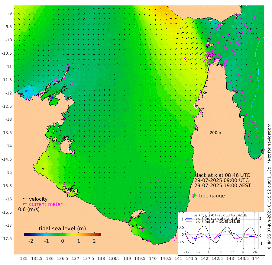 18cm/s -86T +3cm/s rms + 7cm/s -42T. ARA-GOC87 57m 16cm/s 23T +3cm/s rms + 2cm/s -2T. ARA-GOC87 60m 17cm/s -115T +2cm/s rms + 3cm/s 61T. ARA-GOC87 47m -67cm Daru -68cm Bobo Island -31cm Meer Island Barge -49cm Bramble Cay -52cm Unnamed Cay -66cm Pearce Cay -51cm Stephens Island -52cm Merrie England Shoals -62cm Mutacomal Reef -46cm Darnley Island Barge -40cm East Cay -52cm Yorke Island Barge -56cm Rennel Island -58cm Aureed Island -56cm Dungeness Reef -58cm Zagai Island -54cm Yam Island -69cm Dauan Island -59cm Saibai Island -74cm Phipi Reef -76cm Warrior Reef - West -26cm Mabuiag Island Barge -47cm Half Way Island -57cm Coconut Island -48cm Dugong Islet -52cm Poll Island -47cm Kirkcaldie Reef -38cm Suarji Island -47cm Sue Islet 4cm Hawkesbury Island -29cm Alert Patches -36cm Twin Island -7cm Badu Island -36cm St Pauls (Moa Island) -7cm Kubin (Moa Island) -20cm Ince Point -8cm Thursday Island -12cm Nardana Patches -5cm Turtle Head 5cm Round Island 18cm Goods Island 46cm Booby Island 39cm White Rocks Area 86cm Carpentaria -29cm Papou Point 54cm Bampfield Head 33cm Crab Island 34cm Red Wallis Island -2cm Packe Island -50cm Harrington Reef 18cm Herald Camp -11cm Sharp Point -11cm Red Island Point -12cm Possession Island -34cm Alpha Rock -47cm Frederick Point -61cm Wyborn Reef Light -60cm Tetley Island -37cm Triangle Reef -49cm Turtle Head Island -28cm Maclennan Cay -23cm Raine Island -51cm Mcsweeny Reef -48cm Collette Reef -33cm Shadwell Reef -50cm Hannibal Island -53cm Round Point 49cm Vrilya Point -35cm Cape Grenville -38cm Hicks Island -36cm Sir Charles Hardy Island -11cm Harvey Island -30cm Kay Reef -29cm Rocky Island -33cm Chapman Island -25cm Ham Reef -26cm Jubilee Reef -26cm Night Island -26cm Unnamed Reef No. 3 -27cm Morris Island -14cm 1st 3 Mile Opening -22cm Creech Reef -42cm Fife Island -29cm Eden Reef -23cm Stanley Island -32cm Normanby River -72cm Yabooma Island -90cm Hutchison River -67cm Elcho Island -68cm North West Crocodile Island -58cm Cape Wessel -81cm Stevens Island -74cm Guluwuru Island -72cm Hopeful Bay -58cm Auster Point -62cm Two Island Bay -117cm Cadell Strait -164cm Mallison Island -70cm Melville Bay (Gove Harbour) -71cm Truant Island -48cm Cape Arnhem -23cm Cape Grey -26cm Hawk Island 11cm Milner Bay (Groote Eylandt) 8cm Cape Beatrice 40cm West Island 45cm Centre Island -25cm Mornington Island -17cm West Wellesley Islands -35cm Bountiful Island -45cm Albert River Mouth -40cm Sweers Island -56cm Karumba -44cm Nassau River Offshore -37cm Christmas Creek -10cm Archer River 9cm Boyd Point 4cm Weipa (Humbug Point) 24cm Pennefather River 35cm Cullen Point