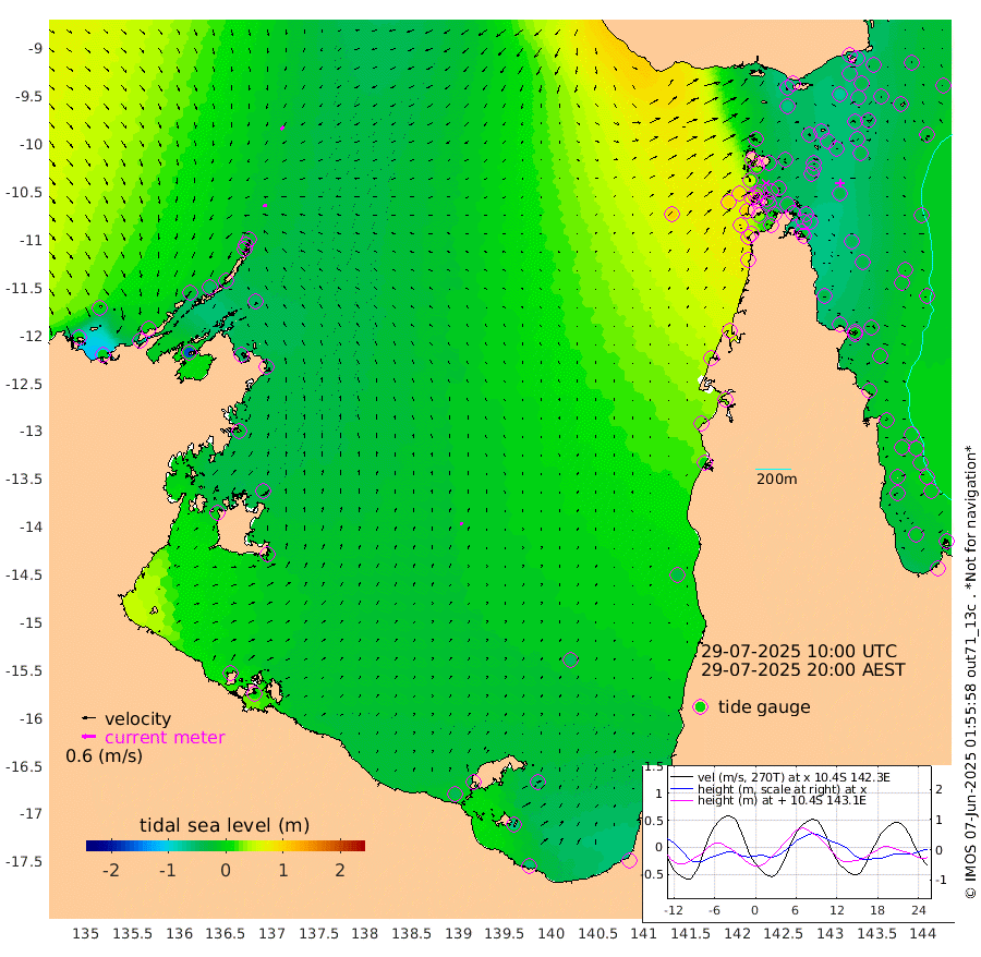 16cm/s -103T +3cm/s rms + 7cm/s -42T. ARA-GOC87 57m 13cm/s 16T +3cm/s rms + 2cm/s -2T. ARA-GOC87 60m 17cm/s -131T +2cm/s rms + 3cm/s 61T. ARA-GOC87 47m -58cm Daru -60cm Bobo Island -18cm Meer Island Barge -31cm Bramble Cay -36cm Unnamed Cay -52cm Pearce Cay -38cm Stephens Island -34cm Merrie England Shoals -47cm Mutacomal Reef -37cm Darnley Island Barge -25cm East Cay -44cm Yorke Island Barge -41cm Rennel Island -52cm Aureed Island -46cm Dungeness Reef -56cm Zagai Island -47cm Yam Island -58cm Dauan Island -56cm Saibai Island -63cm Phipi Reef -72cm Warrior Reef - West -11cm Mabuiag Island Barge -36cm Half Way Island -48cm Coconut Island -37cm Dugong Islet -43cm Poll Island -39cm Kirkcaldie Reef -31cm Suarji Island -42cm Sue Islet 52cm Hawkesbury Island -15cm Alert Patches -24cm Twin Island 33cm Badu Island -27cm St Pauls (Moa Island) 27cm Kubin (Moa Island) -3cm Ince Point 14cm Thursday Island 9cm Nardana Patches 26cm Turtle Head 43cm Round Island 62cm Goods Island 90cm Booby Island 85cm White Rocks Area 104cm Carpentaria -19cm Papou Point 101cm Bampfield Head 66cm Crab Island 75cm Red Wallis Island 36cm Packe Island -42cm Harrington Reef 62cm Herald Camp -14cm Sharp Point 15cm Red Island Point 6cm Possession Island -24cm Alpha Rock -37cm Frederick Point -46cm Wyborn Reef Light -47cm Tetley Island -24cm Triangle Reef -34cm Turtle Head Island -14cm Maclennan Cay -7cm Raine Island -38cm Mcsweeny Reef -35cm Collette Reef -19cm Shadwell Reef -36cm Hannibal Island -33cm Round Point 73cm Vrilya Point -19cm Cape Grenville -22cm Hicks Island -19cm Sir Charles Hardy Island -7cm Harvey Island -12cm Kay Reef -13cm Rocky Island -14cm Chapman Island -9cm Ham Reef -10cm Jubilee Reef -13cm Night Island -11cm Unnamed Reef No. 3 -10cm Morris Island 3cm 1st 3 Mile Opening -8cm Creech Reef -28cm Fife Island -9cm Eden Reef -5cm Stanley Island -13cm Normanby River 7cm Yabooma Island -4cm Hutchison River 5cm Elcho Island 3cm North West Crocodile Island -22cm Cape Wessel -19cm Stevens Island -51cm Guluwuru Island -14cm Hopeful Bay -12cm Auster Point -17cm Two Island Bay -59cm Cadell Strait -170cm Mallison Island -45cm Melville Bay (Gove Harbour) -45cm Truant Island -38cm Cape Arnhem -22cm Cape Grey -26cm Hawk Island -2cm Milner Bay (Groote Eylandt) -5cm Cape Beatrice 10cm West Island 13cm Centre Island -47cm Mornington Island -38cm West Wellesley Islands -48cm Bountiful Island -57cm Albert River Mouth -61cm Sweers Island -68cm Karumba -51cm Nassau River Offshore -35cm Christmas Creek 5cm Archer River 24cm Boyd Point 28cm Weipa (Humbug Point) 37cm Pennefather River 57cm Cullen Point