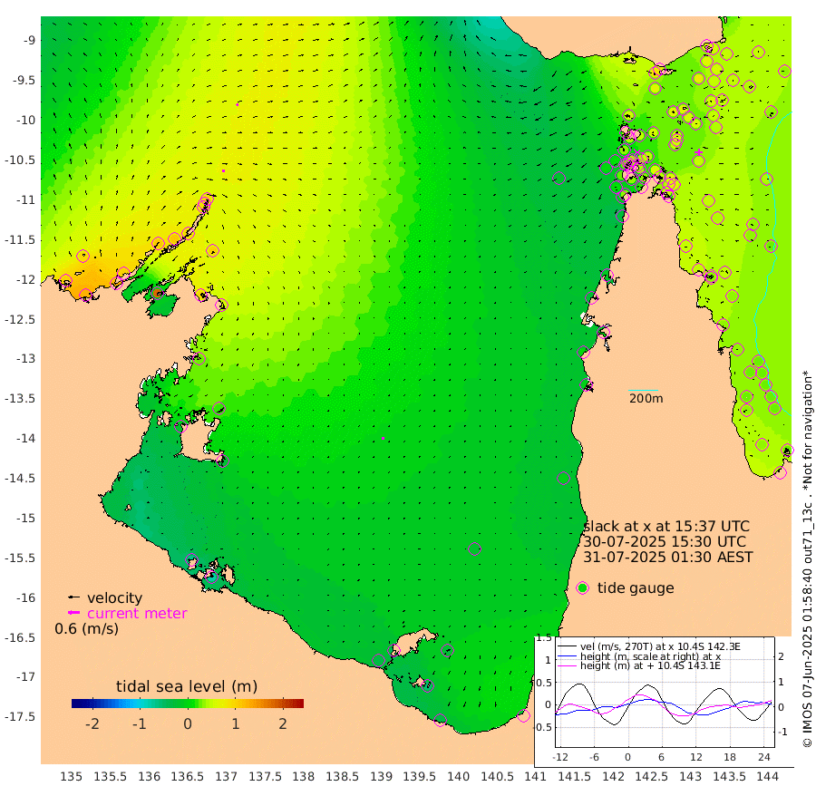 12cm/s 92T +3cm/s rms + 7cm/s -42T. ARA-GOC87 57m 13cm/s -170T +3cm/s rms + 2cm/s -2T. ARA-GOC87 60m 11cm/s 68T +2cm/s rms + 3cm/s 61T. ARA-GOC87 47m 62cm Daru 57cm Bobo Island 32cm Meer Island Barge 45cm Bramble Cay 53cm Unnamed Cay 51cm Pearce Cay 46cm Stephens Island 47cm Merrie England Shoals 61cm Mutacomal Reef 43cm Darnley Island Barge 37cm East Cay 49cm Yorke Island Barge 54cm Rennel Island 51cm Aureed Island 53cm Dungeness Reef 67cm Zagai Island 65cm Yam Island 87cm Dauan Island 80cm Saibai Island 66cm Phipi Reef 79cm Warrior Reef - West 53cm Mabuiag Island Barge 42cm Half Way Island 55cm Coconut Island 49cm Dugong Islet 56cm Poll Island 46cm Kirkcaldie Reef 55cm Suarji Island 54cm Sue Islet 33cm Hawkesbury Island 44cm Alert Patches 48cm Twin Island 39cm Badu Island 52cm St Pauls (Moa Island) 43cm Kubin (Moa Island) 43cm Ince Point 34cm Thursday Island 38cm Nardana Patches 36cm Turtle Head 36cm Round Island 25cm Goods Island 4cm Booby Island 13cm White Rocks Area -22cm Carpentaria 44cm Papou Point 23cm Bampfield Head -6cm Crab Island 11cm Red Wallis Island 34cm Packe Island 47cm Harrington Reef 32cm Herald Camp 10cm Sharp Point 19cm Red Island Point 32cm Possession Island 55cm Alpha Rock 52cm Frederick Point 66cm Wyborn Reef Light 67cm Tetley Island 39cm Triangle Reef 47cm Turtle Head Island 33cm Maclennan Cay 26cm Raine Island 49cm Mcsweeny Reef 45cm Collette Reef 35cm Shadwell Reef 46cm Hannibal Island 46cm Round Point -28cm Vrilya Point 35cm Cape Grenville 37cm Hicks Island 49cm Sir Charles Hardy Island 10cm Harvey Island 32cm Kay Reef 32cm Rocky Island 33cm Chapman Island 30cm Ham Reef 30cm Jubilee Reef 25cm Night Island 28cm Unnamed Reef No. 3 30cm Morris Island 24cm 1st 3 Mile Opening 25cm Creech Reef 37cm Fife Island 30cm Eden Reef 26cm Stanley Island 31cm Normanby River 104cm Yabooma Island 126cm Hutchison River 98cm Elcho Island 91cm North West Crocodile Island 92cm Cape Wessel 105cm Stevens Island 105cm Guluwuru Island 92cm Hopeful Bay 85cm Auster Point 88cm Two Island Bay 122cm Cadell Strait 176cm Mallison Island 93cm Melville Bay (Gove Harbour) 100cm Truant Island 65cm Cape Arnhem 30cm Cape Grey 19cm Hawk Island -22cm Milner Bay (Groote Eylandt) -25cm Cape Beatrice -66cm West Island -75cm Centre Island -40cm Mornington Island -37cm West Wellesley Islands -28cm Bountiful Island -34cm Albert River Mouth -55cm Sweers Island -41cm Karumba -21cm Nassau River Offshore -5cm Christmas Creek -7cm Archer River 2cm Boyd Point 6cm Weipa (Humbug Point) -30cm Pennefather River -8cm Cullen Point