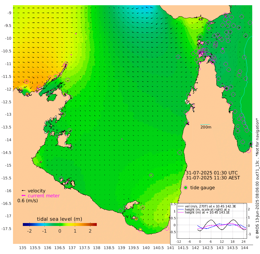 17cm/s 120T +3cm/s rms + 7cm/s -42T. ARA-GOC87 57m 12cm/s -34T +3cm/s rms + 2cm/s -2T. ARA-GOC87 60m 19cm/s 103T +2cm/s rms + 3cm/s 61T. ARA-GOC87 47m -21cm Daru -25cm Bobo Island -23cm Meer Island Barge -18cm Bramble Cay -22cm Unnamed Cay -16cm Pearce Cay -25cm Stephens Island -19cm Merrie England Shoals -21cm Mutacomal Reef -30cm Darnley Island Barge -23cm East Cay -29cm Yorke Island Barge -23cm Rennel Island -31cm Aureed Island -19cm Dungeness Reef -25cm Zagai Island -24cm Yam Island -7cm Dauan Island -22cm Saibai Island 10cm Phipi Reef -22cm Warrior Reef - West -5cm Mabuiag Island Barge -24cm Half Way Island -23cm Coconut Island -29cm Dugong Islet -20cm Poll Island -22cm Kirkcaldie Reef -25cm Suarji Island -27cm Sue Islet 22cm Hawkesbury Island -13cm Alert Patches -18cm Twin Island 24cm Badu Island -16cm St Pauls (Moa Island) 5cm Kubin (Moa Island) -10cm Ince Point -5cm Thursday Island -6cm Nardana Patches 4cm Turtle Head 9cm Round Island 13cm Goods Island 9cm Booby Island 11cm White Rocks Area -39cm Carpentaria -15cm Papou Point -7cm Bampfield Head 15cm Crab Island 4cm Red Wallis Island 4cm Packe Island -29cm Harrington Reef -2cm Herald Camp -8cm Sharp Point 10cm Red Island Point -5cm Possession Island -26cm Alpha Rock -22cm Frederick Point -21cm Wyborn Reef Light -21cm Tetley Island -21cm Triangle Reef -12cm Turtle Head Island -27cm Maclennan Cay -16cm Raine Island -24cm Mcsweeny Reef -22cm Collette Reef -19cm Shadwell Reef -23cm Hannibal Island -15cm Round Point 7cm Vrilya Point -24cm Cape Grenville -21cm Hicks Island -37cm Sir Charles Hardy Island -8cm Harvey Island -24cm Kay Reef -20cm Rocky Island -18cm Chapman Island -25cm Ham Reef -22cm Jubilee Reef -20cm Night Island -24cm Unnamed Reef No. 3 -21cm Morris Island -20cm 1st 3 Mile Opening -24cm Creech Reef -21cm Fife Island -22cm Eden Reef -22cm Stanley Island -22cm Normanby River 135cm Yabooma Island 143cm Hutchison River 127cm Elcho Island 128cm North West Crocodile Island 47cm Cape Wessel 115cm Stevens Island 25cm Guluwuru Island 104cm Hopeful Bay 78cm Auster Point 76cm Two Island Bay 116cm Cadell Strait -29cm Mallison Island 40cm Melville Bay (Gove Harbour) 37cm Truant Island 18cm Cape Arnhem 17cm Cape Grey 20cm Hawk Island 14cm Milner Bay (Groote Eylandt) 9cm Cape Beatrice -10cm West Island -9cm Centre Island 12cm Mornington Island 5cm West Wellesley Islands 30cm Bountiful Island 61cm Albert River Mouth 75cm Sweers Island 66cm Karumba 17cm Nassau River Offshore 2cm Christmas Creek 7cm Archer River -11cm Boyd Point 1cm Weipa (Humbug Point) 14cm Pennefather River -5cm Cullen Point