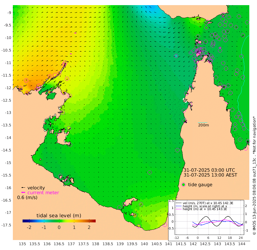 30cm/s 103T +3cm/s rms + 7cm/s -42T. ARA-GOC87 57m 9cm/s -28T +3cm/s rms + 2cm/s -2T. ARA-GOC87 60m 32cm/s 90T +2cm/s rms + 3cm/s 61T. ARA-GOC87 47m -7cm Daru -5cm Bobo Island -12cm Meer Island Barge -7cm Bramble Cay -13cm Unnamed Cay -4cm Pearce Cay -15cm Stephens Island -11cm Merrie England Shoals -13cm Mutacomal Reef -15cm Darnley Island Barge -14cm East Cay -14cm Yorke Island Barge -16cm Rennel Island -14cm Aureed Island -13cm Dungeness Reef -8cm Zagai Island -21cm Yam Island 4cm Dauan Island -3cm Saibai Island 14cm Phipi Reef -5cm Warrior Reef - West -10cm Mabuiag Island Barge -21cm Half Way Island -10cm Coconut Island -27cm Dugong Islet -16cm Poll Island -24cm Kirkcaldie Reef -22cm Suarji Island -17cm Sue Islet -30cm Hawkesbury Island -21cm Alert Patches -24cm Twin Island -8cm Badu Island -21cm St Pauls (Moa Island) -30cm Kubin (Moa Island) -26cm Ince Point -29cm Thursday Island -27cm Nardana Patches -28cm Turtle Head -31cm Round Island -33cm Goods Island -46cm Booby Island -44cm White Rocks Area -78cm Carpentaria -22cm Papou Point -56cm Bampfield Head -33cm Crab Island -49cm Red Wallis Island -38cm Packe Island -24cm Harrington Reef -59cm Herald Camp -8cm Sharp Point -21cm Red Island Point -25cm Possession Island -26cm Alpha Rock -20cm Frederick Point -8cm Wyborn Reef Light -9cm Tetley Island -10cm Triangle Reef -8cm Turtle Head Island -22cm Maclennan Cay -9cm Raine Island -12cm Mcsweeny Reef -10cm Collette Reef -9cm Shadwell Reef -10cm Hannibal Island -5cm Round Point -40cm Vrilya Point -19cm Cape Grenville -14cm Hicks Island -27cm Sir Charles Hardy Island -6cm Harvey Island -17cm Kay Reef -12cm Rocky Island -8cm Chapman Island -15cm Ham Reef -13cm Jubilee Reef -13cm Night Island -15cm Unnamed Reef No. 3 -13cm Morris Island -16cm 1st 3 Mile Opening -17cm Creech Reef -6cm Fife Island -13cm Eden Reef -18cm Stanley Island -17cm Normanby River 127cm Yabooma Island 150cm Hutchison River 129cm Elcho Island 123cm North West Crocodile Island 80cm Cape Wessel 132cm Stevens Island 83cm Guluwuru Island 117cm Hopeful Bay 98cm Auster Point 93cm Two Island Bay 149cm Cadell Strait 115cm Mallison Island 87cm Melville Bay (Gove Harbour) 87cm Truant Island 58cm Cape Arnhem 44cm Cape Grey 39cm Hawk Island 21cm Milner Bay (Groote Eylandt) 10cm Cape Beatrice -21cm West Island -23cm Centre Island 7cm Mornington Island -1cm West Wellesley Islands 23cm Bountiful Island 50cm Albert River Mouth 72cm Sweers Island 49cm Karumba 3cm Nassau River Offshore -14cm Christmas Creek -14cm Archer River -32cm Boyd Point -26cm Weipa (Humbug Point) -16cm Pennefather River -45cm Cullen Point