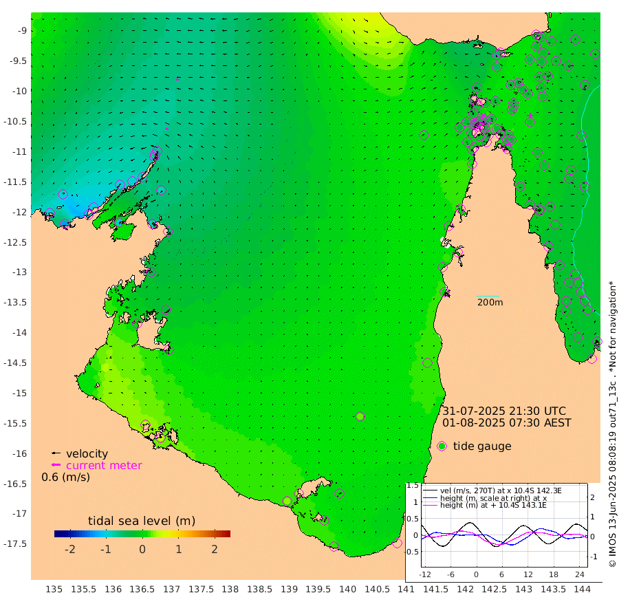 21cm/s -68T +3cm/s rms + 7cm/s -42T. ARA-GOC87 57m 4cm/s 3T +3cm/s rms + 2cm/s -2T. ARA-GOC87 60m 19cm/s -78T +2cm/s rms + 3cm/s 61T. ARA-GOC87 47m -27cm Daru -24cm Bobo Island -16cm Meer Island Barge -19cm Bramble Cay -22cm Unnamed Cay -24cm Pearce Cay -17cm Stephens Island -16cm Merrie England Shoals -20cm Mutacomal Reef -18cm Darnley Island Barge -13cm East Cay -21cm Yorke Island Barge -21cm Rennel Island -21cm Aureed Island -25cm Dungeness Reef -36cm Zagai Island -23cm Yam Island -55cm Dauan Island -49cm Saibai Island -50cm Phipi Reef -39cm Warrior Reef - West -42cm Mabuiag Island Barge -11cm Half Way Island -27cm Coconut Island -14cm Dugong Islet -24cm Poll Island -16cm Kirkcaldie Reef -34cm Suarji Island -27cm Sue Islet -28cm Hawkesbury Island -32cm Alert Patches -25cm Twin Island -51cm Badu Island -30cm St Pauls (Moa Island) -26cm Kubin (Moa Island) -27cm Ince Point -25cm Thursday Island -27cm Nardana Patches -32cm Turtle Head -24cm Round Island -33cm Goods Island -23cm Booby Island -24cm White Rocks Area 4cm Carpentaria -23cm Papou Point -31cm Bampfield Head -11cm Crab Island -12cm Red Wallis Island -15cm Packe Island -15cm Harrington Reef -5cm Herald Camp -2cm Sharp Point -19cm Red Island Point -22cm Possession Island -20cm Alpha Rock -23cm Frederick Point -29cm Wyborn Reef Light -29cm Tetley Island -18cm Triangle Reef -28cm Turtle Head Island -12cm Maclennan Cay -18cm Raine Island -22cm Mcsweeny Reef -21cm Collette Reef -19cm Shadwell Reef -21cm Hannibal Island -19cm Round Point 3cm Vrilya Point -10cm Cape Grenville -14cm Hicks Island -17cm Sir Charles Hardy Island -2cm Harvey Island -12cm Kay Reef -16cm Rocky Island -18cm Chapman Island -14cm Ham Reef -17cm Jubilee Reef -9cm Night Island -13cm Unnamed Reef No. 3 -16cm Morris Island -20cm 1st 3 Mile Opening -13cm Creech Reef -16cm Fife Island -16cm Eden Reef -10cm Stanley Island -8cm Normanby River -98cm Yabooma Island -128cm Hutchison River -101cm Elcho Island -90cm North West Crocodile Island -73cm Cape Wessel -98cm Stevens Island -92cm Guluwuru Island -84cm Hopeful Bay -82cm Auster Point -69cm Two Island Bay -112cm Cadell Strait -101cm Mallison Island -85cm Melville Bay (Gove Harbour) -89cm Truant Island -60cm Cape Arnhem -44cm Cape Grey -23cm Hawk Island 4cm Milner Bay (Groote Eylandt) 12cm Cape Beatrice 46cm West Island 53cm Centre Island 36cm Mornington Island 33cm West Wellesley Islands 15cm Bountiful Island 19cm Albert River Mouth 16cm Sweers Island 30cm Karumba 29cm Nassau River Offshore 18cm Christmas Creek 0cm Archer River -5cm Boyd Point -9cm Weipa (Humbug Point) 2cm Pennefather River 6cm Cullen Point