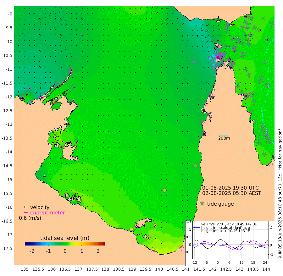 14cm/s -26T +3cm/s rms + 7cm/s -42T. ARA-GOC87 57m 3cm/s -149T +3cm/s rms + 2cm/s -2T. ARA-GOC87 60m 15cm/s -30T +2cm/s rms + 3cm/s 61T. ARA-GOC87 47m -9cm Daru -6cm Bobo Island 0cm Meer Island Barge 0cm Bramble Cay -6cm Unnamed Cay -17cm Pearce Cay -6cm Stephens Island -3cm Merrie England Shoals -5cm Mutacomal Reef -1cm Darnley Island Barge 3cm East Cay -5cm Yorke Island Barge -12cm Rennel Island -8cm Aureed Island -23cm Dungeness Reef -16cm Zagai Island -16cm Yam Island -30cm Dauan Island -13cm Saibai Island -39cm Phipi Reef -13cm Warrior Reef - West -46cm Mabuiag Island Barge -13cm Half Way Island -18cm Coconut Island -16cm Dugong Islet -24cm Poll Island -23cm Kirkcaldie Reef -41cm Suarji Island -18cm Sue Islet -88cm Hawkesbury Island -51cm Alert Patches -41cm Twin Island -87cm Badu Island -45cm St Pauls (Moa Island) -69cm Kubin (Moa Island) -53cm Ince Point -62cm Thursday Island -59cm Nardana Patches -71cm Turtle Head -72cm Round Island -87cm Goods Island -94cm Booby Island -92cm White Rocks Area -59cm Carpentaria -39cm Papou Point -95cm Bampfield Head -75cm Crab Island -79cm Red Wallis Island -65cm Packe Island -21cm Harrington Reef -68cm Herald Camp -4cm Sharp Point -61cm Red Island Point -58cm Possession Island -21cm Alpha Rock -30cm Frederick Point -14cm Wyborn Reef Light -15cm Tetley Island -2cm Triangle Reef -39cm Turtle Head Island -1cm Maclennan Cay -2cm Raine Island -8cm Mcsweeny Reef -3cm Collette Reef 0cm Shadwell Reef -2cm Hannibal Island -3cm Round Point -69cm Vrilya Point 2cm Cape Grenville -2cm Hicks Island 9cm Sir Charles Hardy Island 0cm Harvey Island 6cm Kay Reef 2cm Rocky Island 3cm Chapman Island 6cm Ham Reef 2cm Jubilee Reef 2cm Night Island 6cm Unnamed Reef No. 3 1cm Morris Island -9cm 1st 3 Mile Opening 0cm Creech Reef 6cm Fife Island 4cm Eden Reef 3cm Stanley Island 5cm Normanby River -72cm Yabooma Island -79cm Hutchison River -64cm Elcho Island -62cm North West Crocodile Island -16cm Cape Wessel -46cm Stevens Island 1cm Guluwuru Island -39cm Hopeful Bay -41cm Auster Point -32cm Two Island Bay -45cm Cadell Strait 128cm Mallison Island -10cm Melville Bay (Gove Harbour) -11cm Truant Island -1cm Cape Arnhem -5cm Cape Grey 5cm Hawk Island 11cm Milner Bay (Groote Eylandt) 16cm Cape Beatrice 27cm West Island 27cm Centre Island 42cm Mornington Island 41cm West Wellesley Islands 34cm Bountiful Island 46cm Albert River Mouth 33cm Sweers Island 41cm Karumba 30cm Nassau River Offshore 15cm Christmas Creek -19cm Archer River -27cm Boyd Point -34cm Weipa (Humbug Point) -48cm Pennefather River -47cm Cullen Point