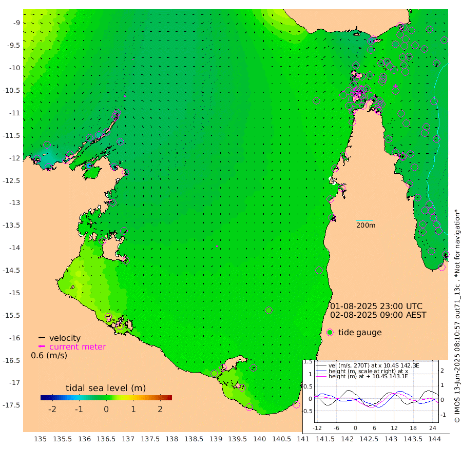 12cm/s -69T +3cm/s rms + 7cm/s -42T. ARA-GOC87 57m 13cm/s -4T +3cm/s rms + 2cm/s -2T. ARA-GOC87 60m 9cm/s -81T +2cm/s rms + 3cm/s 61T. ARA-GOC87 47m -26cm Daru -23cm Bobo Island -23cm Meer Island Barge -22cm Bramble Cay -22cm Unnamed Cay -19cm Pearce Cay -18cm Stephens Island -16cm Merrie England Shoals -17cm Mutacomal Reef -24cm Darnley Island Barge -21cm East Cay -25cm Yorke Island Barge -18cm Rennel Island -20cm Aureed Island -21cm Dungeness Reef -37cm Zagai Island -24cm Yam Island -60cm Dauan Island -62cm Saibai Island -52cm Phipi Reef -42cm Warrior Reef - West -40cm Mabuiag Island Barge -8cm Half Way Island -23cm Coconut Island -11cm Dugong Islet -18cm Poll Island -14cm Kirkcaldie Reef -26cm Suarji Island -28cm Sue Islet -23cm Hawkesbury Island -25cm Alert Patches -18cm Twin Island -42cm Badu Island -23cm St Pauls (Moa Island) -20cm Kubin (Moa Island) -21cm Ince Point -18cm Thursday Island -21cm Nardana Patches -26cm Turtle Head -19cm Round Island -25cm Goods Island -18cm Booby Island -12cm White Rocks Area -5cm Carpentaria -18cm Papou Point -29cm Bampfield Head -9cm Crab Island -8cm Red Wallis Island -10cm Packe Island -9cm Harrington Reef -11cm Herald Camp -3cm Sharp Point -17cm Red Island Point -16cm Possession Island -17cm Alpha Rock -18cm Frederick Point -24cm Wyborn Reef Light -23cm Tetley Island -24cm Triangle Reef -18cm Turtle Head Island -19cm Maclennan Cay -25cm Raine Island -22cm Mcsweeny Reef -24cm Collette Reef -27cm Shadwell Reef -23cm Hannibal Island -19cm Round Point 1cm Vrilya Point -15cm Cape Grenville -20cm Hicks Island -30cm Sir Charles Hardy Island -4cm Harvey Island -20cm Kay Reef -25cm Rocky Island -27cm Chapman Island -26cm Ham Reef -26cm Jubilee Reef -16cm Night Island -23cm Unnamed Reef No. 3 -23cm Morris Island -27cm 1st 3 Mile Opening -22cm Creech Reef -22cm Fife Island -26cm Eden Reef -20cm Stanley Island -15cm Normanby River -31cm Yabooma Island -56cm Hutchison River -38cm Elcho Island -28cm North West Crocodile Island -40cm Cape Wessel -40cm Stevens Island -75cm Guluwuru Island -34cm Hopeful Bay -38cm Auster Point -28cm Two Island Bay -60cm Cadell Strait -135cm Mallison Island -62cm Melville Bay (Gove Harbour) -64cm Truant Island -47cm Cape Arnhem -32cm Cape Grey -13cm Hawk Island 16cm Milner Bay (Groote Eylandt) 20cm Cape Beatrice 48cm West Island 54cm Centre Island 28cm Mornington Island 28cm West Wellesley Islands 13cm Bountiful Island 29cm Albert River Mouth 32cm Sweers Island 34cm Karumba 18cm Nassau River Offshore 0cm Christmas Creek -13cm Archer River -18cm Boyd Point -20cm Weipa (Humbug Point) -2cm Pennefather River -2cm Cullen Point