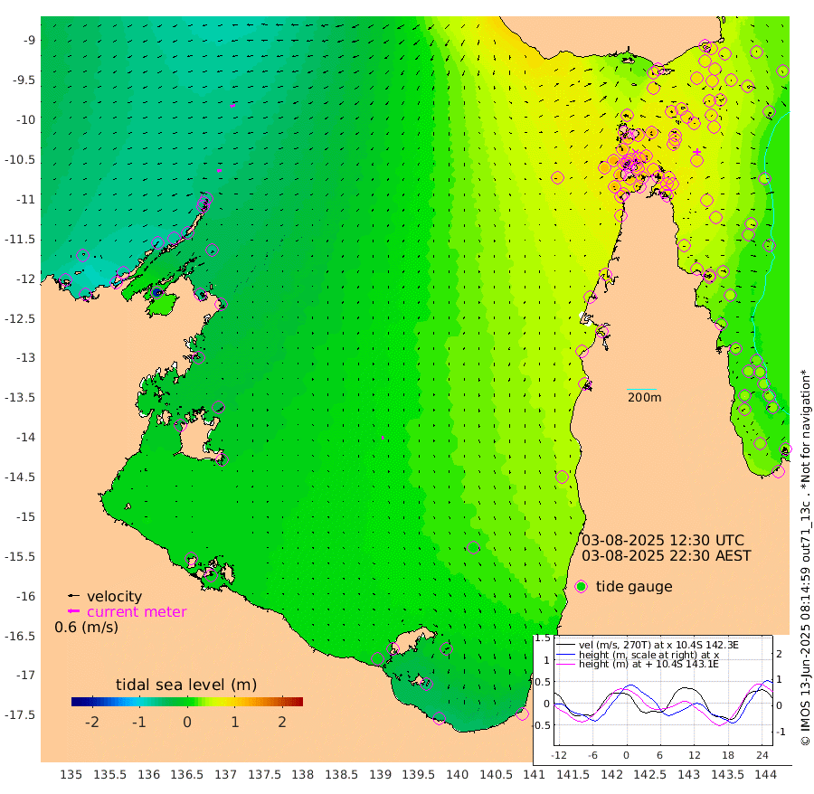 24cm/s -98T +3cm/s rms + 7cm/s -42T. ARA-GOC87 57m 16cm/s 175T +3cm/s rms + 2cm/s -2T. ARA-GOC87 60m 27cm/s -105T +2cm/s rms + 3cm/s 61T. ARA-GOC87 47m 72cm Daru 71cm Bobo Island 36cm Meer Island Barge 45cm Bramble Cay 64cm Unnamed Cay 78cm Pearce Cay 64cm Stephens Island 59cm Merrie England Shoals 73cm Mutacomal Reef 54cm Darnley Island Barge 43cm East Cay 65cm Yorke Island Barge 79cm Rennel Island 77cm Aureed Island 89cm Dungeness Reef 77cm Zagai Island 86cm Yam Island 80cm Dauan Island 69cm Saibai Island 89cm Phipi Reef 85cm Warrior Reef - West 87cm Mabuiag Island Barge 75cm Half Way Island 85cm Coconut Island 88cm Dugong Islet 92cm Poll Island 92cm Kirkcaldie Reef 118cm Suarji Island 83cm Sue Islet 117cm Hawkesbury Island 115cm Alert Patches 109cm Twin Island 107cm Badu Island 109cm St Pauls (Moa Island) 107cm Kubin (Moa Island) 108cm Ince Point 111cm Thursday Island 110cm Nardana Patches 115cm Turtle Head 104cm Round Island 116cm Goods Island 116cm Booby Island 122cm White Rocks Area 92cm Carpentaria 95cm Papou Point 123cm Bampfield Head 87cm Crab Island 113cm Red Wallis Island 111cm Packe Island 99cm Harrington Reef 113cm Herald Camp 25cm Sharp Point 103cm Red Island Point 107cm Possession Island 87cm Alpha Rock 101cm Frederick Point 76cm Wyborn Reef Light 79cm Tetley Island 44cm Triangle Reef 89cm Turtle Head Island 47cm Maclennan Cay 28cm Raine Island 65cm Mcsweeny Reef 55cm Collette Reef 36cm Shadwell Reef 55cm Hannibal Island 51cm Round Point 76cm Vrilya Point 48cm Cape Grenville 45cm Hicks Island 48cm Sir Charles Hardy Island 15cm Harvey Island 38cm Kay Reef 34cm Rocky Island 32cm Chapman Island 30cm Ham Reef 31cm Jubilee Reef 31cm Night Island 33cm Unnamed Reef No. 3 35cm Morris Island 36cm 1st 3 Mile Opening 36cm Creech Reef 32cm Fife Island 31cm Eden Reef 33cm Stanley Island 36cm Normanby River -64cm Yabooma Island -73cm Hutchison River -74cm Elcho Island -69cm North West Crocodile Island -61cm Cape Wessel -85cm Stevens Island -72cm Guluwuru Island -77cm Hopeful Bay -60cm Auster Point -72cm Two Island Bay -92cm Cadell Strait -189cm Mallison Island -63cm Melville Bay (Gove Harbour) -64cm Truant Island -46cm Cape Arnhem -30cm Cape Grey -30cm Hawk Island -32cm Milner Bay (Groote Eylandt) -21cm Cape Beatrice -7cm West Island -7cm Centre Island -9cm Mornington Island -1cm West Wellesley Islands -4cm Bountiful Island -49cm Albert River Mouth -55cm Sweers Island -35cm Karumba 14cm Nassau River Offshore 36cm Christmas Creek 49cm Archer River 60cm Boyd Point 63cm Weipa (Humbug Point) 50cm Pennefather River 71cm Cullen Point