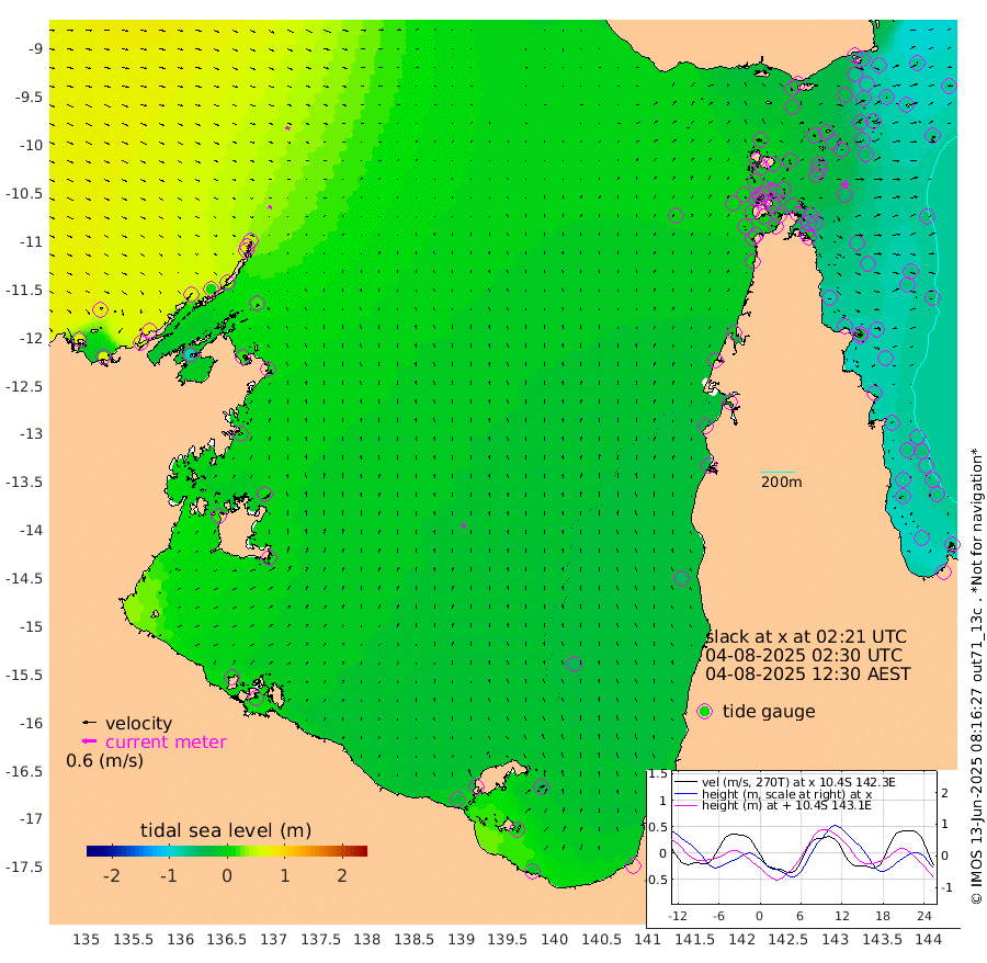 14cm/s 110T +3cm/s rms + 7cm/s -42T. ARA-GOC87 57m 21cm/s 5T +3cm/s rms + 2cm/s -2T. ARA-GOC87 60m 18cm/s 106T +2cm/s rms + 3cm/s 61T. ARA-GOC87 47m -55cm Daru -56cm Bobo Island -63cm Meer Island Barge -72cm Bramble Cay -70cm Unnamed Cay -55cm Pearce Cay -64cm Stephens Island -74cm Merrie England Shoals -64cm Mutacomal Reef -68cm Darnley Island Barge -71cm East Cay -61cm Yorke Island Barge -57cm Rennel Island -54cm Aureed Island -44cm Dungeness Reef -26cm Zagai Island -26cm Yam Island -12cm Dauan Island -27cm Saibai Island -23cm Phipi Reef -31cm Warrior Reef - West -7cm Mabuiag Island Barge -50cm Half Way Island -46cm Coconut Island -49cm Dugong Islet -29cm Poll Island -39cm Kirkcaldie Reef -21cm Suarji Island -40cm Sue Islet -10cm Hawkesbury Island -23cm Alert Patches -19cm Twin Island -5cm Badu Island -9cm St Pauls (Moa Island) -2cm Kubin (Moa Island) -11cm Ince Point -6cm Thursday Island -7cm Nardana Patches -12cm Turtle Head -7cm Round Island -9cm Goods Island -2cm Booby Island -1cm White Rocks Area -5cm Carpentaria -10cm Papou Point -12cm Bampfield Head 3cm Crab Island -1cm Red Wallis Island -7cm Packe Island -46cm Harrington Reef -13cm Herald Camp -3cm Sharp Point -16cm Red Island Point -11cm Possession Island -27cm Alpha Rock -31cm Frederick Point -52cm Wyborn Reef Light -46cm Tetley Island -56cm Triangle Reef -40cm Turtle Head Island -61cm Maclennan Cay -60cm Raine Island -62cm Mcsweeny Reef -69cm Collette Reef -66cm Shadwell Reef -75cm Hannibal Island -71cm Round Point 4cm Vrilya Point -73cm Cape Grenville -66cm Hicks Island -81cm Sir Charles Hardy Island -20cm Harvey Island -80cm Kay Reef -69cm Rocky Island -72cm Chapman Island -70cm Ham Reef -67cm Jubilee Reef -56cm Night Island -70cm Unnamed Reef No. 3 -70cm Morris Island -61cm 1st 3 Mile Opening -67cm Creech Reef -61cm Fife Island -80cm Eden Reef -74cm Stanley Island -75cm Normanby River 79cm Yabooma Island 75cm Hutchison River 74cm Elcho Island 75cm North West Crocodile Island 39cm Cape Wessel 66cm Stevens Island 4cm Guluwuru Island 51cm Hopeful Bay 52cm Auster Point 61cm Two Island Bay 63cm Cadell Strait -94cm Mallison Island 18cm Melville Bay (Gove Harbour) 21cm Truant Island 10cm Cape Arnhem 5cm Cape Grey 6cm Hawk Island 22cm Milner Bay (Groote Eylandt) 11cm Cape Beatrice 10cm West Island 10cm Centre Island -25cm Mornington Island -27cm West Wellesley Islands -37cm Bountiful Island -8cm Albert River Mouth 3cm Sweers Island -13cm Karumba -39cm Nassau River Offshore -51cm Christmas Creek -41cm Archer River -32cm Boyd Point -34cm Weipa (Humbug Point) -7cm Pennefather River -7cm Cullen Point