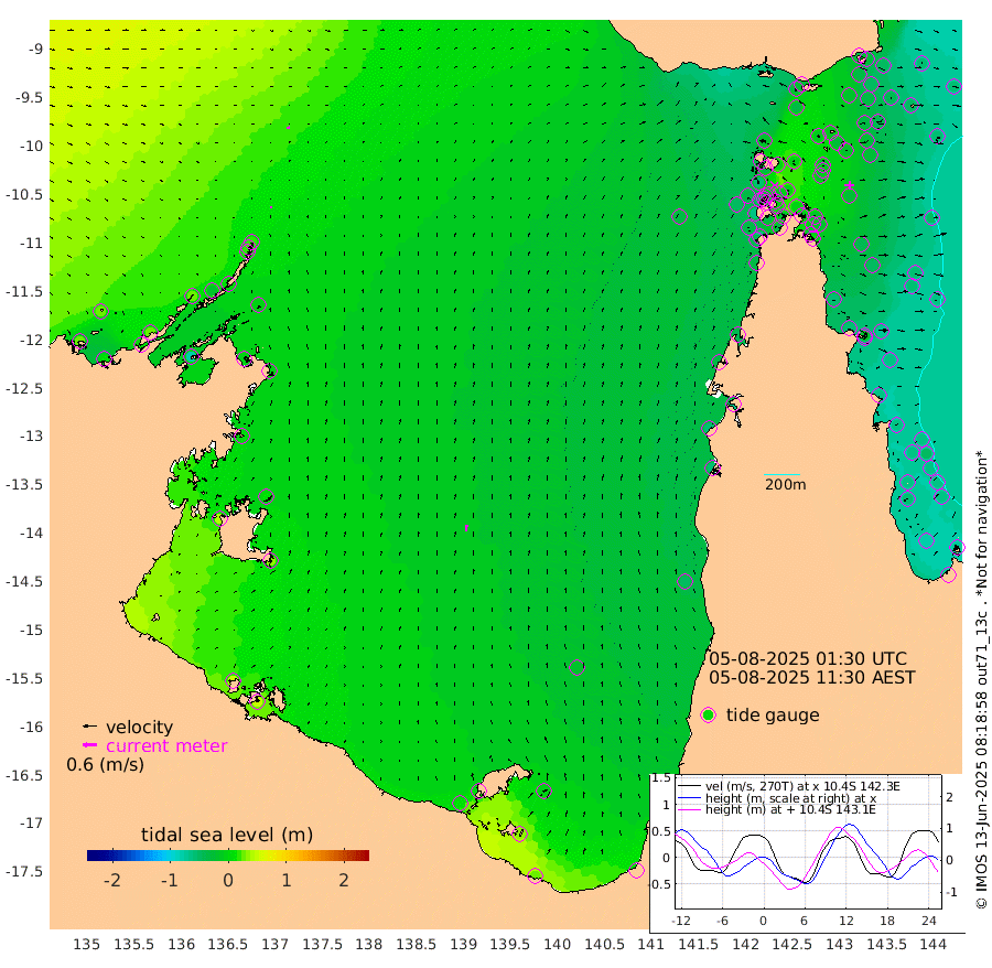 8cm/s 69T +3cm/s rms + 7cm/s -42T. ARA-GOC87 57m 26cm/s 5T +3cm/s rms + 2cm/s -2T. ARA-GOC87 60m 13cm/s 84T +2cm/s rms + 3cm/s 61T. ARA-GOC87 47m -31cm Daru -27cm Bobo Island -58cm Meer Island Barge -54cm Bramble Cay -47cm Unnamed Cay -31cm Pearce Cay -44cm Stephens Island -47cm Merrie England Shoals -31cm Mutacomal Reef -52cm Darnley Island Barge -59cm East Cay -40cm Yorke Island Barge -34cm Rennel Island -26cm Aureed Island -25cm Dungeness Reef -10cm Zagai Island -11cm Yam Island -27cm Dauan Island -28cm Saibai Island -35cm Phipi Reef -18cm Warrior Reef - West -15cm Mabuiag Island Barge -27cm Half Way Island -19cm Coconut Island -25cm Dugong Islet -8cm Poll Island -19cm Kirkcaldie Reef -2cm Suarji Island -21cm Sue Islet -53cm Hawkesbury Island -15cm Alert Patches -5cm Twin Island -42cm Badu Island -1cm St Pauls (Moa Island) -31cm Kubin (Moa Island) -13cm Ince Point -16cm Thursday Island -16cm Nardana Patches -35cm Turtle Head -43cm Round Island -49cm Goods Island -50cm Booby Island -35cm White Rocks Area -34cm Carpentaria -2cm Papou Point -65cm Bampfield Head -39cm Crab Island -36cm Red Wallis Island -34cm Packe Island -14cm Harrington Reef -62cm Herald Camp 4cm Sharp Point -30cm Red Island Point -21cm Possession Island -6cm Alpha Rock -11cm Frederick Point -24cm Wyborn Reef Light -19cm Tetley Island -47cm Triangle Reef -26cm Turtle Head Island -53cm Maclennan Cay -60cm Raine Island -40cm Mcsweeny Reef -49cm Collette Reef -60cm Shadwell Reef -53cm Hannibal Island -53cm Round Point -34cm Vrilya Point -56cm Cape Grenville -57cm Hicks Island -70cm Sir Charles Hardy Island -17cm Harvey Island -66cm Kay Reef -64cm Rocky Island -64cm Chapman Island -65cm Ham Reef -64cm Jubilee Reef -52cm Night Island -62cm Unnamed Reef No. 3 -65cm Morris Island -66cm 1st 3 Mile Opening -64cm Creech Reef -53cm Fife Island -77cm Eden Reef -68cm Stanley Island -64cm Normanby River 25cm Yabooma Island 15cm Hutchison River 23cm Elcho Island 28cm North West Crocodile Island 22cm Cape Wessel 28cm Stevens Island -16cm Guluwuru Island 14cm Hopeful Bay 20cm Auster Point 22cm Two Island Bay 13cm Cadell Strait -81cm Mallison Island -4cm Melville Bay (Gove Harbour) -1cm Truant Island -2cm Cape Arnhem 3cm Cape Grey 8cm Hawk Island 38cm Milner Bay (Groote Eylandt) 31cm Cape Beatrice 48cm West Island 48cm Centre Island 6cm Mornington Island 10cm West Wellesley Islands -6cm Bountiful Island 24cm Albert River Mouth 34cm Sweers Island 12cm Karumba -20cm Nassau River Offshore -47cm Christmas Creek -56cm Archer River -53cm Boyd Point -61cm Weipa (Humbug Point) -35cm Pennefather River -41cm Cullen Point