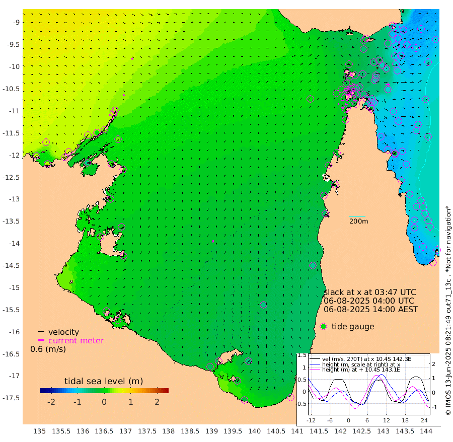 16cm/s 107T +3cm/s rms + 7cm/s -42T. ARA-GOC87 57m 24cm/s 14T +3cm/s rms + 2cm/s -2T. ARA-GOC87 60m 21cm/s 108T +2cm/s rms + 3cm/s 61T. ARA-GOC87 47m -101cm Daru -98cm Bobo Island -88cm Meer Island Barge -111cm Bramble Cay -118cm Unnamed Cay -102cm Pearce Cay -107cm Stephens Island -126cm Merrie England Shoals -116cm Mutacomal Reef -104cm Darnley Island Barge -101cm East Cay -99cm Yorke Island Barge -104cm Rennel Island -92cm Aureed Island -89cm Dungeness Reef -51cm Zagai Island -58cm Yam Island -26cm Dauan Island -30cm Saibai Island -54cm Phipi Reef -60cm Warrior Reef - West -19cm Mabuiag Island Barge -96cm Half Way Island -87cm Coconut Island -96cm Dugong Islet -69cm Poll Island -81cm Kirkcaldie Reef -53cm Suarji Island -72cm Sue Islet -33cm Hawkesbury Island -58cm Alert Patches -53cm Twin Island -19cm Badu Island -39cm St Pauls (Moa Island) -25cm Kubin (Moa Island) -37cm Ince Point -29cm Thursday Island -31cm Nardana Patches -34cm Turtle Head -31cm Round Island -25cm Goods Island -8cm Booby Island -13cm White Rocks Area 14cm Carpentaria -35cm Papou Point -21cm Bampfield Head -2cm Crab Island -9cm Red Wallis Island -31cm Packe Island -96cm Harrington Reef -35cm Herald Camp -11cm Sharp Point -35cm Red Island Point -42cm Possession Island -58cm Alpha Rock -71cm Frederick Point -100cm Wyborn Reef Light -92cm Tetley Island -79cm Triangle Reef -93cm Turtle Head Island -86cm Maclennan Cay -77cm Raine Island -103cm Mcsweeny Reef -108cm Collette Reef -93cm Shadwell Reef -119cm Hannibal Island -114cm Round Point 4cm Vrilya Point -110cm Cape Grenville -98cm Hicks Island -107cm Sir Charles Hardy Island -32cm Harvey Island -110cm Kay Reef -92cm Rocky Island -91cm Chapman Island -86cm Ham Reef -86cm Jubilee Reef -79cm Night Island -87cm Unnamed Reef No. 3 -93cm Morris Island -81cm 1st 3 Mile Opening -88cm Creech Reef -85cm Fife Island -105cm Eden Reef -100cm Stanley Island -106cm Normanby River 52cm Yabooma Island 50cm Hutchison River 55cm Elcho Island 54cm North West Crocodile Island 42cm Cape Wessel 47cm Stevens Island 12cm Guluwuru Island 33cm Hopeful Bay 43cm Auster Point 51cm Two Island Bay 48cm Cadell Strait -72cm Mallison Island 18cm Melville Bay (Gove Harbour) 25cm Truant Island 16cm Cape Arnhem 8cm Cape Grey 0cm Hawk Island 21cm Milner Bay (Groote Eylandt) 7cm Cape Beatrice 9cm West Island 8cm Centre Island -46cm Mornington Island -48cm West Wellesley Islands -62cm Bountiful Island -37cm Albert River Mouth -28cm Sweers Island -50cm Karumba -65cm Nassau River Offshore -72cm Christmas Creek -53cm Archer River -34cm Boyd Point -41cm Weipa (Humbug Point) -13cm Pennefather River -8cm Cullen Point