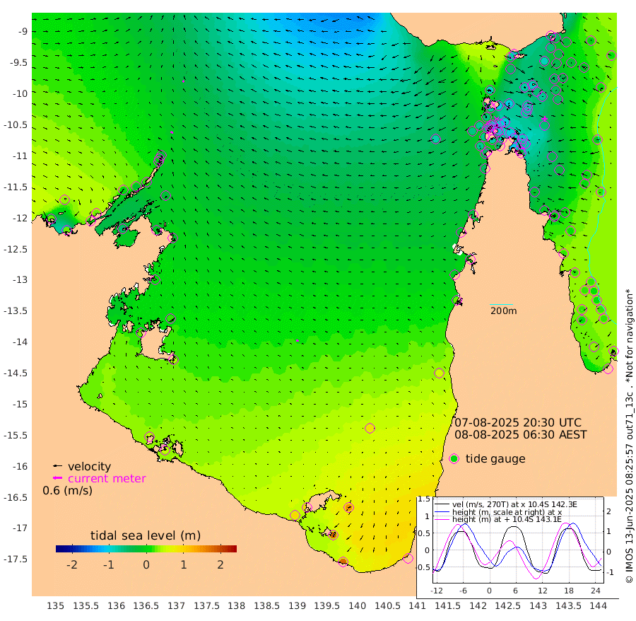 17cm/s -59T +3cm/s rms + 7cm/s -42T. ARA-GOC87 57m 16cm/s -72T +3cm/s rms + 2cm/s -2T. ARA-GOC87 60m 13cm/s -40T +2cm/s rms + 3cm/s 61T. ARA-GOC87 47m -56cm Daru -52cm Bobo Island 9cm Meer Island Barge -7cm Bramble Cay -33cm Unnamed Cay -43cm Pearce Cay -25cm Stephens Island -29cm Merrie England Shoals -58cm Mutacomal Reef -17cm Darnley Island Barge 9cm East Cay -38cm Yorke Island Barge -47cm Rennel Island -51cm Aureed Island -58cm Dungeness Reef -86cm Zagai Island -82cm Yam Island -81cm Dauan Island -83cm Saibai Island -52cm Phipi Reef -83cm Warrior Reef - West -90cm Mabuiag Island Barge -46cm Half Way Island -73cm Coconut Island -58cm Dugong Islet -84cm Poll Island -68cm Kirkcaldie Reef -100cm Suarji Island -78cm Sue Islet -67cm Hawkesbury Island -97cm Alert Patches -101cm Twin Island -77cm Badu Island -108cm St Pauls (Moa Island) -79cm Kubin (Moa Island) -95cm Ince Point -92cm Thursday Island -93cm Nardana Patches -76cm Turtle Head -64cm Round Island -63cm Goods Island -64cm Booby Island -72cm White Rocks Area -81cm Carpentaria -90cm Papou Point -74cm Bampfield Head -47cm Crab Island -73cm Red Wallis Island -76cm Packe Island -75cm Harrington Reef -49cm Herald Camp -30cm Sharp Point -56cm Red Island Point -76cm Possession Island -98cm Alpha Rock -91cm Frederick Point -76cm Wyborn Reef Light -85cm Tetley Island -14cm Triangle Reef -69cm Turtle Head Island 1cm Maclennan Cay 20cm Raine Island -37cm Mcsweeny Reef -23cm Collette Reef 4cm Shadwell Reef -19cm Hannibal Island -11cm Round Point -48cm Vrilya Point -2cm Cape Grenville 5cm Hicks Island 3cm Sir Charles Hardy Island 1cm Harvey Island 11cm Kay Reef 18cm Rocky Island 17cm Chapman Island 18cm Ham Reef 16cm Jubilee Reef 11cm Night Island 14cm Unnamed Reef No. 3 18cm Morris Island 19cm 1st 3 Mile Opening 17cm Creech Reef 9cm Fife Island 33cm Eden Reef 23cm Stanley Island 24cm Normanby River 27cm Yabooma Island 28cm Hutchison River 28cm Elcho Island 32cm North West Crocodile Island -27cm Cape Wessel 2cm Stevens Island -17cm Guluwuru Island 19cm Hopeful Bay -7cm Auster Point -2cm Two Island Bay 12cm Cadell Strait -55cm Mallison Island -14cm Melville Bay (Gove Harbour) -26cm Truant Island -16cm Cape Arnhem 8cm Cape Grey 19cm Hawk Island 30cm Milner Bay (Groote Eylandt) 39cm Cape Beatrice 45cm West Island 51cm Centre Island 104cm Mornington Island 96cm West Wellesley Islands 143cm Bountiful Island 173cm Albert River Mouth 178cm Sweers Island 179cm Karumba 90cm Nassau River Offshore 58cm Christmas Creek 23cm Archer River -11cm Boyd Point 5cm Weipa (Humbug Point) -19cm Pennefather River -36cm Cullen Point