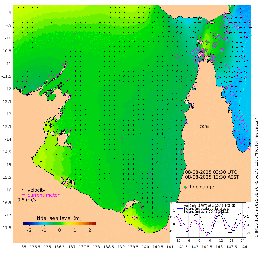 12cm/s 56T +3cm/s rms + 7cm/s -42T. ARA-GOC87 57m 31cm/s 14T +3cm/s rms + 2cm/s -2T. ARA-GOC87 60m 16cm/s 73T +2cm/s rms + 3cm/s 61T. ARA-GOC87 47m -65cm Daru -61cm Bobo Island -99cm Meer Island Barge -103cm Bramble Cay -93cm Unnamed Cay -79cm Pearce Cay -93cm Stephens Island -99cm Merrie England Shoals -73cm Mutacomal Reef -92cm Darnley Island Barge -105cm East Cay -74cm Yorke Island Barge -78cm Rennel Island -61cm Aureed Island -61cm Dungeness Reef -7cm Zagai Island -21cm Yam Island -6cm Dauan Island 10cm Saibai Island -27cm Phipi Reef -17cm Warrior Reef - West 3cm Mabuiag Island Barge -76cm Half Way Island -47cm Coconut Island -69cm Dugong Islet -32cm Poll Island -48cm Kirkcaldie Reef -9cm Suarji Island -28cm Sue Islet -80cm Hawkesbury Island -27cm Alert Patches -21cm Twin Island -49cm Badu Island -7cm St Pauls (Moa Island) -57cm Kubin (Moa Island) -25cm Ince Point -30cm Thursday Island -28cm Nardana Patches -57cm Turtle Head -66cm Round Island -79cm Goods Island -77cm Booby Island -69cm White Rocks Area -36cm Carpentaria -9cm Papou Point -86cm Bampfield Head -61cm Crab Island -68cm Red Wallis Island -71cm Packe Island -57cm Harrington Reef -96cm Herald Camp 9cm Sharp Point -44cm Red Island Point -36cm Possession Island -18cm Alpha Rock -34cm Frederick Point -57cm Wyborn Reef Light -47cm Tetley Island -78cm Triangle Reef -70cm Turtle Head Island -95cm Maclennan Cay -97cm Raine Island -81cm Mcsweeny Reef -88cm Collette Reef -95cm Shadwell Reef -99cm Hannibal Island -106cm Round Point -52cm Vrilya Point -105cm Cape Grenville -103cm Hicks Island -112cm Sir Charles Hardy Island -32cm Harvey Island -111cm Kay Reef -104cm Rocky Island -102cm Chapman Island -99cm Ham Reef -101cm Jubilee Reef -92cm Night Island -99cm Unnamed Reef No. 3 -108cm Morris Island -106cm 1st 3 Mile Opening -105cm Creech Reef -96cm Fife Island -129cm Eden Reef -116cm Stanley Island -119cm Normanby River -29cm Yabooma Island -37cm Hutchison River -21cm Elcho Island -17cm North West Crocodile Island 13cm Cape Wessel -5cm Stevens Island -10cm Guluwuru Island -17cm Hopeful Bay -1cm Auster Point -5cm Two Island Bay -19cm Cadell Strait -27cm Mallison Island -3cm Melville Bay (Gove Harbour) 1cm Truant Island 6cm Cape Arnhem 17cm Cape Grey 14cm Hawk Island 50cm Milner Bay (Groote Eylandt) 36cm Cape Beatrice 60cm West Island 58cm Centre Island 0cm Mornington Island 2cm West Wellesley Islands -9cm Bountiful Island 10cm Albert River Mouth 34cm Sweers Island -4cm Karumba -45cm Nassau River Offshore -73cm Christmas Creek -76cm Archer River -67cm Boyd Point -84cm Weipa (Humbug Point) -51cm Pennefather River -59cm Cullen Point