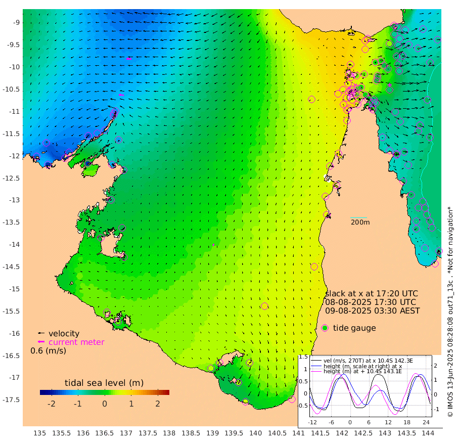 44cm/s -84T +3cm/s rms + 7cm/s -42T. ARA-GOC87 57m 20cm/s -162T +3cm/s rms + 2cm/s -2T. ARA-GOC87 60m 47cm/s -90T +2cm/s rms + 3cm/s 61T. ARA-GOC87 47m -58cm Daru -70cm Bobo Island -64cm Meer Island Barge -85cm Bramble Cay -85cm Unnamed Cay -77cm Pearce Cay -80cm Stephens Island -97cm Merrie England Shoals -74cm Mutacomal Reef -74cm Darnley Island Barge -68cm East Cay -65cm Yorke Island Barge -65cm Rennel Island -56cm Aureed Island -35cm Dungeness Reef 11cm Zagai Island 15cm Yam Island 95cm Dauan Island 83cm Saibai Island 84cm Phipi Reef 34cm Warrior Reef - West 63cm Mabuiag Island Barge -70cm Half Way Island -46cm Coconut Island -57cm Dugong Islet -19cm Poll Island -23cm Kirkcaldie Reef 23cm Suarji Island -15cm Sue Islet 72cm Hawkesbury Island 19cm Alert Patches 12cm Twin Island 73cm Badu Island 29cm St Pauls (Moa Island) 62cm Kubin (Moa Island) 40cm Ince Point 49cm Thursday Island 48cm Nardana Patches 64cm Turtle Head 71cm Round Island 72cm Goods Island 84cm Booby Island 65cm White Rocks Area 71cm Carpentaria 18cm Papou Point 80cm Bampfield Head 78cm Crab Island 83cm Red Wallis Island 73cm Packe Island -62cm Harrington Reef 106cm Herald Camp 16cm Sharp Point 55cm Red Island Point 38cm Possession Island -5cm Alpha Rock -18cm Frederick Point -70cm Wyborn Reef Light -58cm Tetley Island -43cm Triangle Reef -83cm Turtle Head Island -52cm Maclennan Cay -48cm Raine Island -73cm Mcsweeny Reef -72cm Collette Reef -56cm Shadwell Reef -87cm Hannibal Island -87cm Round Point 68cm Vrilya Point -75cm Cape Grenville -66cm Hicks Island -56cm Sir Charles Hardy Island -21cm Harvey Island -77cm Kay Reef -56cm Rocky Island -52cm Chapman Island -48cm Ham Reef -56cm Jubilee Reef -48cm Night Island -50cm Unnamed Reef No. 3 -62cm Morris Island -52cm 1st 3 Mile Opening -54cm Creech Reef -56cm Fife Island -75cm Eden Reef -67cm Stanley Island -81cm Normanby River -157cm Yabooma Island -182cm Hutchison River -156cm Elcho Island -145cm North West Crocodile Island -136cm Cape Wessel -172cm Stevens Island -139cm Guluwuru Island -144cm Hopeful Bay -142cm Auster Point -140cm Two Island Bay -177cm Cadell Strait -187cm Mallison Island -121cm Melville Bay (Gove Harbour) -130cm Truant Island -80cm Cape Arnhem -61cm Cape Grey -36cm Hawk Island -26cm Milner Bay (Groote Eylandt) -8cm Cape Beatrice 23cm West Island 28cm Centre Island 62cm Mornington Island 52cm West Wellesley Islands 62cm Bountiful Island 57cm Albert River Mouth 42cm Sweers Island 79cm Karumba 77cm Nassau River Offshore 85cm Christmas Creek 69cm Archer River 70cm Boyd Point 79cm Weipa (Humbug Point) 50cm Pennefather River 85cm Cullen Point