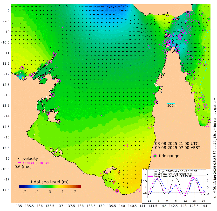 16cm/s -68T +3cm/s rms + 7cm/s -42T. ARA-GOC87 57m 17cm/s -72T +3cm/s rms + 2cm/s -2T. ARA-GOC87 60m 12cm/s -49T +2cm/s rms + 3cm/s 61T. ARA-GOC87 47m -59cm Daru -54cm Bobo Island 13cm Meer Island Barge -3cm Bramble Cay -33cm Unnamed Cay -39cm Pearce Cay -22cm Stephens Island -28cm Merrie England Shoals -61cm Mutacomal Reef -16cm Darnley Island Barge 14cm East Cay -40cm Yorke Island Barge -46cm Rennel Island -50cm Aureed Island -59cm Dungeness Reef -96cm Zagai Island -90cm Yam Island -92cm Dauan Island -99cm Saibai Island -59cm Phipi Reef -92cm Warrior Reef - West -98cm Mabuiag Island Barge -44cm Half Way Island -75cm Coconut Island -59cm Dugong Islet -86cm Poll Island -72cm Kirkcaldie Reef -102cm Suarji Island -86cm Sue Islet -58cm Hawkesbury Island -98cm Alert Patches -103cm Twin Island -72cm Badu Island -112cm St Pauls (Moa Island) -72cm Kubin (Moa Island) -95cm Ince Point -90cm Thursday Island -91cm Nardana Patches -69cm Turtle Head -55cm Round Island -51cm Goods Island -50cm Booby Island -56cm White Rocks Area -73cm Carpentaria -95cm Papou Point -59cm Bampfield Head -35cm Crab Island -59cm Red Wallis Island -64cm Packe Island -75cm Harrington Reef -36cm Herald Camp -34cm Sharp Point -53cm Red Island Point -72cm Possession Island -103cm Alpha Rock -93cm Frederick Point -79cm Wyborn Reef Light -88cm Tetley Island -10cm Triangle Reef -69cm Turtle Head Island 6cm Maclennan Cay 26cm Raine Island -36cm Mcsweeny Reef -22cm Collette Reef 6cm Shadwell Reef -18cm Hannibal Island -6cm Round Point -37cm Vrilya Point 2cm Cape Grenville 10cm Hicks Island 6cm Sir Charles Hardy Island 2cm Harvey Island 16cm Kay Reef 24cm Rocky Island 24cm Chapman Island 23cm Ham Reef 20cm Jubilee Reef 18cm Night Island 20cm Unnamed Reef No. 3 25cm Morris Island 25cm 1st 3 Mile Opening 24cm Creech Reef 16cm Fife Island 41cm Eden Reef 29cm Stanley Island 31cm Normanby River 41cm Yabooma Island 41cm Hutchison River 40cm Elcho Island 44cm North West Crocodile Island -26cm Cape Wessel 10cm Stevens Island -26cm Guluwuru Island 28cm Hopeful Bay -2cm Auster Point 3cm Two Island Bay 16cm Cadell Strait -86cm Mallison Island -17cm Melville Bay (Gove Harbour) -30cm Truant Island -20cm Cape Arnhem 2cm Cape Grey 17cm Hawk Island 28cm Milner Bay (Groote Eylandt) 37cm Cape Beatrice 42cm West Island 50cm Centre Island 104cm Mornington Island 95cm West Wellesley Islands 141cm Bountiful Island 174cm Albert River Mouth 180cm Sweers Island 182cm Karumba 94cm Nassau River Offshore 63cm Christmas Creek 31cm Archer River -4cm Boyd Point 15cm Weipa (Humbug Point) -10cm Pennefather River -26cm Cullen Point