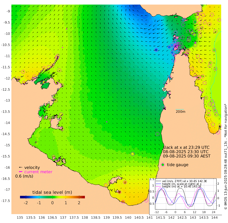 18cm/s 53T +3cm/s rms + 7cm/s -42T. ARA-GOC87 57m 21cm/s -29T +3cm/s rms + 2cm/s -2T. ARA-GOC87 60m 27cm/s 51T +2cm/s rms + 3cm/s 61T. ARA-GOC87 47m 57cm Daru 63cm Bobo Island 49cm Meer Island Barge 72cm Bramble Cay 74cm Unnamed Cay 66cm Pearce Cay 68cm Stephens Island 84cm Merrie England Shoals 67cm Mutacomal Reef 62cm Darnley Island Barge 57cm East Cay 56cm Yorke Island Barge 57cm Rennel Island 50cm Aureed Island 37cm Dungeness Reef -7cm Zagai Island -10cm Yam Island -71cm Dauan Island -67cm Saibai Island -27cm Phipi Reef -14cm Warrior Reef - West -74cm Mabuiag Island Barge 56cm Half Way Island 37cm Coconut Island 45cm Dugong Islet 13cm Poll Island 21cm Kirkcaldie Reef -19cm Suarji Island 9cm Sue Islet -119cm Hawkesbury Island -30cm Alert Patches -26cm Twin Island -112cm Badu Island -39cm St Pauls (Moa Island) -98cm Kubin (Moa Island) -60cm Ince Point -77cm Thursday Island -73cm Nardana Patches -91cm Turtle Head -97cm Round Island -122cm Goods Island -151cm Booby Island -132cm White Rocks Area -166cm Carpentaria -34cm Papou Point -150cm Bampfield Head -126cm Crab Island -147cm Red Wallis Island -111cm Packe Island 49cm Harrington Reef -132cm Herald Camp -8cm Sharp Point -71cm Red Island Point -47cm Possession Island -14cm Alpha Rock 5cm Frederick Point 52cm Wyborn Reef Light 40cm Tetley Island 30cm Triangle Reef 54cm Turtle Head Island 37cm Maclennan Cay 34cm Raine Island 60cm Mcsweeny Reef 63cm Collette Reef 46cm Shadwell Reef 76cm Hannibal Island 73cm Round Point -127cm Vrilya Point 62cm Cape Grenville 56cm Hicks Island 41cm Sir Charles Hardy Island 18cm Harvey Island 60cm Kay Reef 45cm Rocky Island 39cm Chapman Island 32cm Ham Reef 39cm Jubilee Reef 38cm Night Island 34cm Unnamed Reef No. 3 48cm Morris Island 34cm 1st 3 Mile Opening 38cm Creech Reef 45cm Fife Island 57cm Eden Reef 52cm Stanley Island 65cm Normanby River 82cm Yabooma Island 96cm Hutchison River 80cm Elcho Island 81cm North West Crocodile Island 45cm Cape Wessel 89cm Stevens Island 58cm Guluwuru Island 83cm Hopeful Bay 63cm Auster Point 58cm Two Island Bay 94cm Cadell Strait 90cm Mallison Island 59cm Melville Bay (Gove Harbour) 52cm Truant Island 37cm Cape Arnhem 52cm Cape Grey 58cm Hawk Island 63cm Milner Bay (Groote Eylandt) 60cm Cape Beatrice 57cm West Island 58cm Centre Island 96cm Mornington Island 95cm West Wellesley Islands 130cm Bountiful Island 162cm Albert River Mouth 190cm Sweers Island 159cm Karumba 60cm Nassau River Offshore 9cm Christmas Creek -38cm Archer River -76cm Boyd Point -73cm Weipa (Humbug Point) -72cm Pennefather River -120cm Cullen Point