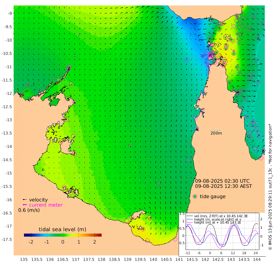 21cm/s 50T +3cm/s rms + 7cm/s -42T. ARA-GOC87 57m 29cm/s 8T +3cm/s rms + 2cm/s -2T. ARA-GOC87 60m 25cm/s 53T +2cm/s rms + 3cm/s 61T. ARA-GOC87 47m 25cm Daru 26cm Bobo Island -47cm Meer Island Barge -26cm Bramble Cay -1cm Unnamed Cay 4cm Pearce Cay -13cm Stephens Island -1cm Merrie England Shoals 25cm Mutacomal Reef -17cm Darnley Island Barge -47cm East Cay 5cm Yorke Island Barge 5cm Rennel Island 15cm Aureed Island 14cm Dungeness Reef 47cm Zagai Island 31cm Yam Island 10cm Dauan Island 28cm Saibai Island 14cm Phipi Reef 37cm Warrior Reef - West 8cm Mabuiag Island Barge 3cm Half Way Island 31cm Coconut Island 9cm Dugong Islet 31cm Poll Island 20cm Kirkcaldie Reef 39cm Suarji Island 36cm Sue Islet -116cm Hawkesbury Island 14cm Alert Patches 21cm Twin Island -79cm Badu Island 29cm St Pauls (Moa Island) -76cm Kubin (Moa Island) -9cm Ince Point -30cm Thursday Island -24cm Nardana Patches -70cm Turtle Head -85cm Round Island -122cm Goods Island -145cm Booby Island -126cm White Rocks Area -116cm Carpentaria 20cm Papou Point -142cm Bampfield Head -120cm Crab Island -132cm Red Wallis Island -100cm Packe Island 28cm Harrington Reef -139cm Herald Camp 23cm Sharp Point -53cm Red Island Point -18cm Possession Island 32cm Alpha Rock 27cm Frederick Point 34cm Wyborn Reef Light 38cm Tetley Island -33cm Triangle Reef 16cm Turtle Head Island -49cm Maclennan Cay -64cm Raine Island -1cm Mcsweeny Reef -9cm Collette Reef -40cm Shadwell Reef -11cm Hannibal Island -28cm Round Point -115cm Vrilya Point -36cm Cape Grenville -43cm Hicks Island -58cm Sir Charles Hardy Island -12cm Harvey Island -50cm Kay Reef -58cm Rocky Island -62cm Chapman Island -63cm Ham Reef -59cm Jubilee Reef -53cm Night Island -62cm Unnamed Reef No. 3 -62cm Morris Island -70cm 1st 3 Mile Opening -65cm Creech Reef -51cm Fife Island -81cm Eden Reef -67cm Stanley Island -64cm Normanby River -29cm Yabooma Island -29cm Hutchison River -22cm Elcho Island -19cm North West Crocodile Island 19cm Cape Wessel 12cm Stevens Island 21cm Guluwuru Island -2cm Hopeful Bay 10cm Auster Point -1cm Two Island Bay 2cm Cadell Strait 80cm Mallison Island 25cm Melville Bay (Gove Harbour) 26cm Truant Island 26cm Cape Arnhem 42cm Cape Grey 44cm Hawk Island 70cm Milner Bay (Groote Eylandt) 57cm Cape Beatrice 77cm West Island 75cm Centre Island 48cm Mornington Island 48cm West Wellesley Islands 51cm Bountiful Island 69cm Albert River Mouth 107cm Sweers Island 60cm Karumba -9cm Nassau River Offshore -55cm Christmas Creek -85cm Archer River -94cm Boyd Point -113cm Weipa (Humbug Point) -82cm Pennefather River -115cm Cullen Point