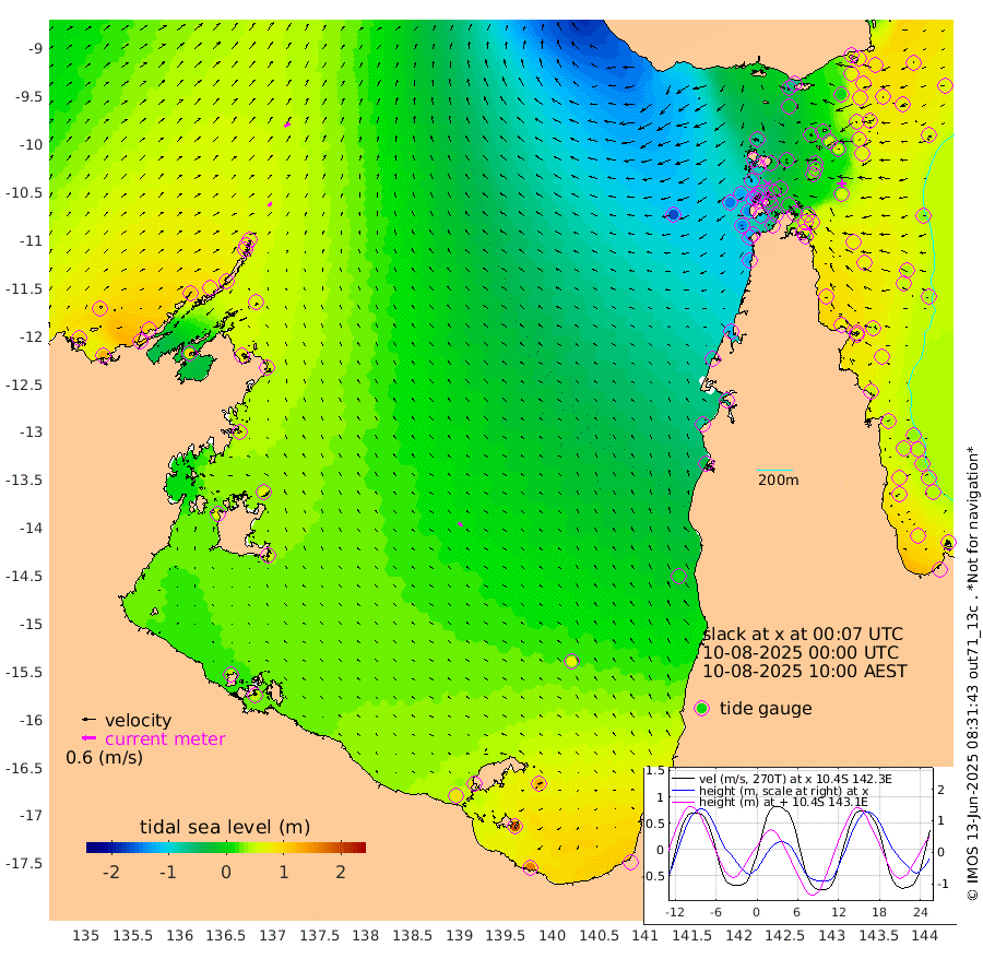 20cm/s 66T +3cm/s rms + 7cm/s -42T. ARA-GOC87 57m 20cm/s -34T +3cm/s rms + 2cm/s -2T. ARA-GOC87 60m 29cm/s 57T +2cm/s rms + 3cm/s 61T. ARA-GOC87 47m 67cm Daru 72cm Bobo Island 56cm Meer Island Barge 79cm Bramble Cay 81cm Unnamed Cay 78cm Pearce Cay 77cm Stephens Island 90cm Merrie England Shoals 73cm Mutacomal Reef 70cm Darnley Island Barge 64cm East Cay 64cm Yorke Island Barge 66cm Rennel Island 60cm Aureed Island 49cm Dungeness Reef 2cm Zagai Island -2cm Yam Island -59cm Dauan Island -63cm Saibai Island -13cm Phipi Reef -3cm Warrior Reef - West -69cm Mabuiag Island Barge 65cm Half Way Island 46cm Coconut Island 54cm Dugong Islet 23cm Poll Island 29cm Kirkcaldie Reef -8cm Suarji Island 15cm Sue Islet -111cm Hawkesbury Island -20cm Alert Patches -17cm Twin Island -103cm Badu Island -29cm St Pauls (Moa Island) -87cm Kubin (Moa Island) -51cm Ince Point -68cm Thursday Island -64cm Nardana Patches -81cm Turtle Head -85cm Round Island -112cm Goods Island -144cm Booby Island -125cm White Rocks Area -168cm Carpentaria -26cm Papou Point -139cm Bampfield Head -120cm Crab Island -140cm Red Wallis Island -100cm Packe Island 58cm Harrington Reef -121cm Herald Camp -8cm Sharp Point -66cm Red Island Point -36cm Possession Island -10cm Alpha Rock 14cm Frederick Point 60cm Wyborn Reef Light 48cm Tetley Island 37cm Triangle Reef 67cm Turtle Head Island 44cm Maclennan Cay 40cm Raine Island 68cm Mcsweeny Reef 70cm Collette Reef 52cm Shadwell Reef 83cm Hannibal Island 81cm Round Point -125cm Vrilya Point 68cm Cape Grenville 64cm Hicks Island 46cm Sir Charles Hardy Island 21cm Harvey Island 64cm Kay Reef 51cm Rocky Island 44cm Chapman Island 36cm Ham Reef 44cm Jubilee Reef 44cm Night Island 37cm Unnamed Reef No. 3 54cm Morris Island 41cm 1st 3 Mile Opening 45cm Creech Reef 53cm Fife Island 63cm Eden Reef 57cm Stanley Island 70cm Normanby River 103cm Yabooma Island 122cm Hutchison River 101cm Elcho Island 99cm North West Crocodile Island 56cm Cape Wessel 106cm Stevens Island 70cm Guluwuru Island 98cm Hopeful Bay 79cm Auster Point 75cm Two Island Bay 117cm Cadell Strait 87cm Mallison Island 73cm Melville Bay (Gove Harbour) 67cm Truant Island 47cm Cape Arnhem 56cm Cape Grey 62cm Hawk Island 61cm Milner Bay (Groote Eylandt) 57cm Cape Beatrice 47cm West Island 48cm Centre Island 94cm Mornington Island 90cm West Wellesley Islands 126cm Bountiful Island 159cm Albert River Mouth 190cm Sweers Island 158cm Karumba 60cm Nassau River Offshore 11cm Christmas Creek -35cm Archer River -72cm Boyd Point -68cm Weipa (Humbug Point) -68cm Pennefather River -117cm Cullen Point