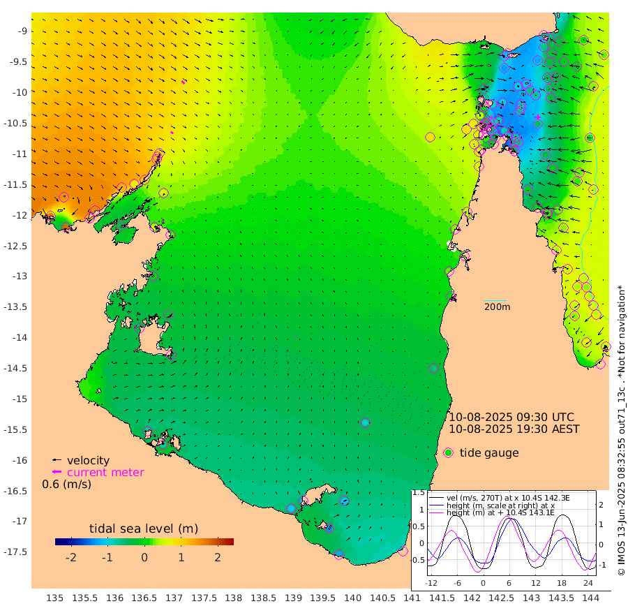 21cm/s 136T +3cm/s rms + 7cm/s -42T. ARA-GOC87 57m 5cm/s 46T +3cm/s rms + 2cm/s -2T. ARA-GOC87 60m 25cm/s 134T +2cm/s rms + 3cm/s 61T. ARA-GOC87 47m -70cm Daru -54cm Bobo Island 31cm Meer Island Barge 9cm Bramble Cay -28cm Unnamed Cay -27cm Pearce Cay -12cm Stephens Island -23cm Merrie England Shoals -62cm Mutacomal Reef -8cm Darnley Island Barge 29cm East Cay -36cm Yorke Island Barge -40cm Rennel Island -46cm Aureed Island -64cm Dungeness Reef -106cm Zagai Island -98cm Yam Island -117cm Dauan Island -114cm Saibai Island -129cm Phipi Reef -121cm Warrior Reef - West -69cm Mabuiag Island Barge -34cm Half Way Island -69cm Coconut Island -48cm Dugong Islet -81cm Poll Island -74cm Kirkcaldie Reef -99cm Suarji Island -84cm Sue Islet 47cm Hawkesbury Island -76cm Alert Patches -77cm Twin Island 14cm Badu Island -93cm St Pauls (Moa Island) 5cm Kubin (Moa Island) -55cm Ince Point -33cm Thursday Island -40cm Nardana Patches -5cm Turtle Head 10cm Round Island 56cm Goods Island 86cm Booby Island 79cm White Rocks Area 87cm Carpentaria -66cm Papou Point 81cm Bampfield Head 61cm Crab Island 70cm Red Wallis Island 19cm Packe Island -62cm Harrington Reef 41cm Herald Camp -47cm Sharp Point -3cm Red Island Point -43cm Possession Island -78cm Alpha Rock -75cm Frederick Point -65cm Wyborn Reef Light -74cm Tetley Island 9cm Triangle Reef -38cm Turtle Head Island 28cm Maclennan Cay 48cm Raine Island -26cm Mcsweeny Reef -18cm Collette Reef 16cm Shadwell Reef -13cm Hannibal Island 9cm Round Point 67cm Vrilya Point 15cm Cape Grenville 22cm Hicks Island 30cm Sir Charles Hardy Island 4cm Harvey Island 36cm Kay Reef 41cm Rocky Island 47cm Chapman Island 48cm Ham Reef 45cm Jubilee Reef 32cm Night Island 47cm Unnamed Reef No. 3 47cm Morris Island 54cm 1st 3 Mile Opening 47cm Creech Reef 32cm Fife Island 68cm Eden Reef 51cm Stanley Island 56cm Normanby River 163cm Yabooma Island 176cm Hutchison River 157cm Elcho Island 147cm North West Crocodile Island 96cm Cape Wessel 122cm Stevens Island 64cm Guluwuru Island 116cm Hopeful Bay 108cm Auster Point 114cm Two Island Bay 125cm Cadell Strait -43cm Mallison Island 54cm Melville Bay (Gove Harbour) 61cm Truant Island 25cm Cape Arnhem 5cm Cape Grey -21cm Hawk Island -34cm Milner Bay (Groote Eylandt) -42cm Cape Beatrice -72cm West Island -74cm Centre Island -116cm Mornington Island -107cm West Wellesley Islands -112cm Bountiful Island -127cm Albert River Mouth -141cm Sweers Island -140cm Karumba -88cm Nassau River Offshore -54cm Christmas Creek 6cm Archer River 24cm Boyd Point 34cm Weipa (Humbug Point) 31cm Pennefather River 50cm Cullen Point