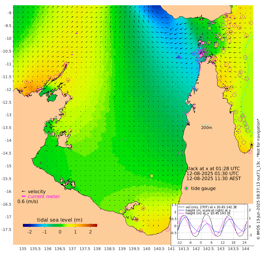 29cm/s 86T +3cm/s rms + 7cm/s -42T. ARA-GOC87 57m 14cm/s -38T +3cm/s rms + 2cm/s -2T. ARA-GOC87 60m 34cm/s 70T +2cm/s rms + 3cm/s 61T. ARA-GOC87 47m 82cm Daru 87cm Bobo Island 56cm Meer Island Barge 76cm Bramble Cay 82cm Unnamed Cay 90cm Pearce Cay 83cm Stephens Island 86cm Merrie England Shoals 77cm Mutacomal Reef 74cm Darnley Island Barge 61cm East Cay 74cm Yorke Island Barge 75cm Rennel Island 76cm Aureed Island 68cm Dungeness Reef 33cm Zagai Island 22cm Yam Island -13cm Dauan Island -28cm Saibai Island 25cm Phipi Reef 33cm Warrior Reef - West -42cm Mabuiag Island Barge 73cm Half Way Island 65cm Coconut Island 65cm Dugong Islet 46cm Poll Island 45cm Kirkcaldie Reef 23cm Suarji Island 33cm Sue Islet -98cm Hawkesbury Island 5cm Alert Patches 9cm Twin Island -77cm Badu Island 4cm St Pauls (Moa Island) -61cm Kubin (Moa Island) -24cm Ince Point -43cm Thursday Island -38cm Nardana Patches -56cm Turtle Head -66cm Round Island -92cm Goods Island -128cm Booby Island -112cm White Rocks Area -157cm Carpentaria -2cm Papou Point -119cm Bampfield Head -107cm Crab Island -125cm Red Wallis Island -77cm Packe Island 73cm Harrington Reef -107cm Herald Camp -1cm Sharp Point -55cm Red Island Point -14cm Possession Island 9cm Alpha Rock 36cm Frederick Point 74cm Wyborn Reef Light 64cm Tetley Island 41cm Triangle Reef 83cm Turtle Head Island 44cm Maclennan Cay 38cm Raine Island 76cm Mcsweeny Reef 72cm Collette Reef 51cm Shadwell Reef 83cm Hannibal Island 79cm Round Point -116cm Vrilya Point 62cm Cape Grenville 63cm Hicks Island 43cm Sir Charles Hardy Island 20cm Harvey Island 52cm Kay Reef 46cm Rocky Island 38cm Chapman Island 30cm Ham Reef 40cm Jubilee Reef 44cm Night Island 32cm Unnamed Reef No. 3 49cm Morris Island 41cm 1st 3 Mile Opening 41cm Creech Reef 55cm Fife Island 55cm Eden Reef 47cm Stanley Island 59cm Normanby River 114cm Yabooma Island 144cm Hutchison River 116cm Elcho Island 108cm North West Crocodile Island 77cm Cape Wessel 123cm Stevens Island 100cm Guluwuru Island 109cm Hopeful Bay 98cm Auster Point 95cm Two Island Bay 149cm Cadell Strait 121cm Mallison Island 101cm Melville Bay (Gove Harbour) 100cm Truant Island 71cm Cape Arnhem 64cm Cape Grey 65cm Hawk Island 50cm Milner Bay (Groote Eylandt) 43cm Cape Beatrice 19cm West Island 19cm Centre Island 69cm Mornington Island 62cm West Wellesley Islands 91cm Bountiful Island 123cm Albert River Mouth 152cm Sweers Island 121cm Karumba 43cm Nassau River Offshore 4cm Christmas Creek -37cm Archer River -66cm Boyd Point -63cm Weipa (Humbug Point) -62cm Pennefather River -108cm Cullen Point