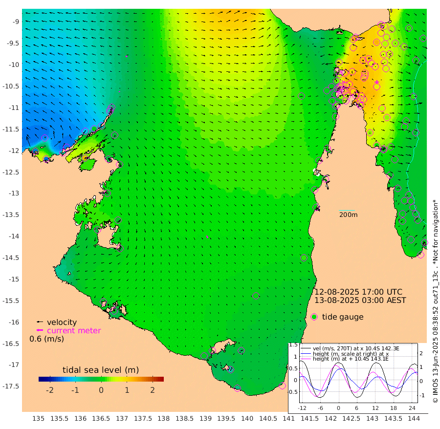 7cm/s -33T +3cm/s rms + 7cm/s -42T. ARA-GOC87 57m 24cm/s 161T +3cm/s rms + 2cm/s -2T. ARA-GOC87 60m 15cm/s -67T +2cm/s rms + 3cm/s 61T. ARA-GOC87 47m 82cm Daru 65cm Bobo Island 2cm Meer Island Barge 17cm Bramble Cay 49cm Unnamed Cay 42cm Pearce Cay 37cm Stephens Island 43cm Merrie England Shoals 76cm Mutacomal Reef 36cm Darnley Island Barge 1cm East Cay 58cm Yorke Island Barge 58cm Rennel Island 58cm Aureed Island 73cm Dungeness Reef 112cm Zagai Island 114cm Yam Island 125cm Dauan Island 130cm Saibai Island 102cm Phipi Reef 124cm Warrior Reef - West 91cm Mabuiag Island Barge 58cm Half Way Island 77cm Coconut Island 73cm Dugong Islet 91cm Poll Island 93cm Kirkcaldie Reef 91cm Suarji Island 101cm Sue Islet 27cm Hawkesbury Island 86cm Alert Patches 93cm Twin Island 38cm Badu Island 106cm St Pauls (Moa Island) 49cm Kubin (Moa Island) 81cm Ince Point 67cm Thursday Island 72cm Nardana Patches 46cm Turtle Head 28cm Round Island 10cm Goods Island -4cm Booby Island -7cm White Rocks Area 13cm Carpentaria 89cm Papou Point -10cm Bampfield Head 4cm Crab Island 10cm Red Wallis Island 36cm Packe Island 76cm Harrington Reef 24cm Herald Camp 44cm Sharp Point 42cm Red Island Point 55cm Possession Island 97cm Alpha Rock 90cm Frederick Point 79cm Wyborn Reef Light 88cm Tetley Island 16cm Triangle Reef 62cm Turtle Head Island 7cm Maclennan Cay -16cm Raine Island 46cm Mcsweeny Reef 36cm Collette Reef 9cm Shadwell Reef 33cm Hannibal Island 13cm Round Point 6cm Vrilya Point 11cm Cape Grenville 6cm Hicks Island 15cm Sir Charles Hardy Island 5cm Harvey Island -4cm Kay Reef -11cm Rocky Island -19cm Chapman Island -12cm Ham Reef -7cm Jubilee Reef -6cm Night Island -12cm Unnamed Reef No. 3 -14cm Morris Island -17cm 1st 3 Mile Opening -11cm Creech Reef -6cm Fife Island -27cm Eden Reef -14cm Stanley Island -18cm Normanby River -148cm Yabooma Island -156cm Hutchison River -145cm Elcho Island -138cm North West Crocodile Island -58cm Cape Wessel -110cm Stevens Island -13cm Guluwuru Island -115cm Hopeful Bay -89cm Auster Point -78cm Two Island Bay -89cm Cadell Strait 125cm Mallison Island -32cm Melville Bay (Gove Harbour) -29cm Truant Island -12cm Cape Arnhem -20cm Cape Grey -22cm Hawk Island -33cm Milner Bay (Groote Eylandt) -24cm Cape Beatrice -15cm West Island -22cm Centre Island -12cm Mornington Island -12cm West Wellesley Islands -44cm Bountiful Island -62cm Albert River Mouth -91cm Sweers Island -57cm Karumba 1cm Nassau River Offshore 18cm Christmas Creek 1cm Archer River 15cm Boyd Point -2cm Weipa (Humbug Point) 3cm Pennefather River 10cm Cullen Point