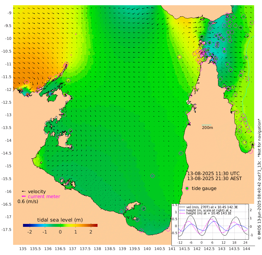 10cm/s -150T +3cm/s rms + 7cm/s -42T. ARA-GOC87 57m 6cm/s -44T +3cm/s rms + 2cm/s -2T. ARA-GOC87 60m 11cm/s 173T +2cm/s rms + 3cm/s 61T. ARA-GOC87 47m -34cm Daru -22cm Bobo Island 21cm Meer Island Barge 14cm Bramble Cay -7cm Unnamed Cay 0cm Pearce Cay 0cm Stephens Island -7cm Merrie England Shoals -25cm Mutacomal Reef -3cm Darnley Island Barge 27cm East Cay -17cm Yorke Island Barge -9cm Rennel Island -16cm Aureed Island -22cm Dungeness Reef -52cm Zagai Island -42cm Yam Island -46cm Dauan Island -51cm Saibai Island -49cm Phipi Reef -56cm Warrior Reef - West -12cm Mabuiag Island Barge -14cm Half Way Island -28cm Coconut Island -17cm Dugong Islet -31cm Poll Island -33cm Kirkcaldie Reef -25cm Suarji Island -40cm Sue Islet 82cm Hawkesbury Island -16cm Alert Patches -21cm Twin Island 54cm Badu Island -32cm St Pauls (Moa Island) 43cm Kubin (Moa Island) -3cm Ince Point 12cm Thursday Island 8cm Nardana Patches 38cm Turtle Head 54cm Round Island 82cm Goods Island 96cm Booby Island 103cm White Rocks Area 65cm Carpentaria -18cm Papou Point 105cm Bampfield Head 63cm Crab Island 84cm Red Wallis Island 53cm Packe Island -22cm Harrington Reef 75cm Herald Camp -27cm Sharp Point 35cm Red Island Point 10cm Possession Island -28cm Alpha Rock -24cm Frederick Point -24cm Wyborn Reef Light -28cm Tetley Island 15cm Triangle Reef -10cm Turtle Head Island 25cm Maclennan Cay 35cm Raine Island -7cm Mcsweeny Reef -3cm Collette Reef 14cm Shadwell Reef -2cm Hannibal Island 19cm Round Point 50cm Vrilya Point 17cm Cape Grenville 22cm Hicks Island 28cm Sir Charles Hardy Island 4cm Harvey Island 30cm Kay Reef 34cm Rocky Island 41cm Chapman Island 37cm Ham Reef 32cm Jubilee Reef 23cm Night Island 36cm Unnamed Reef No. 3 36cm Morris Island 38cm 1st 3 Mile Opening 34cm Creech Reef 26cm Fife Island 47cm Eden Reef 35cm Stanley Island 43cm Normanby River 173cm Yabooma Island 183cm Hutchison River 160cm Elcho Island 156cm North West Crocodile Island 83cm Cape Wessel 120cm Stevens Island 33cm Guluwuru Island 119cm Hopeful Bay 102cm Auster Point 97cm Two Island Bay 107cm Cadell Strait -127cm Mallison Island 41cm Melville Bay (Gove Harbour) 44cm Truant Island 14cm Cape Arnhem 7cm Cape Grey -6cm Hawk Island -20cm Milner Bay (Groote Eylandt) -23cm Cape Beatrice -47cm West Island -50cm Centre Island -65cm Mornington Island -56cm West Wellesley Islands -34cm Bountiful Island -52cm Albert River Mouth -55cm Sweers Island -56cm Karumba -44cm Nassau River Offshore -24cm Christmas Creek 16cm Archer River 27cm Boyd Point 43cm Weipa (Humbug Point) 16cm Pennefather River 46cm Cullen Point