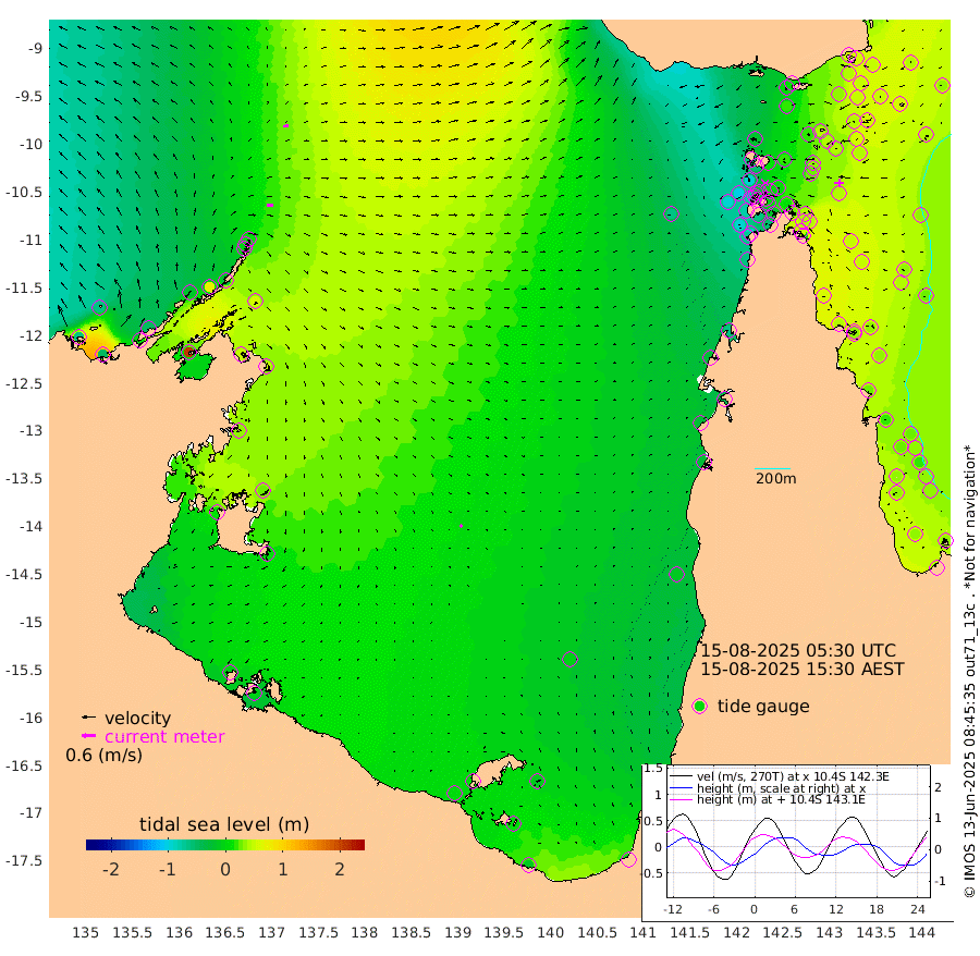 27cm/s 92T +3cm/s rms + 7cm/s -42T. ARA-GOC87 57m 9cm/s 138T +3cm/s rms + 2cm/s -2T. ARA-GOC87 60m 22cm/s 77T +2cm/s rms + 3cm/s 61T. ARA-GOC87 47m 54cm Daru 56cm Bobo Island 42cm Meer Island Barge 42cm Bramble Cay 48cm Unnamed Cay 48cm Pearce Cay 51cm Stephens Island 47cm Merrie England Shoals 41cm Mutacomal Reef 57cm Darnley Island Barge 35cm East Cay 57cm Yorke Island Barge 41cm Rennel Island 53cm Aureed Island 41cm Dungeness Reef 40cm Zagai Island 19cm Yam Island 10cm Dauan Island 12cm Saibai Island 18cm Phipi Reef 35cm Warrior Reef - West -20cm Mabuiag Island Barge 44cm Half Way Island 44cm Coconut Island 40cm Dugong Islet 29cm Poll Island 29cm Kirkcaldie Reef 16cm Suarji Island 36cm Sue Islet -91cm Hawkesbury Island 4cm Alert Patches 7cm Twin Island -63cm Badu Island 9cm St Pauls (Moa Island) -53cm Kubin (Moa Island) -16cm Ince Point -30cm Thursday Island -26cm Nardana Patches -46cm Turtle Head -61cm Round Island -77cm Goods Island -91cm Booby Island -98cm White Rocks Area -63cm Carpentaria 0cm Papou Point -81cm Bampfield Head -75cm Crab Island -93cm Red Wallis Island -66cm Packe Island 43cm Harrington Reef -86cm Herald Camp 6cm Sharp Point -54cm Red Island Point -15cm Possession Island 11cm Alpha Rock 23cm Frederick Point 45cm Wyborn Reef Light 40cm Tetley Island 31cm Triangle Reef 49cm Turtle Head Island 30cm Maclennan Cay 25cm Raine Island 49cm Mcsweeny Reef 47cm Collette Reef 38cm Shadwell Reef 54cm Hannibal Island 39cm Round Point -64cm Vrilya Point 36cm Cape Grenville 36cm Hicks Island 33cm Sir Charles Hardy Island 13cm Harvey Island 31cm Kay Reef 28cm Rocky Island 21cm Chapman Island 23cm Ham Reef 30cm Jubilee Reef 30cm Night Island 22cm Unnamed Reef No. 3 30cm Morris Island 32cm 1st 3 Mile Opening 31cm Creech Reef 34cm Fife Island 35cm Eden Reef 31cm Stanley Island 28cm Normanby River -66cm Yabooma Island -47cm Hutchison River -50cm Elcho Island -62cm North West Crocodile Island 6cm Cape Wessel -21cm Stevens Island 68cm Guluwuru Island -26cm Hopeful Bay -5cm Auster Point -4cm Two Island Bay 11cm Cadell Strait 203cm Mallison Island 49cm Melville Bay (Gove Harbour) 53cm Truant Island 49cm Cape Arnhem 35cm Cape Grey 27cm Hawk Island 14cm Milner Bay (Groote Eylandt) 6cm Cape Beatrice -3cm West Island -2cm Centre Island 10cm Mornington Island 3cm West Wellesley Islands -8cm Bountiful Island -13cm Albert River Mouth 5cm Sweers Island -17cm Karumba -6cm Nassau River Offshore -11cm Christmas Creek -28cm Archer River -29cm Boyd Point -43cm Weipa (Humbug Point) -27cm Pennefather River -60cm Cullen Point