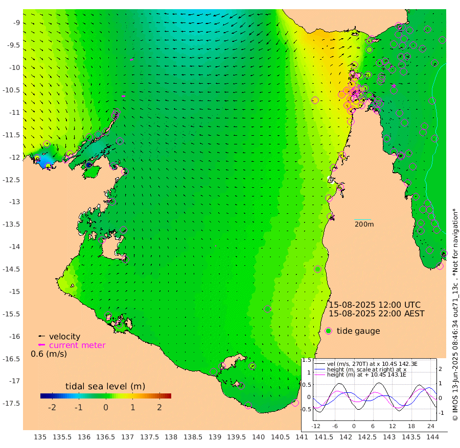 30cm/s -94T +3cm/s rms + 7cm/s -42T. ARA-GOC87 57m 6cm/s -84T +3cm/s rms + 2cm/s -2T. ARA-GOC87 60m 27cm/s -106T +2cm/s rms + 3cm/s 61T. ARA-GOC87 47m -22cm Daru -25cm Bobo Island -14cm Meer Island Barge -14cm Bramble Cay -14cm Unnamed Cay -14cm Pearce Cay -19cm Stephens Island -17cm Merrie England Shoals -12cm Mutacomal Reef -25cm Darnley Island Barge -9cm East Cay -24cm Yorke Island Barge -8cm Rennel Island -16cm Aureed Island -4cm Dungeness Reef -7cm Zagai Island 3cm Yam Island 23cm Dauan Island 14cm Saibai Island 24cm Phipi Reef -3cm Warrior Reef - West 46cm Mabuiag Island Barge -18cm Half Way Island -8cm Coconut Island -10cm Dugong Islet 2cm Poll Island -5cm Kirkcaldie Reef 35cm Suarji Island -6cm Sue Islet 108cm Hawkesbury Island 38cm Alert Patches 27cm Twin Island 92cm Badu Island 26cm St Pauls (Moa Island) 78cm Kubin (Moa Island) 47cm Ince Point 60cm Thursday Island 58cm Nardana Patches 81cm Turtle Head 94cm Round Island 108cm Goods Island 119cm Booby Island 125cm White Rocks Area 83cm Carpentaria 22cm Papou Point 134cm Bampfield Head 84cm Crab Island 110cm Red Wallis Island 89cm Packe Island -8cm Harrington Reef 111cm Herald Camp -2cm Sharp Point 65cm Red Island Point 55cm Possession Island 17cm Alpha Rock 10cm Frederick Point -9cm Wyborn Reef Light -6cm Tetley Island -3cm Triangle Reef -11cm Turtle Head Island -3cm Maclennan Cay -1cm Raine Island -15cm Mcsweeny Reef -14cm Collette Reef -9cm Shadwell Reef -19cm Hannibal Island -9cm Round Point 67cm Vrilya Point -7cm Cape Grenville -9cm Hicks Island -3cm Sir Charles Hardy Island -4cm Harvey Island -4cm Kay Reef -1cm Rocky Island 6cm Chapman Island 0cm Ham Reef -6cm Jubilee Reef -6cm Night Island 1cm Unnamed Reef No. 3 -3cm Morris Island 2cm 1st 3 Mile Opening -4cm Creech Reef -9cm Fife Island -6cm Eden Reef -5cm Stanley Island -6cm Normanby River 54cm Yabooma Island 46cm Hutchison River 43cm Elcho Island 45cm North West Crocodile Island -11cm Cape Wessel 11cm Stevens Island -59cm Guluwuru Island 22cm Hopeful Bay 6cm Auster Point -9cm Two Island Bay -29cm Cadell Strait -210cm Mallison Island -36cm Melville Bay (Gove Harbour) -39cm Truant Island -35cm Cape Arnhem -21cm Cape Grey -13cm Hawk Island -9cm Milner Bay (Groote Eylandt) -4cm Cape Beatrice 1cm West Island 1cm Centre Island -6cm Mornington Island 2cm West Wellesley Islands 25cm Bountiful Island 8cm Albert River Mouth 9cm Sweers Island 11cm Karumba 6cm Nassau River Offshore 16cm Christmas Creek 39cm Archer River 46cm Boyd Point 63cm Weipa (Humbug Point) 33cm Pennefather River 69cm Cullen Point