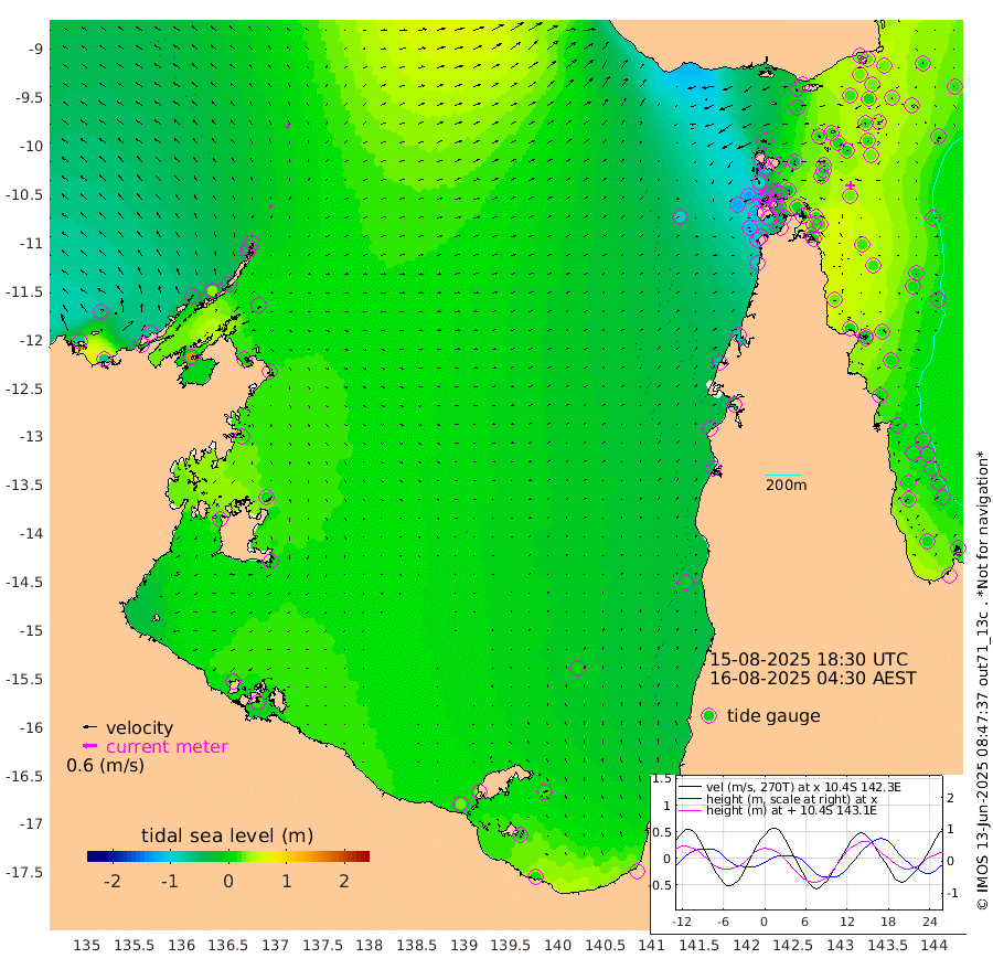 16cm/s 21T +3cm/s rms + 7cm/s -42T. ARA-GOC87 57m 3cm/s 134T +3cm/s rms + 2cm/s -2T. ARA-GOC87 60m 18cm/s 12T +2cm/s rms + 3cm/s 61T. ARA-GOC87 47m 29cm Daru 30cm Bobo Island 16cm Meer Island Barge 19cm Bramble Cay 25cm Unnamed Cay 14cm Pearce Cay 24cm Stephens Island 23cm Merrie England Shoals 25cm Mutacomal Reef 30cm Darnley Island Barge 15cm East Cay 32cm Yorke Island Barge 19cm Rennel Island 22cm Aureed Island 12cm Dungeness Reef 19cm Zagai Island 18cm Yam Island -7cm Dauan Island 10cm Saibai Island -14cm Phipi Reef 18cm Warrior Reef - West -30cm Mabuiag Island Barge 23cm Half Way Island 12cm Coconut Island 23cm Dugong Islet 7cm Poll Island 16cm Kirkcaldie Reef -17cm Suarji Island 22cm Sue Islet -95cm Hawkesbury Island -28cm Alert Patches -16cm Twin Island -95cm Badu Island -15cm St Pauls (Moa Island) -70cm Kubin (Moa Island) -38cm Ince Point -54cm Thursday Island -50cm Nardana Patches -77cm Turtle Head -81cm Round Island -108cm Goods Island -123cm Booby Island -124cm White Rocks Area -85cm Carpentaria -10cm Papou Point -122cm Bampfield Head -98cm Crab Island -113cm Red Wallis Island -90cm Packe Island 18cm Harrington Reef -87cm Herald Camp 7cm Sharp Point -58cm Red Island Point -42cm Possession Island 1cm Alpha Rock 0cm Frederick Point 19cm Wyborn Reef Light 17cm Tetley Island 7cm Triangle Reef 12cm Turtle Head Island 11cm Maclennan Cay -1cm Raine Island 20cm Mcsweeny Reef 20cm Collette Reef 12cm Shadwell Reef 23cm Hannibal Island 11cm Round Point -88cm Vrilya Point 15cm Cape Grenville 15cm Hicks Island 19cm Sir Charles Hardy Island 7cm Harvey Island 12cm Kay Reef 7cm Rocky Island -3cm Chapman Island 6cm Ham Reef 9cm Jubilee Reef 5cm Night Island 2cm Unnamed Reef No. 3 5cm Morris Island -2cm 1st 3 Mile Opening 5cm Creech Reef 7cm Fife Island 7cm Eden Reef 8cm Stanley Island 13cm Normanby River -71cm Yabooma Island -72cm Hutchison River -66cm Elcho Island -62cm North West Crocodile Island -5cm Cape Wessel -42cm Stevens Island 37cm Guluwuru Island -42cm Hopeful Bay -27cm Auster Point -10cm Two Island Bay -12cm Cadell Strait 156cm Mallison Island 14cm Melville Bay (Gove Harbour) 15cm Truant Island 17cm Cape Arnhem 17cm Cape Grey 13cm Hawk Island 12cm Milner Bay (Groote Eylandt) 14cm Cape Beatrice 21cm West Island 17cm Centre Island 25cm Mornington Island 23cm West Wellesley Islands 15cm Bountiful Island 15cm Albert River Mouth 10cm Sweers Island 14cm Karumba 2cm Nassau River Offshore -11cm Christmas Creek -45cm Archer River -47cm Boyd Point -63cm Weipa (Humbug Point) -61cm Pennefather River -74cm Cullen Point