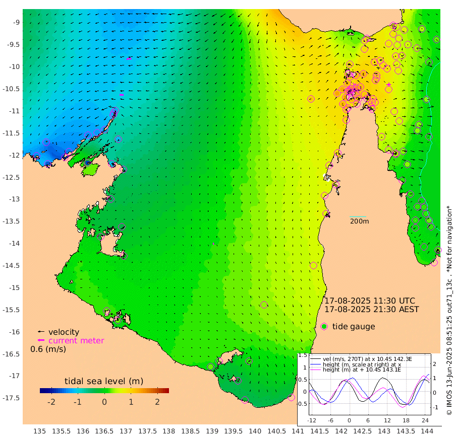 38cm/s -91T +3cm/s rms + 7cm/s -42T. ARA-GOC87 57m 17cm/s 174T +3cm/s rms + 2cm/s -2T. ARA-GOC87 60m 44cm/s -99T +2cm/s rms + 3cm/s 61T. ARA-GOC87 47m 76cm Daru 59cm Bobo Island 20cm Meer Island Barge 39cm Bramble Cay 70cm Unnamed Cay 60cm Pearce Cay 54cm Stephens Island 70cm Merrie England Shoals 90cm Mutacomal Reef 43cm Darnley Island Barge 25cm East Cay 58cm Yorke Island Barge 77cm Rennel Island 64cm Aureed Island 88cm Dungeness Reef 81cm Zagai Island 93cm Yam Island 87cm Dauan Island 76cm Saibai Island 97cm Phipi Reef 87cm Warrior Reef - West 101cm Mabuiag Island Barge 73cm Half Way Island 87cm Coconut Island 88cm Dugong Islet 97cm Poll Island 99cm Kirkcaldie Reef 126cm Suarji Island 91cm Sue Islet 124cm Hawkesbury Island 133cm Alert Patches 120cm Twin Island 117cm Badu Island 121cm St Pauls (Moa Island) 116cm Kubin (Moa Island) 123cm Ince Point 126cm Thursday Island 125cm Nardana Patches 129cm Turtle Head 121cm Round Island 126cm Goods Island 129cm Booby Island 134cm White Rocks Area 110cm Carpentaria 98cm Papou Point 140cm Bampfield Head 99cm Crab Island 127cm Red Wallis Island 127cm Packe Island 98cm Harrington Reef 127cm Herald Camp 35cm Sharp Point 102cm Red Island Point 116cm Possession Island 109cm Alpha Rock 107cm Frederick Point 88cm Wyborn Reef Light 92cm Tetley Island 33cm Triangle Reef 86cm Turtle Head Island 32cm Maclennan Cay 14cm Raine Island 63cm Mcsweeny Reef 55cm Collette Reef 31cm Shadwell Reef 56cm Hannibal Island 44cm Round Point 94cm Vrilya Point 46cm Cape Grenville 31cm Hicks Island 35cm Sir Charles Hardy Island 12cm Harvey Island 34cm Kay Reef 20cm Rocky Island 17cm Chapman Island 14cm Ham Reef 17cm Jubilee Reef 21cm Night Island 18cm Unnamed Reef No. 3 21cm Morris Island 23cm 1st 3 Mile Opening 21cm Creech Reef 14cm Fife Island 10cm Eden Reef 23cm Stanley Island 17cm Normanby River -135cm Yabooma Island -159cm Hutchison River -143cm Elcho Island -137cm North West Crocodile Island -121cm Cape Wessel -142cm Stevens Island -129cm Guluwuru Island -129cm Hopeful Bay -119cm Auster Point -137cm Two Island Bay -185cm Cadell Strait -179cm Mallison Island -111cm Melville Bay (Gove Harbour) -117cm Truant Island -78cm Cape Arnhem -51cm Cape Grey -37cm Hawk Island -24cm Milner Bay (Groote Eylandt) -9cm Cape Beatrice 24cm West Island 25cm Centre Island 17cm Mornington Island 27cm West Wellesley Islands 15cm Bountiful Island -21cm Albert River Mouth -28cm Sweers Island -11cm Karumba 36cm Nassau River Offshore 54cm Christmas Creek 62cm Archer River 70cm Boyd Point 73cm Weipa (Humbug Point) 68cm Pennefather River 87cm Cullen Point