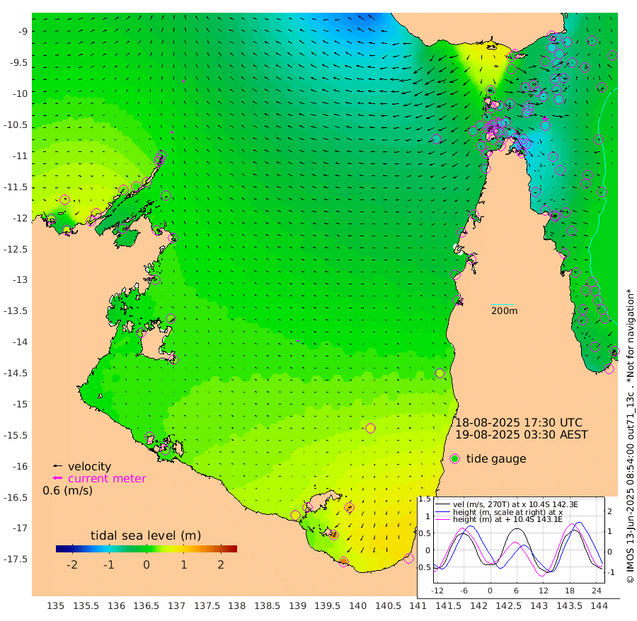 18cm/s -56T +3cm/s rms + 7cm/s -42T. ARA-GOC87 57m 16cm/s -90T +3cm/s rms + 2cm/s -2T. ARA-GOC87 60m 15cm/s -38T +2cm/s rms + 3cm/s 61T. ARA-GOC87 47m -78cm Daru -76cm Bobo Island -32cm Meer Island Barge -54cm Bramble Cay -79cm Unnamed Cay -77cm Pearce Cay -70cm Stephens Island -87cm Merrie England Shoals -92cm Mutacomal Reef -59cm Darnley Island Barge -36cm East Cay -69cm Yorke Island Barge -79cm Rennel Island -70cm Aureed Island -74cm Dungeness Reef -52cm Zagai Island -61cm Yam Island -1cm Dauan Island -6cm Saibai Island -5cm Phipi Reef -39cm Warrior Reef - West -43cm Mabuiag Island Barge -88cm Half Way Island -85cm Coconut Island -90cm Dugong Islet -81cm Poll Island -88cm Kirkcaldie Reef -69cm Suarji Island -76cm Sue Islet -64cm Hawkesbury Island -87cm Alert Patches -88cm Twin Island -50cm Badu Island -81cm St Pauls (Moa Island) -59cm Kubin (Moa Island) -75cm Ince Point -75cm Thursday Island -72cm Nardana Patches -58cm Turtle Head -50cm Round Island -53cm Goods Island -60cm Booby Island -66cm White Rocks Area -75cm Carpentaria -75cm Papou Point -59cm Bampfield Head -51cm Crab Island -63cm Red Wallis Island -61cm Packe Island -106cm Harrington Reef -39cm Herald Camp -21cm Sharp Point -58cm Red Island Point -69cm Possession Island -85cm Alpha Rock -93cm Frederick Point -95cm Wyborn Reef Light -96cm Tetley Island -33cm Triangle Reef -114cm Turtle Head Island -35cm Maclennan Cay -16cm Raine Island -73cm Mcsweeny Reef -62cm Collette Reef -33cm Shadwell Reef -69cm Hannibal Island -60cm Round Point -68cm Vrilya Point -54cm Cape Grenville -40cm Hicks Island -29cm Sir Charles Hardy Island -15cm Harvey Island -42cm Kay Reef -21cm Rocky Island -15cm Chapman Island -15cm Ham Reef -22cm Jubilee Reef -24cm Night Island -20cm Unnamed Reef No. 3 -25cm Morris Island -21cm 1st 3 Mile Opening -24cm Creech Reef -23cm Fife Island -20cm Eden Reef -30cm Stanley Island -34cm Normanby River 41cm Yabooma Island 56cm Hutchison River 51cm Elcho Island 49cm North West Crocodile Island 11cm Cape Wessel 25cm Stevens Island 22cm Guluwuru Island 38cm Hopeful Bay 15cm Auster Point 18cm Two Island Bay 39cm Cadell Strait 7cm Mallison Island 24cm Melville Bay (Gove Harbour) 17cm Truant Island 18cm Cape Arnhem 20cm Cape Grey 29cm Hawk Island 26cm Milner Bay (Groote Eylandt) 31cm Cape Beatrice 23cm West Island 24cm Centre Island 86cm Mornington Island 78cm West Wellesley Islands 126cm Bountiful Island 163cm Albert River Mouth 156cm Sweers Island 157cm Karumba 69cm Nassau River Offshore 44cm Christmas Creek 8cm Archer River -10cm Boyd Point 5cm Weipa (Humbug Point) -46cm Pennefather River -37cm Cullen Point
