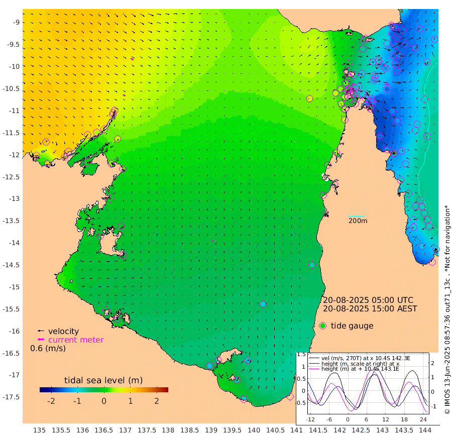 24cm/s 121T +3cm/s rms + 7cm/s -42T. ARA-GOC87 57m 19cm/s 23T +3cm/s rms + 2cm/s -2T. ARA-GOC87 60m 28cm/s 119T +2cm/s rms + 3cm/s 61T. ARA-GOC87 47m -149cm Daru -145cm Bobo Island -97cm Meer Island Barge -128cm Bramble Cay -151cm Unnamed Cay -148cm Pearce Cay -146cm Stephens Island -156cm Merrie England Shoals -157cm Mutacomal Reef -133cm Darnley Island Barge -111cm East Cay -137cm Yorke Island Barge -150cm Rennel Island -142cm Aureed Island -139cm Dungeness Reef -91cm Zagai Island -98cm Yam Island -38cm Dauan Island -28cm Saibai Island -70cm Phipi Reef -101cm Warrior Reef - West -13cm Mabuiag Island Barge -147cm Half Way Island -134cm Coconut Island -151cm Dugong Islet -119cm Poll Island -130cm Kirkcaldie Reef -104cm Suarji Island -108cm Sue Islet 27cm Hawkesbury Island -87cm Alert Patches -90cm Twin Island 27cm Badu Island -79cm St Pauls (Moa Island) -6cm Kubin (Moa Island) -54cm Ince Point -34cm Thursday Island -38cm Nardana Patches -21cm Turtle Head 6cm Round Island 20cm Goods Island 51cm Booby Island 33cm White Rocks Area 64cm Carpentaria -64cm Papou Point 50cm Bampfield Head 47cm Crab Island 38cm Red Wallis Island -6cm Packe Island -159cm Harrington Reef 19cm Herald Camp -26cm Sharp Point -14cm Red Island Point -49cm Possession Island -90cm Alpha Rock -116cm Frederick Point -140cm Wyborn Reef Light -132cm Tetley Island -86cm Triangle Reef -140cm Turtle Head Island -99cm Maclennan Cay -71cm Raine Island -139cm Mcsweeny Reef -131cm Collette Reef -95cm Shadwell Reef -145cm Hannibal Island -132cm Round Point 52cm Vrilya Point -124cm Cape Grenville -112cm Hicks Island -111cm Sir Charles Hardy Island -38cm Harvey Island -109cm Kay Reef -88cm Rocky Island -78cm Chapman Island -73cm Ham Reef -82cm Jubilee Reef -85cm Night Island -79cm Unnamed Reef No. 3 -93cm Morris Island -79cm 1st 3 Mile Opening -88cm Creech Reef -95cm Fife Island -98cm Eden Reef -98cm Stanley Island -110cm Normanby River 109cm Yabooma Island 112cm Hutchison River 111cm Elcho Island 106cm North West Crocodile Island 74cm Cape Wessel 97cm Stevens Island 39cm Guluwuru Island 89cm Hopeful Bay 81cm Auster Point 86cm Two Island Bay 91cm Cadell Strait 3cm Mallison Island 41cm Melville Bay (Gove Harbour) 49cm Truant Island 25cm Cape Arnhem 6cm Cape Grey -8cm Hawk Island -8cm Milner Bay (Groote Eylandt) -29cm Cape Beatrice -50cm West Island -48cm Centre Island -103cm Mornington Island -110cm West Wellesley Islands -111cm Bountiful Island -103cm Albert River Mouth -94cm Sweers Island -110cm Karumba -100cm Nassau River Offshore -81cm Christmas Creek -25cm Archer River -4cm Boyd Point -3cm Weipa (Humbug Point) 18cm Pennefather River 38cm Cullen Point