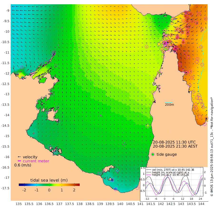 10cm/s 161T +3cm/s rms + 7cm/s -42T. ARA-GOC87 57m 37cm/s 166T +3cm/s rms + 2cm/s -2T. ARA-GOC87 60m 12cm/s -135T +2cm/s rms + 3cm/s 61T. ARA-GOC87 47m 190cm Daru 188cm Bobo Island 130cm Meer Island Barge 163cm Bramble Cay 191cm Unnamed Cay 197cm Pearce Cay 187cm Stephens Island 197cm Merrie England Shoals 200cm Mutacomal Reef 172cm Darnley Island Barge 143cm East Cay 179cm Yorke Island Barge 193cm Rennel Island 183cm Aureed Island 183cm Dungeness Reef 132cm Zagai Island 143cm Yam Island 80cm Dauan Island 70cm Saibai Island 93cm Phipi Reef 138cm Warrior Reef - West 81cm Mabuiag Island Barge 195cm Half Way Island 184cm Coconut Island 201cm Dugong Islet 170cm Poll Island 181cm Kirkcaldie Reef 152cm Suarji Island 158cm Sue Islet 105cm Hawkesbury Island 158cm Alert Patches 160cm Twin Island 88cm Badu Island 148cm St Pauls (Moa Island) 111cm Kubin (Moa Island) 133cm Ince Point 124cm Thursday Island 124cm Nardana Patches 116cm Turtle Head 90cm Round Island 99cm Goods Island 84cm Booby Island 94cm White Rocks Area 67cm Carpentaria 129cm Papou Point 87cm Bampfield Head 61cm Crab Island 89cm Red Wallis Island 114cm Packe Island 214cm Harrington Reef 87cm Herald Camp 34cm Sharp Point 100cm Red Island Point 121cm Possession Island 149cm Alpha Rock 180cm Frederick Point 195cm Wyborn Reef Light 189cm Tetley Island 123cm Triangle Reef 214cm Turtle Head Island 133cm Maclennan Cay 100cm Raine Island 182cm Mcsweeny Reef 168cm Collette Reef 126cm Shadwell Reef 182cm Hannibal Island 172cm Round Point 62cm Vrilya Point 157cm Cape Grenville 144cm Hicks Island 147cm Sir Charles Hardy Island 48cm Harvey Island 142cm Kay Reef 116cm Rocky Island 108cm Chapman Island 104cm Ham Reef 114cm Jubilee Reef 111cm Night Island 111cm Unnamed Reef No. 3 123cm Morris Island 113cm 1st 3 Mile Opening 120cm Creech Reef 123cm Fife Island 130cm Eden Reef 128cm Stanley Island 140cm Normanby River -65cm Yabooma Island -61cm Hutchison River -75cm Elcho Island -76cm North West Crocodile Island -23cm Cape Wessel -54cm Stevens Island 6cm Guluwuru Island -60cm Hopeful Bay -34cm Auster Point -36cm Two Island Bay -34cm Cadell Strait 51cm Mallison Island -7cm Melville Bay (Gove Harbour) -2cm Truant Island -4cm Cape Arnhem -19cm Cape Grey -30cm Hawk Island -64cm Milner Bay (Groote Eylandt) -52cm Cape Beatrice -62cm West Island -68cm Centre Island -57cm Mornington Island -47cm West Wellesley Islands -83cm Bountiful Island -145cm Albert River Mouth -163cm Sweers Island -131cm Karumba -8cm Nassau River Offshore 33cm Christmas Creek 45cm Archer River 56cm Boyd Point 49cm Weipa (Humbug Point) 52cm Pennefather River 51cm Cullen Point