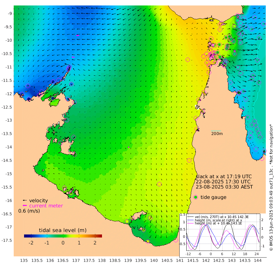 42cm/s -87T +3cm/s rms + 7cm/s -42T. ARA-GOC87 57m 18cm/s -165T +3cm/s rms + 2cm/s -2T. ARA-GOC87 60m 46cm/s -94T +2cm/s rms + 3cm/s 61T. ARA-GOC87 47m -63cm Daru -86cm Bobo Island -82cm Meer Island Barge -101cm Bramble Cay -93cm Unnamed Cay -97cm Pearce Cay -98cm Stephens Island -103cm Merrie England Shoals -78cm Mutacomal Reef -90cm Darnley Island Barge -92cm East Cay -76cm Yorke Island Barge -77cm Rennel Island -77cm Aureed Island -42cm Dungeness Reef 12cm Zagai Island 19cm Yam Island 104cm Dauan Island 93cm Saibai Island 93cm Phipi Reef 32cm Warrior Reef - West 80cm Mabuiag Island Barge -77cm Half Way Island -55cm Coconut Island -63cm Dugong Islet -22cm Poll Island -17cm Kirkcaldie Reef 16cm Suarji Island -10cm Sue Islet 88cm Hawkesbury Island 27cm Alert Patches 15cm Twin Island 95cm Badu Island 36cm St Pauls (Moa Island) 68cm Kubin (Moa Island) 49cm Ince Point 60cm Thursday Island 59cm Nardana Patches 73cm Turtle Head 72cm Round Island 84cm Goods Island 99cm Booby Island 76cm White Rocks Area 83cm Carpentaria 25cm Papou Point 73cm Bampfield Head 98cm Crab Island 93cm Red Wallis Island 74cm Packe Island -73cm Harrington Reef 100cm Herald Camp 23cm Sharp Point 69cm Red Island Point 36cm Possession Island -1cm Alpha Rock -21cm Frederick Point -77cm Wyborn Reef Light -63cm Tetley Island -63cm Triangle Reef -86cm Turtle Head Island -72cm Maclennan Cay -66cm Raine Island -87cm Mcsweeny Reef -84cm Collette Reef -70cm Shadwell Reef -100cm Hannibal Island -108cm Round Point 95cm Vrilya Point -92cm Cape Grenville -86cm Hicks Island -79cm Sir Charles Hardy Island -27cm Harvey Island -94cm Kay Reef -77cm Rocky Island -77cm Chapman Island -70cm Ham Reef -73cm Jubilee Reef -69cm Night Island -73cm Unnamed Reef No. 3 -83cm Morris Island -69cm 1st 3 Mile Opening -74cm Creech Reef -85cm Fife Island -100cm Eden Reef -85cm Stanley Island -106cm Normanby River -176cm Yabooma Island -203cm Hutchison River -173cm Elcho Island -158cm North West Crocodile Island -162cm Cape Wessel -187cm Stevens Island -152cm Guluwuru Island -167cm Hopeful Bay -164cm Auster Point -162cm Two Island Bay -193cm Cadell Strait -193cm Mallison Island -139cm Melville Bay (Gove Harbour) -151cm Truant Island -95cm Cape Arnhem -64cm Cape Grey -47cm Hawk Island -25cm Milner Bay (Groote Eylandt) -5cm Cape Beatrice 31cm West Island 35cm Centre Island 61cm Mornington Island 54cm West Wellesley Islands 59cm Bountiful Island 67cm Albert River Mouth 41cm Sweers Island 82cm Karumba 76cm Nassau River Offshore 83cm Christmas Creek 74cm Archer River 73cm Boyd Point 80cm Weipa (Humbug Point) 72cm Pennefather River 92cm Cullen Point