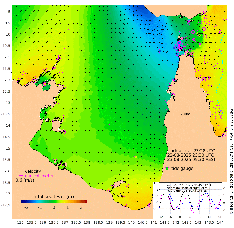 21cm/s 65T +3cm/s rms + 7cm/s -42T. ARA-GOC87 57m 21cm/s -32T +3cm/s rms + 2cm/s -2T. ARA-GOC87 60m 29cm/s 60T +2cm/s rms + 3cm/s 61T. ARA-GOC87 47m 56cm Daru 73cm Bobo Island 63cm Meer Island Barge 84cm Bramble Cay 74cm Unnamed Cay 81cm Pearce Cay 80cm Stephens Island 86cm Merrie England Shoals 64cm Mutacomal Reef 71cm Darnley Island Barge 76cm East Cay 59cm Yorke Island Barge 63cm Rennel Island 65cm Aureed Island 38cm Dungeness Reef -13cm Zagai Island -21cm Yam Island -85cm Dauan Island -85cm Saibai Island -48cm Phipi Reef -18cm Warrior Reef - West -95cm Mabuiag Island Barge 60cm Half Way Island 43cm Coconut Island 46cm Dugong Islet 11cm Poll Island 12cm Kirkcaldie Reef -19cm Suarji Island -4cm Sue Islet -144cm Hawkesbury Island -41cm Alert Patches -33cm Twin Island -127cm Badu Island -51cm St Pauls (Moa Island) -109cm Kubin (Moa Island) -70cm Ince Point -87cm Thursday Island -84cm Nardana Patches -97cm Turtle Head -115cm Round Island -126cm Goods Island -156cm Booby Island -131cm White Rocks Area -165cm Carpentaria -44cm Papou Point -158cm Bampfield Head -132cm Crab Island -145cm Red Wallis Island -110cm Packe Island 54cm Harrington Reef -150cm Herald Camp -17cm Sharp Point -85cm Red Island Point -62cm Possession Island -23cm Alpha Rock 3cm Frederick Point 50cm Wyborn Reef Light 36cm Tetley Island 45cm Triangle Reef 48cm Turtle Head Island 54cm Maclennan Cay 53cm Raine Island 68cm Mcsweeny Reef 70cm Collette Reef 56cm Shadwell Reef 84cm Hannibal Island 88cm Round Point -136cm Vrilya Point 74cm Cape Grenville 70cm Hicks Island 57cm Sir Charles Hardy Island 22cm Harvey Island 74cm Kay Reef 62cm Rocky Island 62cm Chapman Island 51cm Ham Reef 56cm Jubilee Reef 57cm Night Island 57cm Unnamed Reef No. 3 67cm Morris Island 51cm 1st 3 Mile Opening 58cm Creech Reef 74cm Fife Island 81cm Eden Reef 68cm Stanley Island 85cm Normanby River 91cm Yabooma Island 114cm Hutchison River 97cm Elcho Island 91cm North West Crocodile Island 69cm Cape Wessel 102cm Stevens Island 77cm Guluwuru Island 94cm Hopeful Bay 77cm Auster Point 67cm Two Island Bay 111cm Cadell Strait 108cm Mallison Island 76cm Melville Bay (Gove Harbour) 73cm Truant Island 53cm Cape Arnhem 54cm Cape Grey 58cm Hawk Island 60cm Milner Bay (Groote Eylandt) 59cm Cape Beatrice 48cm West Island 49cm Centre Island 95cm Mornington Island 96cm West Wellesley Islands 119cm Bountiful Island 160cm Albert River Mouth 177cm Sweers Island 147cm Karumba 62cm Nassau River Offshore 14cm Christmas Creek -36cm Archer River -73cm Boyd Point -69cm Weipa (Humbug Point) -80cm Pennefather River -124cm Cullen Point