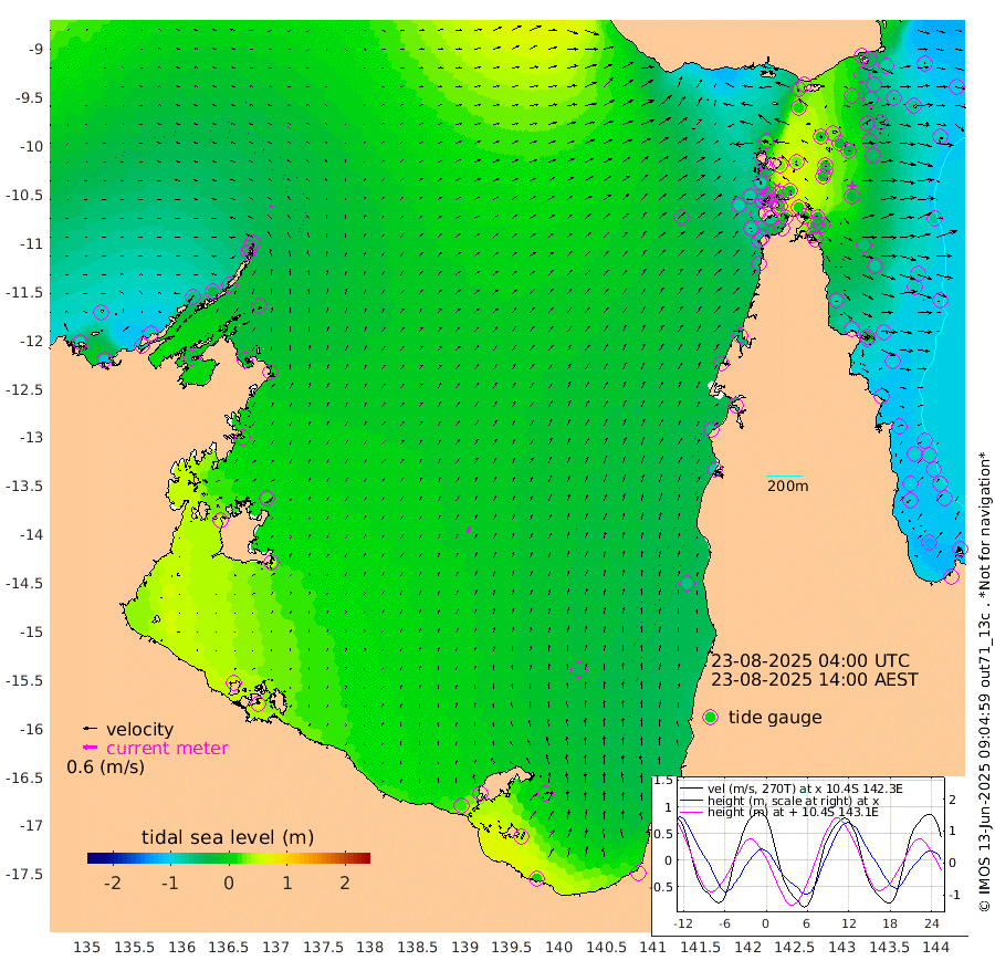11cm/s 16T +3cm/s rms + 7cm/s -42T. ARA-GOC87 57m 30cm/s 17T +3cm/s rms + 2cm/s -2T. ARA-GOC87 60m 10cm/s 37T +2cm/s rms + 3cm/s 61T. ARA-GOC87 47m -34cm Daru -41cm Bobo Island -85cm Meer Island Barge -90cm Bramble Cay -65cm Unnamed Cay -67cm Pearce Cay -71cm Stephens Island -76cm Merrie England Shoals -47cm Mutacomal Reef -68cm Darnley Island Barge -98cm East Cay -46cm Yorke Island Barge -54cm Rennel Island -41cm Aureed Island -29cm Dungeness Reef 25cm Zagai Island 13cm Yam Island 20cm Dauan Island 30cm Saibai Island 8cm Phipi Reef 12cm Warrior Reef - West 18cm Mabuiag Island Barge -48cm Half Way Island -23cm Coconut Island -37cm Dugong Islet -4cm Poll Island -14cm Kirkcaldie Reef 23cm Suarji Island 4cm Sue Islet -84cm Hawkesbury Island 1cm Alert Patches 5cm Twin Island -54cm Badu Island 25cm St Pauls (Moa Island) -44cm Kubin (Moa Island) -3cm Ince Point -13cm Thursday Island -9cm Nardana Patches -46cm Turtle Head -45cm Round Island -81cm Goods Island -81cm Booby Island -81cm White Rocks Area -30cm Carpentaria 14cm Papou Point -67cm Bampfield Head -66cm Crab Island -78cm Red Wallis Island -68cm Packe Island -27cm Harrington Reef -72cm Herald Camp 22cm Sharp Point -47cm Red Island Point -6cm Possession Island 8cm Alpha Rock -8cm Frederick Point -31cm Wyborn Reef Light -21cm Tetley Island -71cm Triangle Reef -36cm Turtle Head Island -82cm Maclennan Cay -95cm Raine Island -59cm Mcsweeny Reef -69cm Collette Reef -81cm Shadwell Reef -78cm Hannibal Island -98cm Round Point -55cm Vrilya Point -90cm Cape Grenville -89cm Hicks Island -99cm Sir Charles Hardy Island -25cm Harvey Island -104cm Kay Reef -99cm Rocky Island -109cm Chapman Island -99cm Ham Reef -96cm Jubilee Reef -84cm Night Island -103cm Unnamed Reef No. 3 -103cm Morris Island -92cm 1st 3 Mile Opening -98cm Creech Reef -98cm Fife Island -126cm Eden Reef -107cm Stanley Island -117cm Normanby River -96cm Yabooma Island -109cm Hutchison River -87cm Elcho Island -85cm North West Crocodile Island -34cm Cape Wessel -67cm Stevens Island -31cm Guluwuru Island -73cm Hopeful Bay -45cm Auster Point -44cm Two Island Bay -83cm Cadell Strait -46cm Mallison Island -26cm Melville Bay (Gove Harbour) -24cm Truant Island -5cm Cape Arnhem 14cm Cape Grey 15cm Hawk Island 58cm Milner Bay (Groote Eylandt) 42cm Cape Beatrice 78cm West Island 80cm Centre Island 17cm Mornington Island 15cm West Wellesley Islands 3cm Bountiful Island 13cm Albert River Mouth 43cm Sweers Island 3cm Karumba -40cm Nassau River Offshore -67cm Christmas Creek -81cm Archer River -64cm Boyd Point -85cm Weipa (Humbug Point) -50cm Pennefather River -57cm Cullen Point