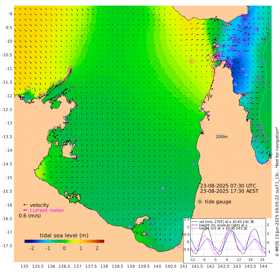 7cm/s -180T +3cm/s rms + 7cm/s -42T. ARA-GOC87 57m 16cm/s 21T +3cm/s rms + 2cm/s -2T. ARA-GOC87 60m 13cm/s 162T +2cm/s rms + 3cm/s 61T. ARA-GOC87 47m -154cm Daru -152cm Bobo Island -65cm Meer Island Barge -98cm Bramble Cay -126cm Unnamed Cay -145cm Pearce Cay -125cm Stephens Island -126cm Merrie England Shoals -146cm Mutacomal Reef -110cm Darnley Island Barge -78cm East Cay -128cm Yorke Island Barge -139cm Rennel Island -143cm Aureed Island -145cm Dungeness Reef -131cm Zagai Island -128cm Yam Island -97cm Dauan Island -83cm Saibai Island -123cm Phipi Reef -147cm Warrior Reef - West -49cm Mabuiag Island Barge -135cm Half Way Island -145cm Coconut Island -143cm Dugong Islet -138cm Poll Island -140cm Kirkcaldie Reef -130cm Suarji Island -124cm Sue Islet 30cm Hawkesbury Island -105cm Alert Patches -113cm Twin Island 7cm Badu Island -113cm St Pauls (Moa Island) -15cm Kubin (Moa Island) -73cm Ince Point -48cm Thursday Island -55cm Nardana Patches -27cm Turtle Head 10cm Round Island 30cm Goods Island 72cm Booby Island 53cm White Rocks Area 96cm Carpentaria -93cm Papou Point 81cm Bampfield Head 55cm Crab Island 53cm Red Wallis Island -4cm Packe Island -159cm Harrington Reef 41cm Herald Camp -38cm Sharp Point -28cm Red Island Point -60cm Possession Island -102cm Alpha Rock -133cm Frederick Point -141cm Wyborn Reef Light -140cm Tetley Island -68cm Triangle Reef -139cm Turtle Head Island -67cm Maclennan Cay -38cm Raine Island -123cm Mcsweeny Reef -108cm Collette Reef -64cm Shadwell Reef -116cm Hannibal Island -102cm Round Point 67cm Vrilya Point -84cm Cape Grenville -80cm Hicks Island -71cm Sir Charles Hardy Island -28cm Harvey Island -62cm Kay Reef -50cm Rocky Island -41cm Chapman Island -36cm Ham Reef -45cm Jubilee Reef -52cm Night Island -41cm Unnamed Reef No. 3 -52cm Morris Island -37cm 1st 3 Mile Opening -48cm Creech Reef -67cm Fife Island -47cm Eden Reef -48cm Stanley Island -61cm Normanby River 70cm Yabooma Island 57cm Hutchison River 67cm Elcho Island 61cm North West Crocodile Island 32cm Cape Wessel 47cm Stevens Island -6cm Guluwuru Island 54cm Hopeful Bay 41cm Auster Point 43cm Two Island Bay 14cm Cadell Strait -45cm Mallison Island -3cm Melville Bay (Gove Harbour) 1cm Truant Island -9cm Cape Arnhem -12cm Cape Grey -20cm Hawk Island -7cm Milner Bay (Groote Eylandt) -22cm Cape Beatrice -26cm West Island -22cm Centre Island -89cm Mornington Island -86cm West Wellesley Islands -88cm Bountiful Island -94cm Albert River Mouth -88cm Sweers Island -105cm Karumba -87cm Nassau River Offshore -65cm Christmas Creek -7cm Archer River 14cm Boyd Point 19cm Weipa (Humbug Point) 29cm Pennefather River 56cm Cullen Point